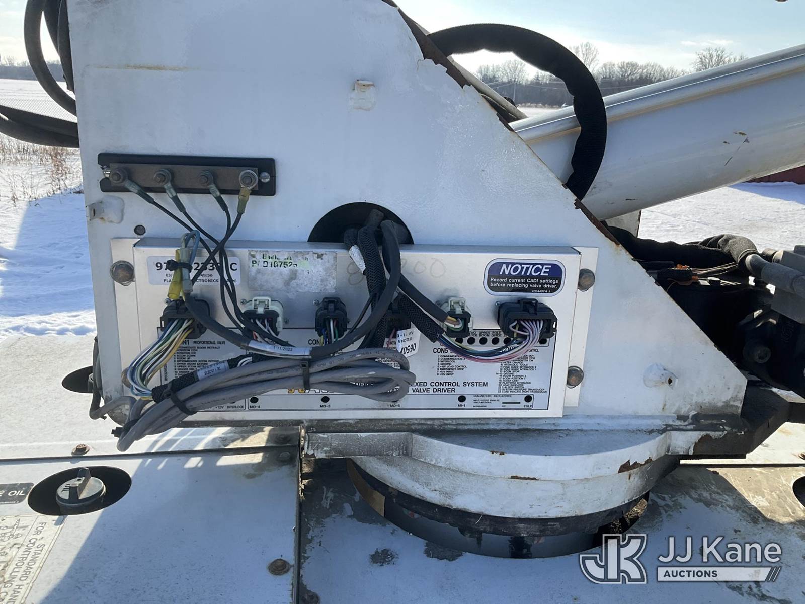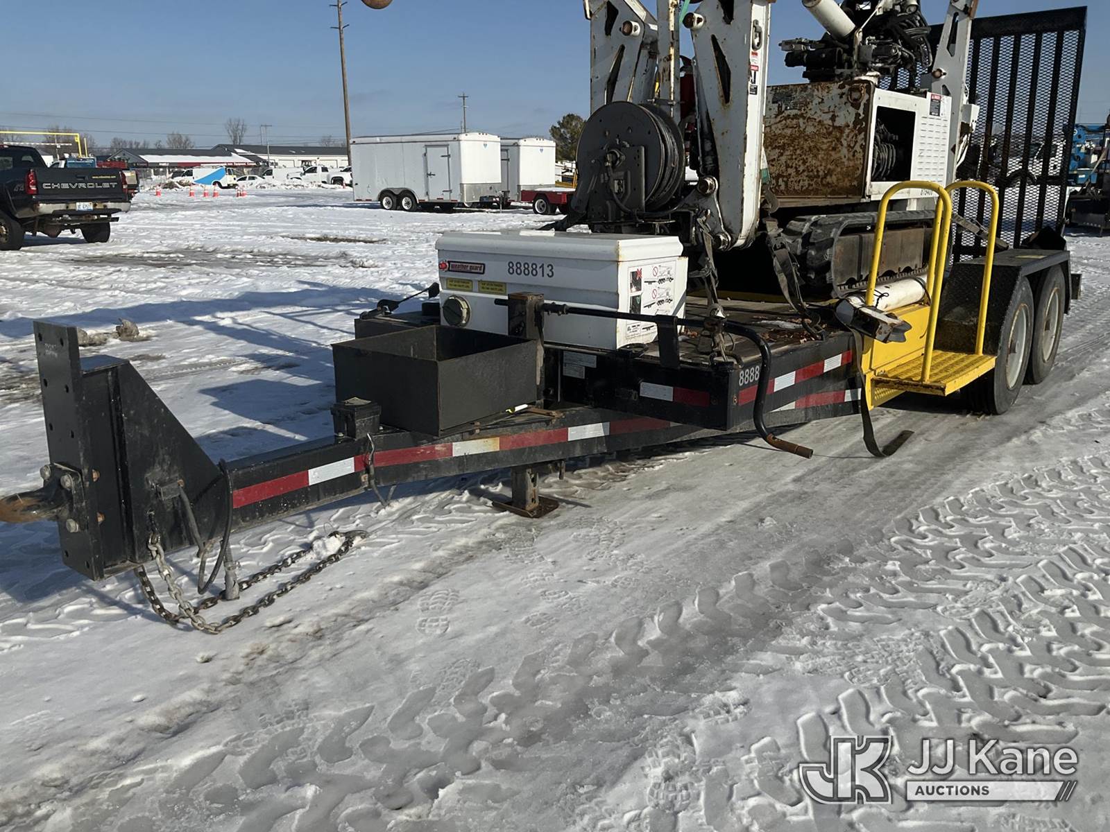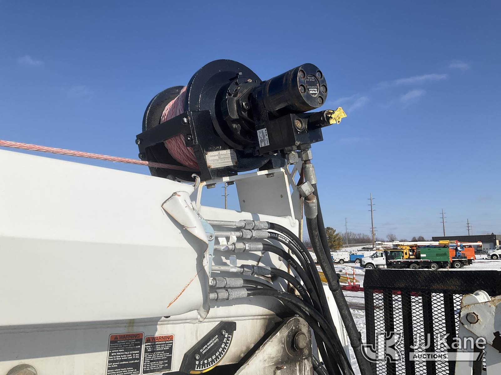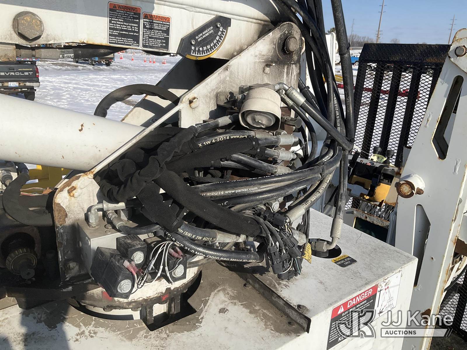 Altec DB37, 3,800 Lb Back Yard Digger Derrick s/n 0614ET0640, with 37 ft. sheave height, 8 ft. pin on jib, three section hydraulic boom, heel winch, pole guides, auger, mounted on 2014 Altec Crawler Back Yard Carrier, Kubota Hydraulic Drive, diesel, with wireless remote (condition unknown), rubber tracks, four hydraulic outriggers, sells with support trailer ID 1569448 (Runs, Does Not Move, Upper Condition Unknown) (Red Tagged, Damage to Rotation Gear, Damage to Upper Boom, Jump to Start, Engine Cover Panels Missing) (**Dealer Only** Seller states this item has been removed from service due to the listed safety repairs that were not completed. The safety items below must be completed by an approved upper OEM facility before the unit can return to service: UNIT INVOLVED IN ROLLOVER INCIDENT; REQUIRES MAJOR UNIT DAMAGE INSPECTION; COMPLETE ANY REQUIRED TESTING AND REPAIRS AFTER INSPECTIONS ARE COMPLETED.) (Bidding Restricted to Licensed Vehicle Dealers Only), NOTE: This unit is being sold AS IS/WHERE IS via Timed Auction and is located in Charlotte, MI. Inspection & preview days for this unit are the 2 business days prior to the first day of items closing for this auction, item is located at 750 Island Hwy Charlotte, MI 48813 and hours of operations are 8a-4p. For pre-sale questions, please contact Corey Cook at (517) 983-0796 or corey.cook@jjkane.com (Manuals provided in cab) (Buyer is responsible for removal. Assistance by consignor or JJ Kane Auctions is not assured.)