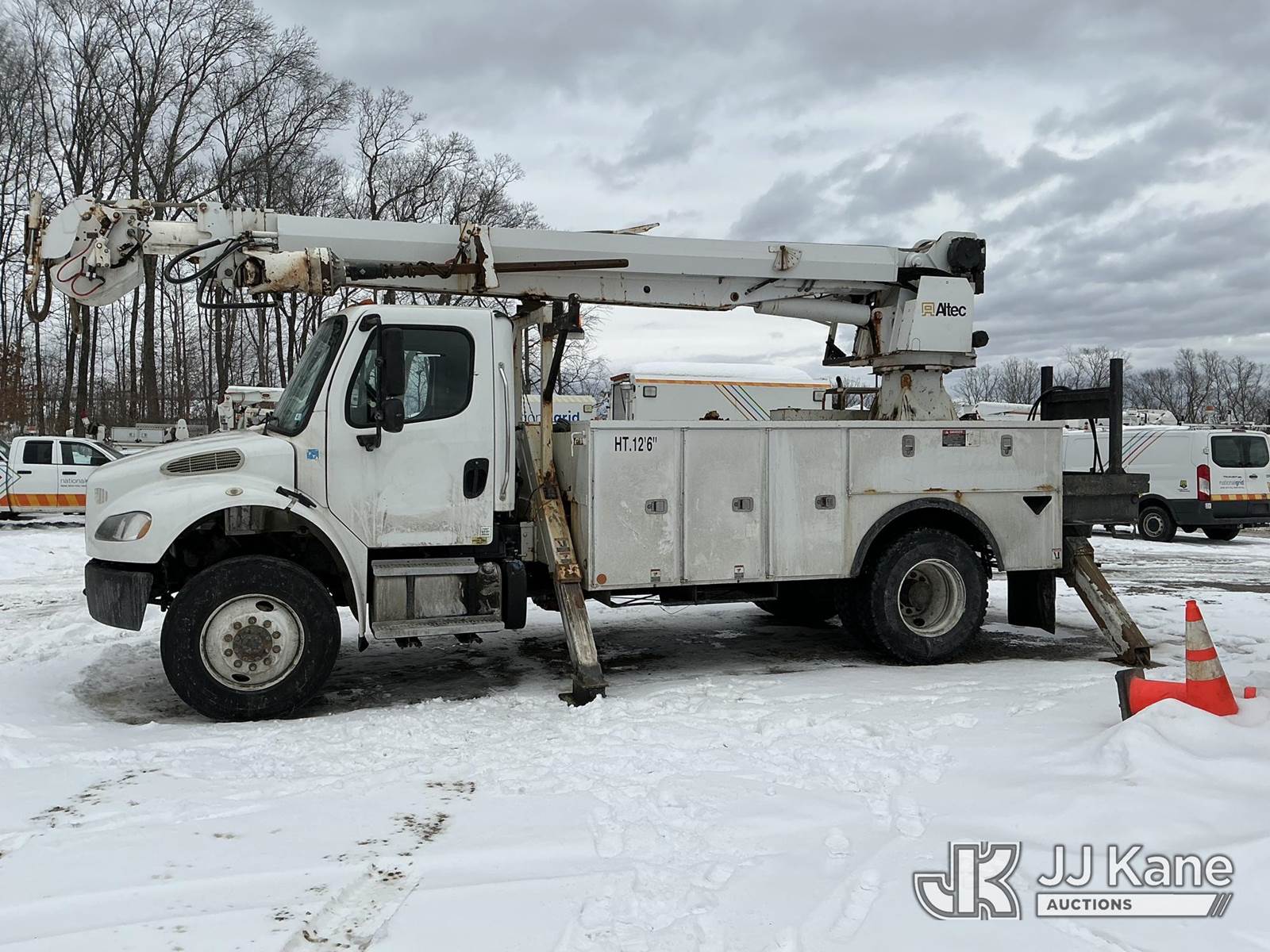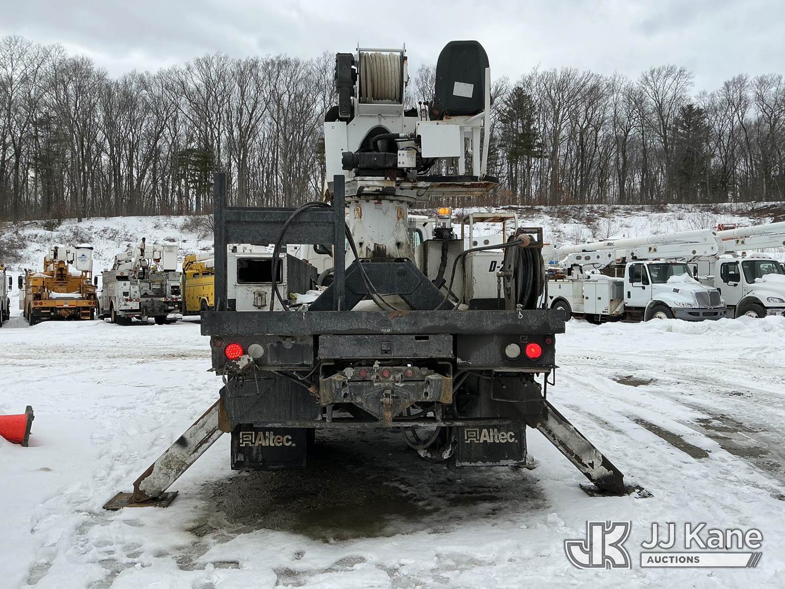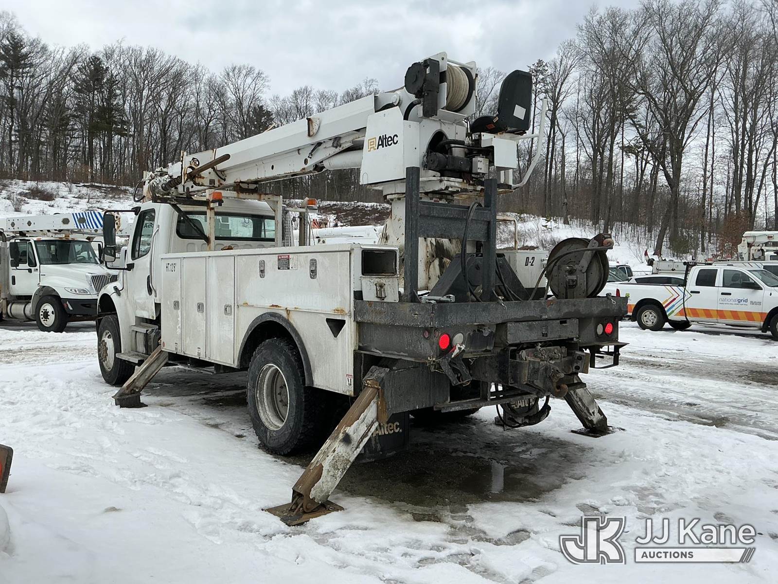 Altec DC47-TR, 23,790 Lb Digger Derrick s/n 0513EU0705, with 47 ft sheave height, 3-section hyd boom, 2 spd digger, heel winch, pole grabs, riding console & 4 hyd outriggers, rear mounted on 2014 Freightliner M2 106 4x4 Utility Truck, Cummins 6.7L diesel, Auto, A/C, (134,396 miles) (Runs & Outriggers Operates) (Does Not Move, No Response From Upper Controls, Upper Condition Unknown, Brake Air Leak, ABS Light On, Must Tow, Seller States: Rear End Issues) (Reads 9,239 hours) This is a Titled Item NOTE: This unit is being sold AS IS/WHERE IS via Timed Auction and is located in Shrewsbury, MA. Inspection & preview days for this unit are the 2 business days prior to the first day of items closing for this auction, item is located at 11 Fortune Blvd Shrewsbury, MA 01545 and hours of operations are 8a-4p. For pre-sale questions, please contact Rob Gifford @ (508) 864-4126. (Manuals provided in cab) (Buyer is responsible for removal. Assistance by consignor or JJ Kane Auctions is not assured.)