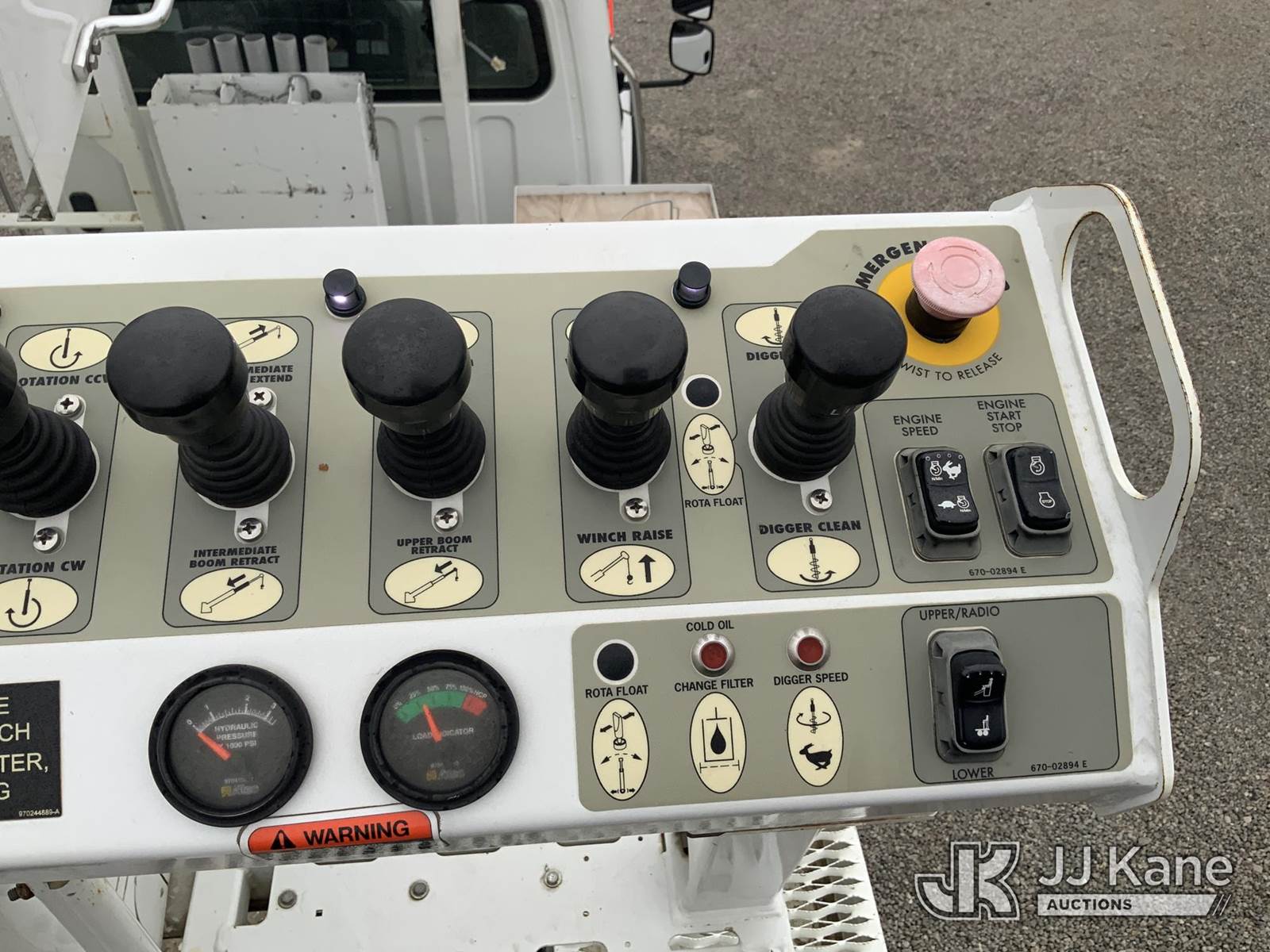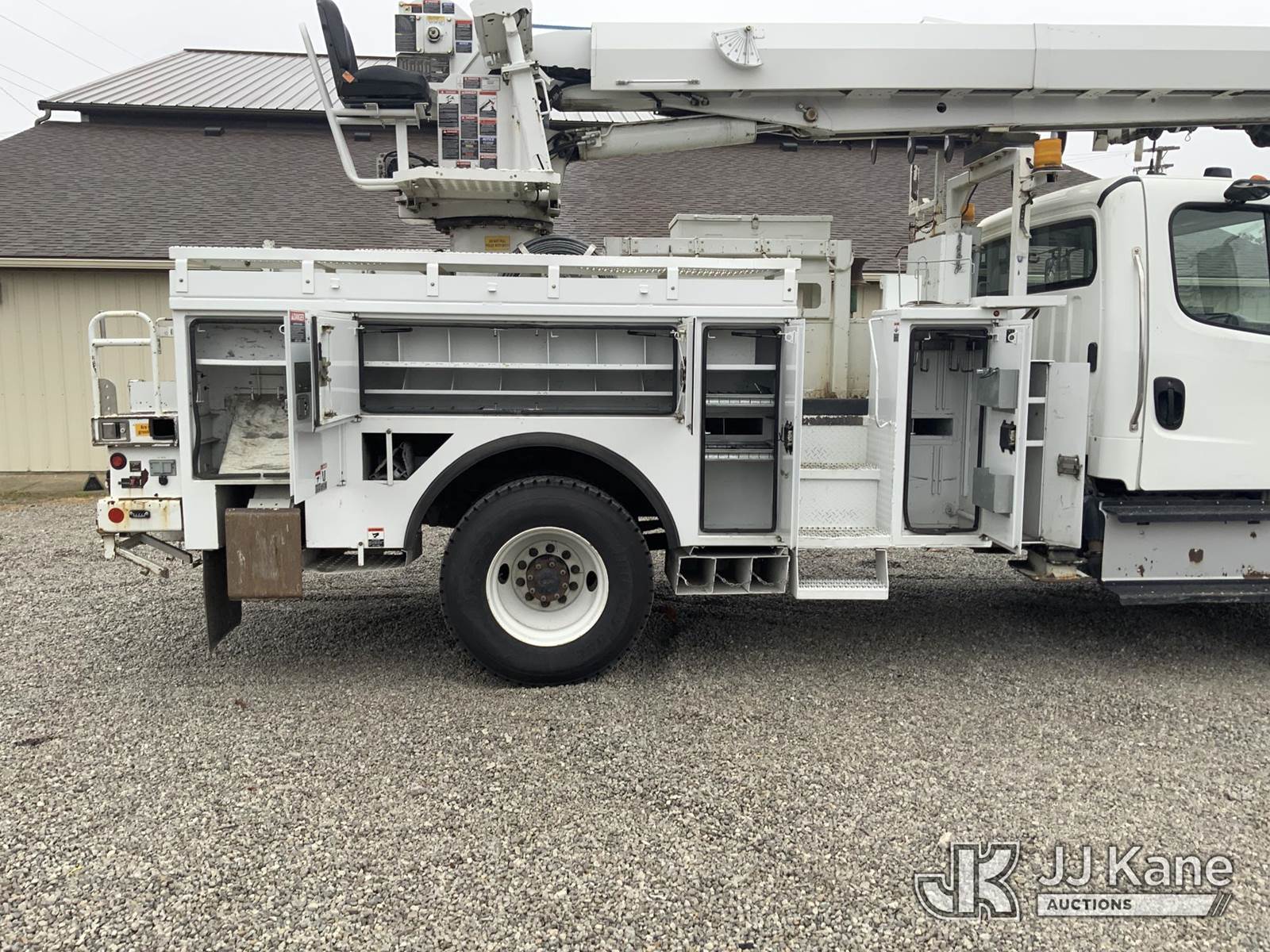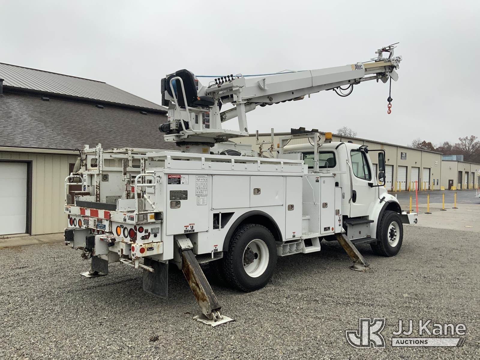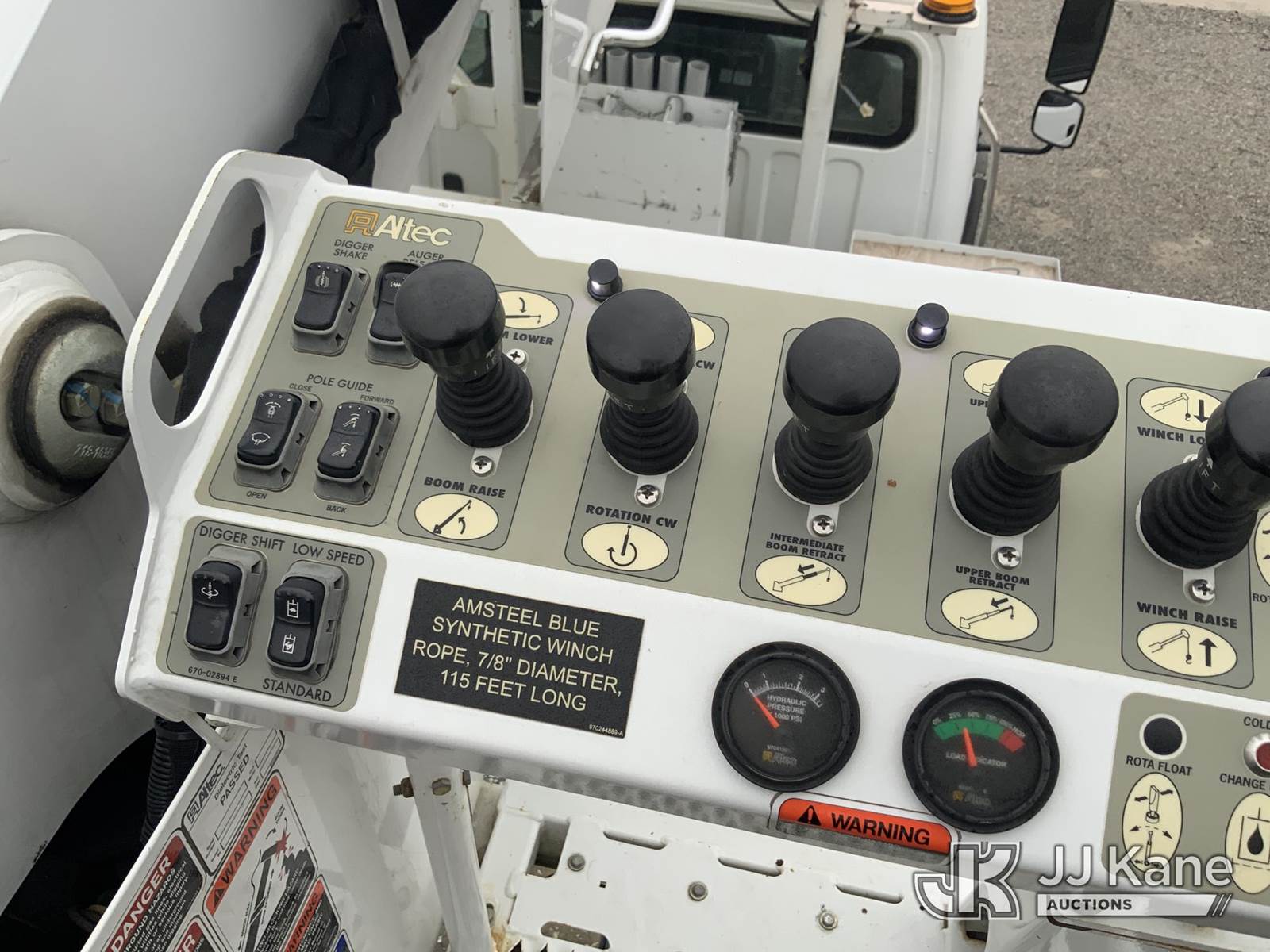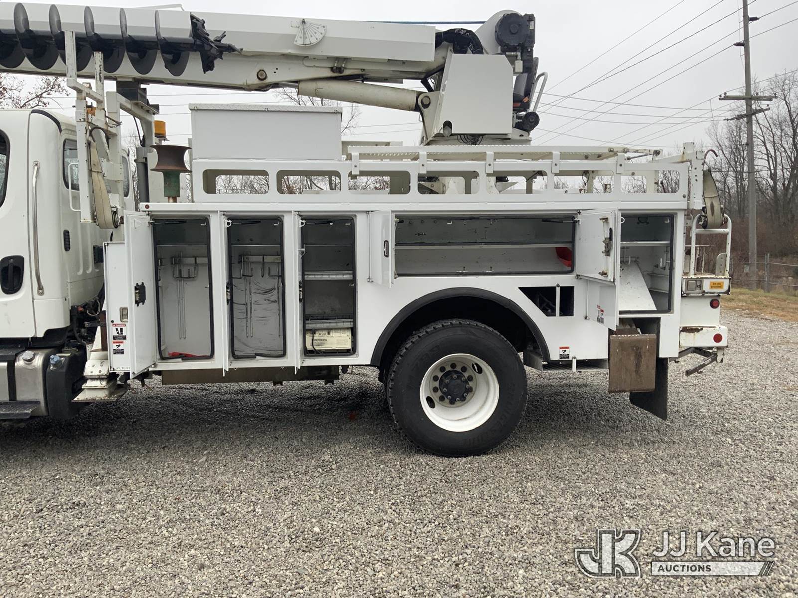 Altec DM47-TR, 23,790 Lb Digger Derrick s/n 0114DV6227, with 47 ft. sheave height, 3-stage hyd. boom, pole grabs, 2 spd. digger, heel winch & riding console, rear mounted on 2014 Freightliner M2 Medium Duty Utility Truck, 6.7L L6, diesel Auto, 4X2, A/C, with inverter, hyd. tool reel, capstan & front winch, (59,429 miles) (Runs, Moves & Upper Operates) (Reads 6,015 hours) This is a Titled Item NOTE: This unit is being sold AS IS/WHERE IS via Timed Auction and is located in Fort Wayne, IN. For more information & removal arrangements please contact Office Staff @ (260) 450-9822. Load out by appointment only, Buyer/Hauler must present copy of paid invoice upon arrival. Purchaser acknowledges ALL lots must be removed within (10) business days of Auction, or a storage fee may be incurred. For load out and pick up information, please reference the hauler sheet sent out after purchase. (Manuals provided in cab) (Buyer is responsible for removal. Assistance by consignor or JJ Kane Auctioneers is not assured.)