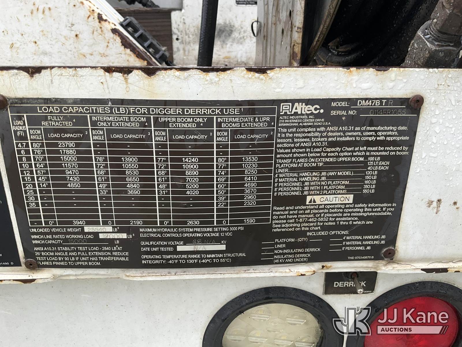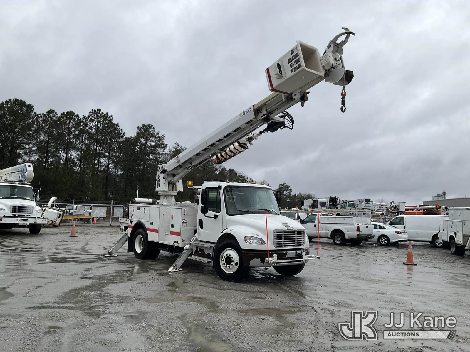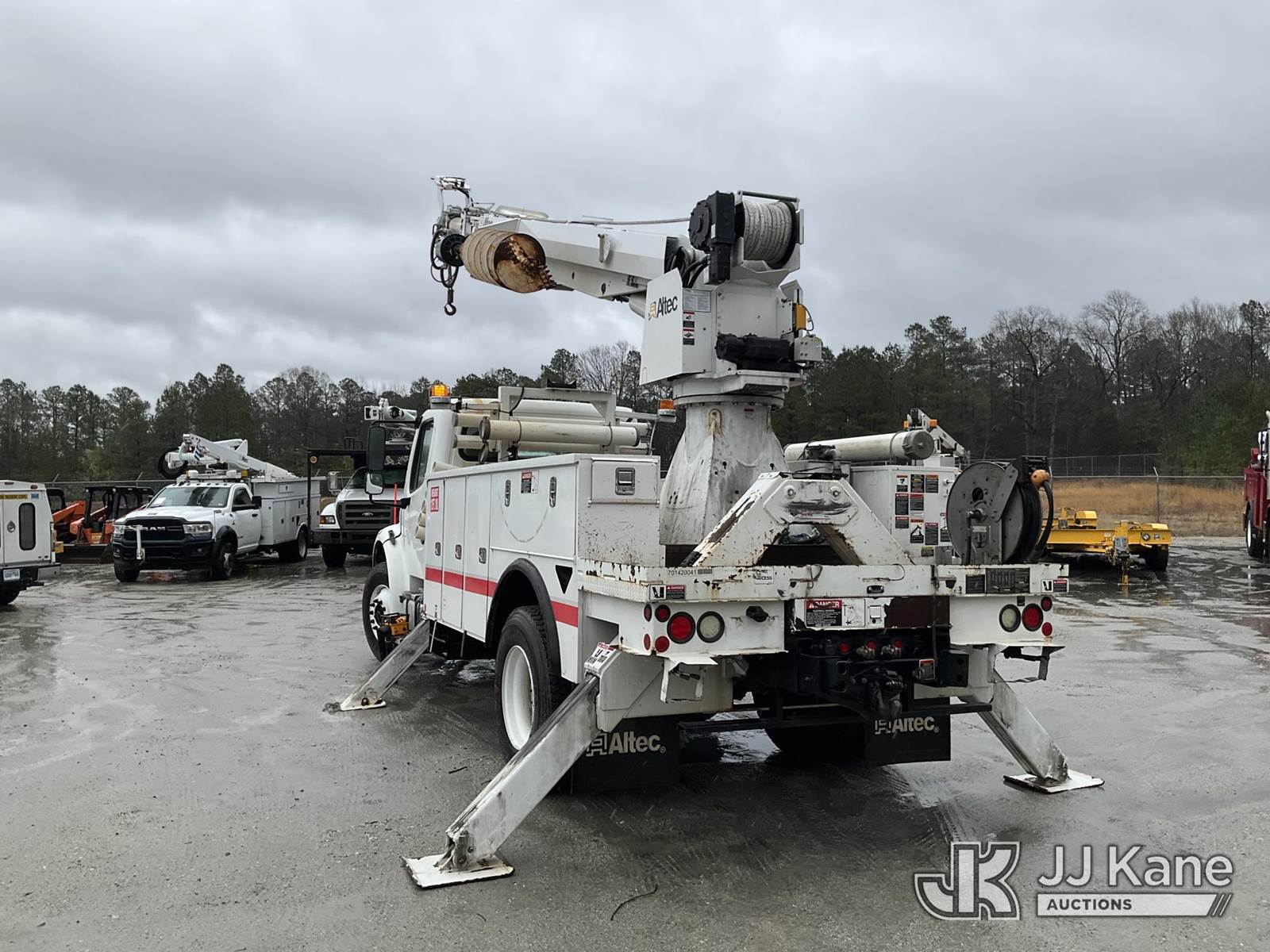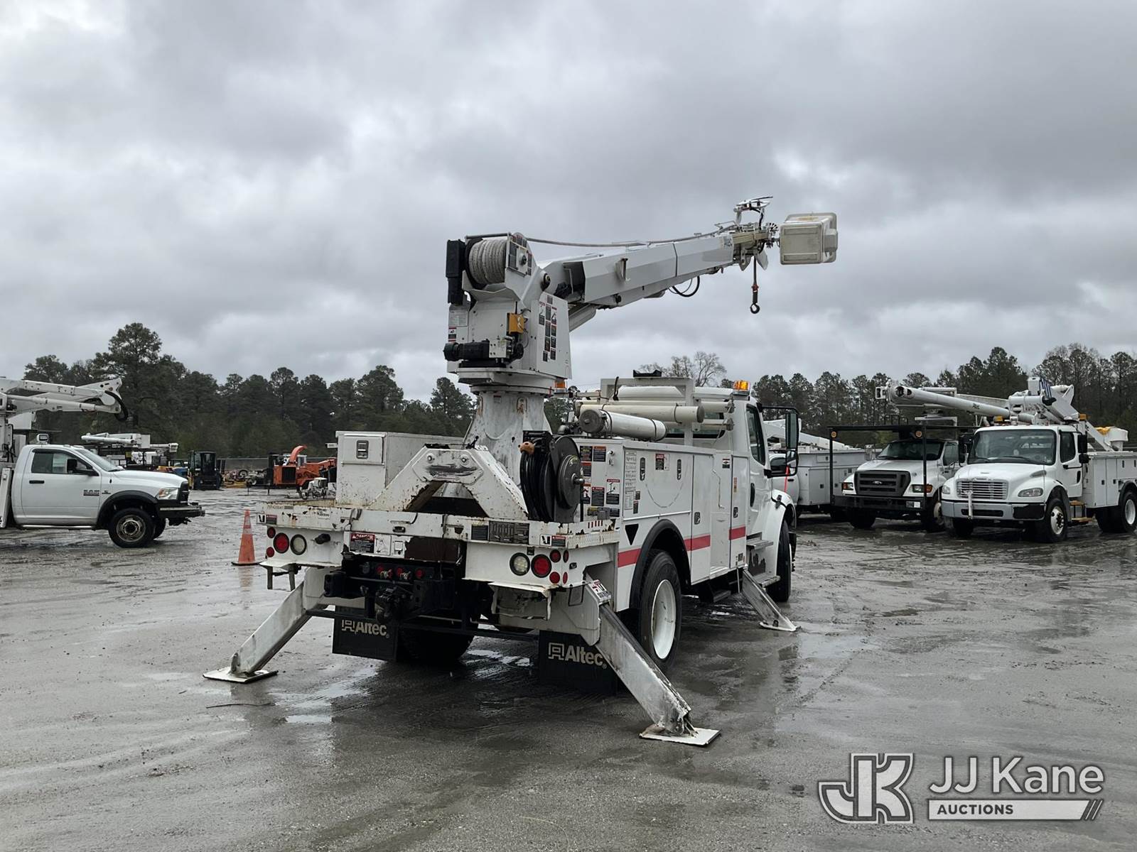 Altec DM47B-TR, 23,790 Lb Digger Derrick s/n 0114FR1055, with 47ft sheave height, 2spd digger, pole guides, upper controls, pin-on bucket, heel winch, wireless remote, rear mounted on 2014 Freightliner M2-106 Utility Truck, 6.7L diesel, Auto, A/C, (148,965 miles) (Runs, Moves & Upper Operates) This is a Titled Item NOTE: This unit is being sold AS IS/WHERE IS via Timed Auction and is located in Chester, VA. Inspection & preview days for this unit are the 2 business days prior to the first day of items closing for this auction, item is located at 13301 Great Coastal Dr Chester, VA 23836 and hours of operations are 8a-3p. For pre-sale questions, please contact Doug Caton @ 804-807-4574. (Manuals provided in cab) (Buyer is responsible for removal. Assistance by consignor or JJ Kane Auctions is not assured.)