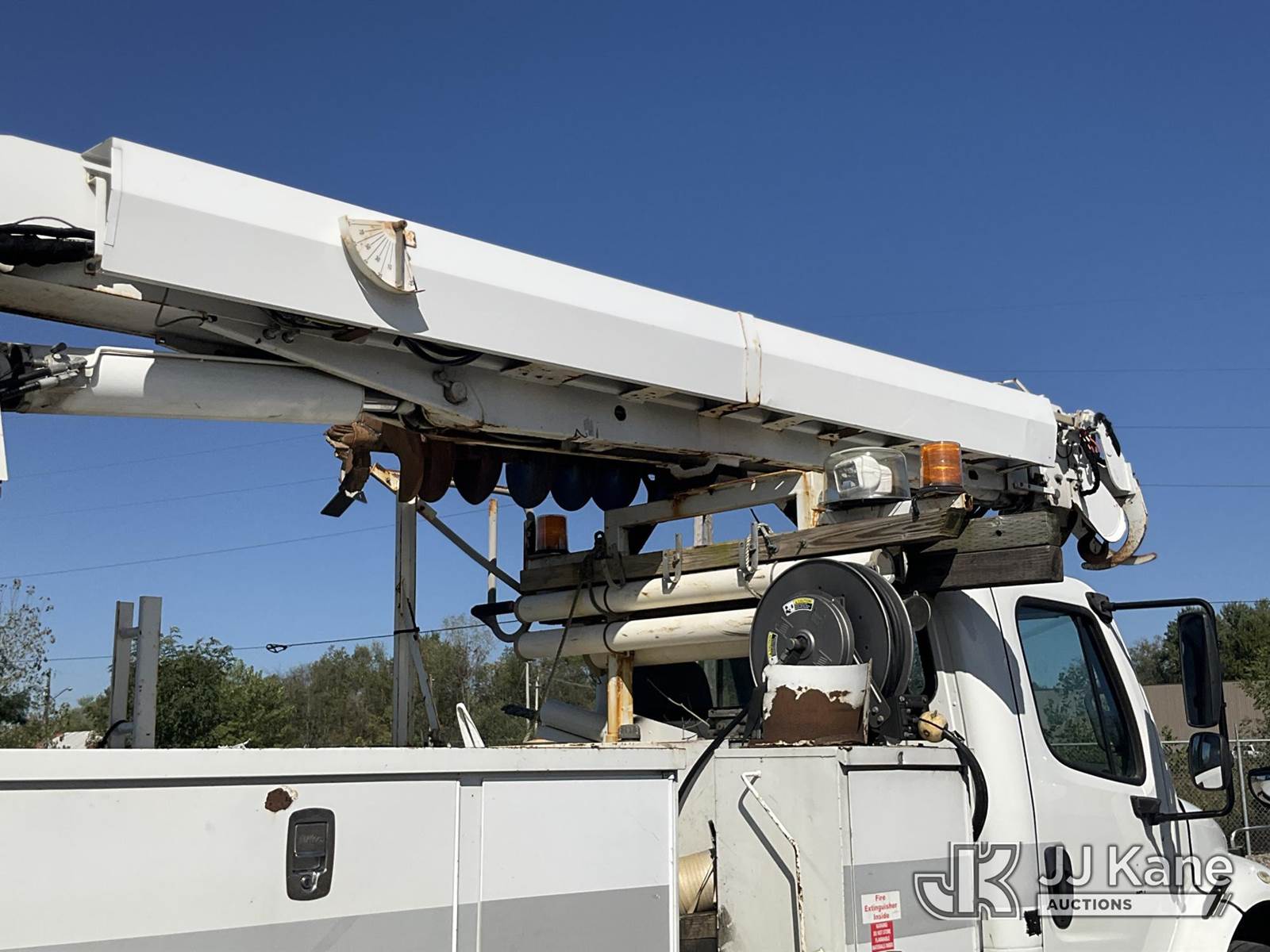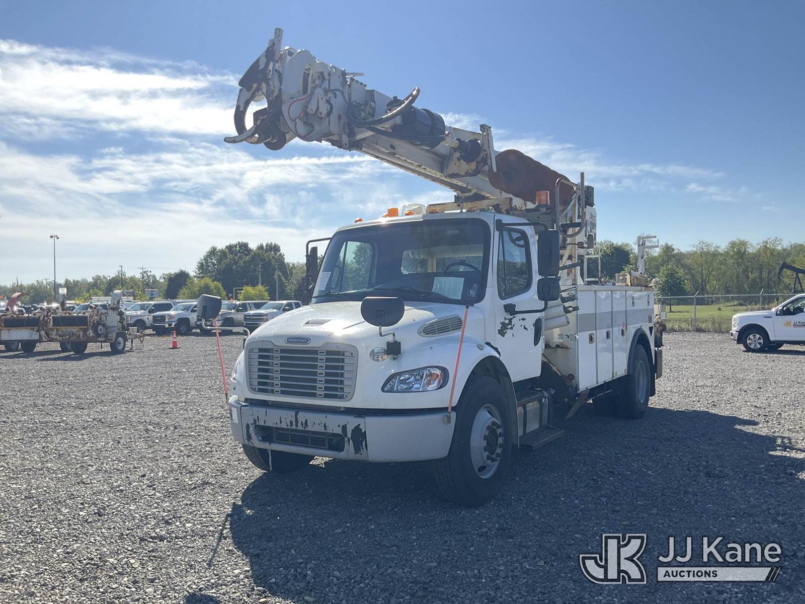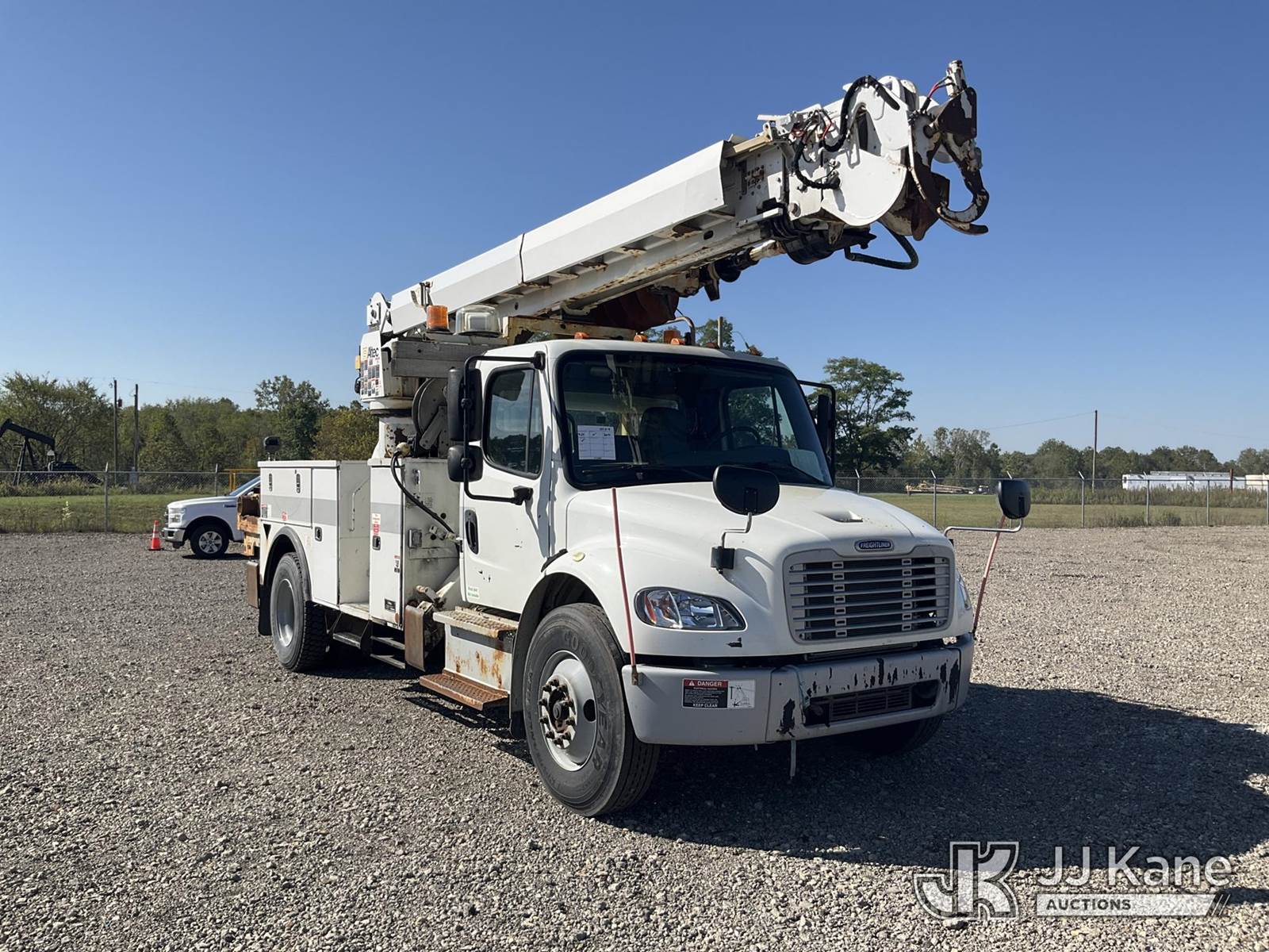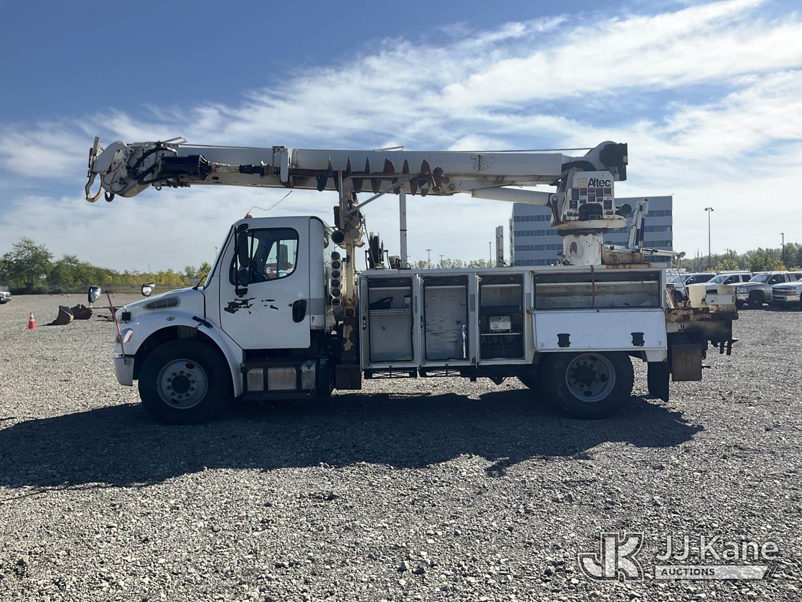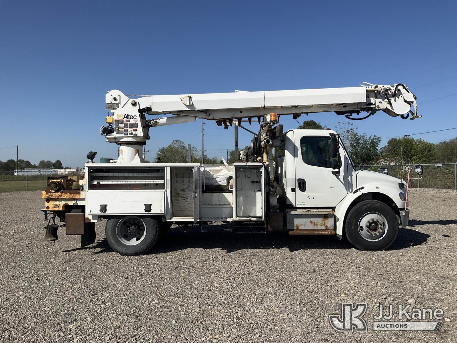 Altec DM47B-TR, Digger Derrick s/n 0713FR0713, with 47 ft. sheave height, 3 section hyd boom, 2 spd digger, heel winch, pole guides, stand up controls & 4 hyd outriggers, rear mounted on 2014 Freightliner M2 106 Utility Truck, 6.7L L6 diesel, Auto, 4X2, (117,537 miles) (Runs & Moves, Engine Light On, Check Engine Light On, Brake Light On, Air Brake Light On, PTO Issue, Upper Operation Unknown, Windshield Cracked, Paint & Rust Damage. seller Stats TOW REQUIRED AS UNIT HAS SAT FOR SOME TIME AND HAS PERFORMANCE / POWER ISSUES) This is a Titled Item NOTE: This unit is being sold AS IS/WHERE IS via Timed Auction and is located in Louisville, OH. Inspection & preview days for this unit are the 2 business days prior to the first day of items closing for this auction, item is located at 3648 Beck Ave Louisville, OH 44641 and hours of operations are 8a-4p. For pre-sale questions, please contact Aaron Coleman @ (330) 495-4041 or aaron.coleman@jjkane.com. (Manuals provided in cab) (Buyer is responsible for removal. Assistance by consignor or JJ Kane Auctioneers is not assured.)
