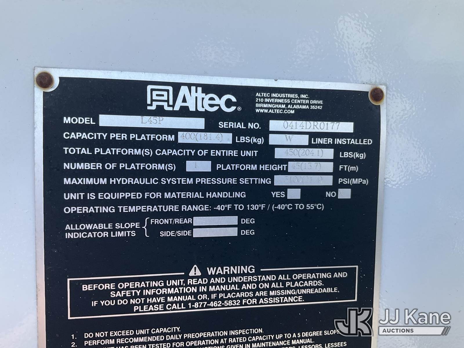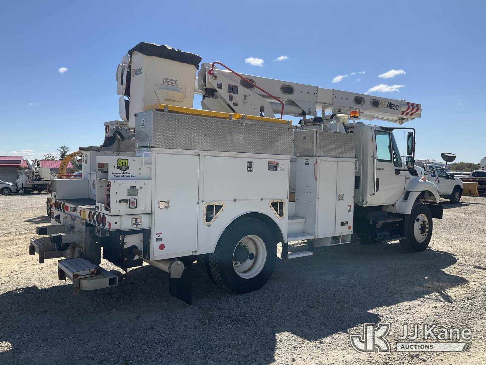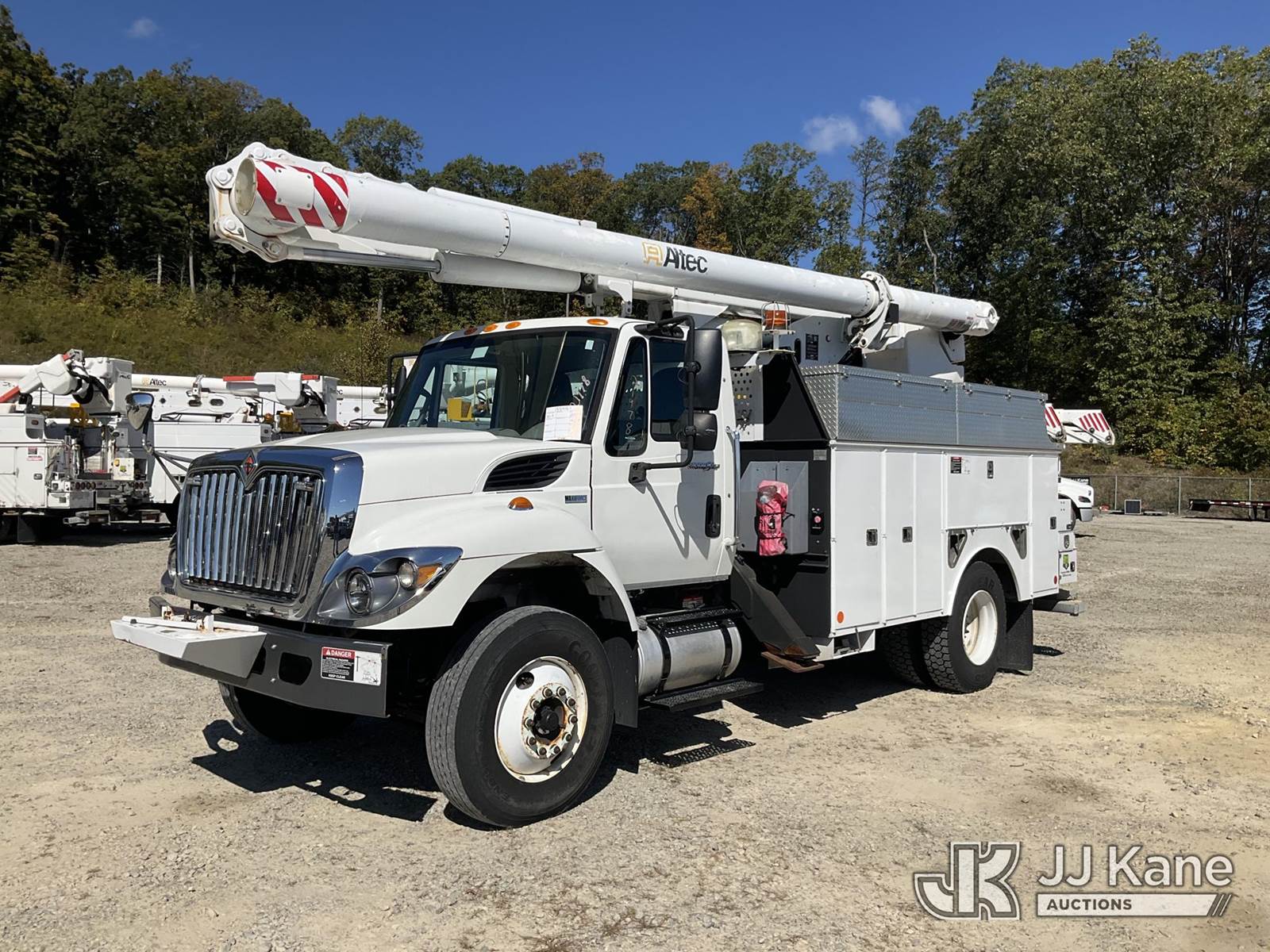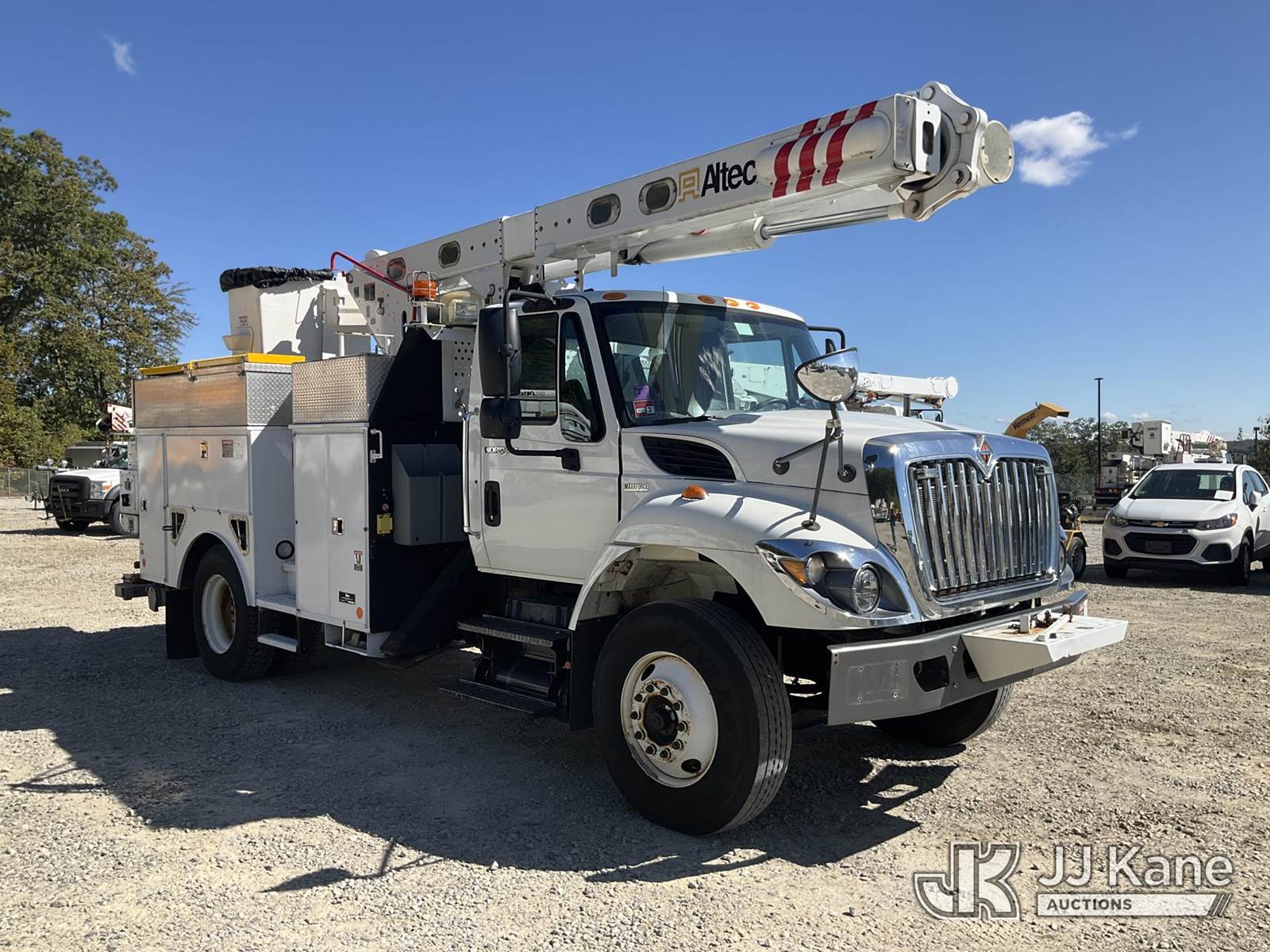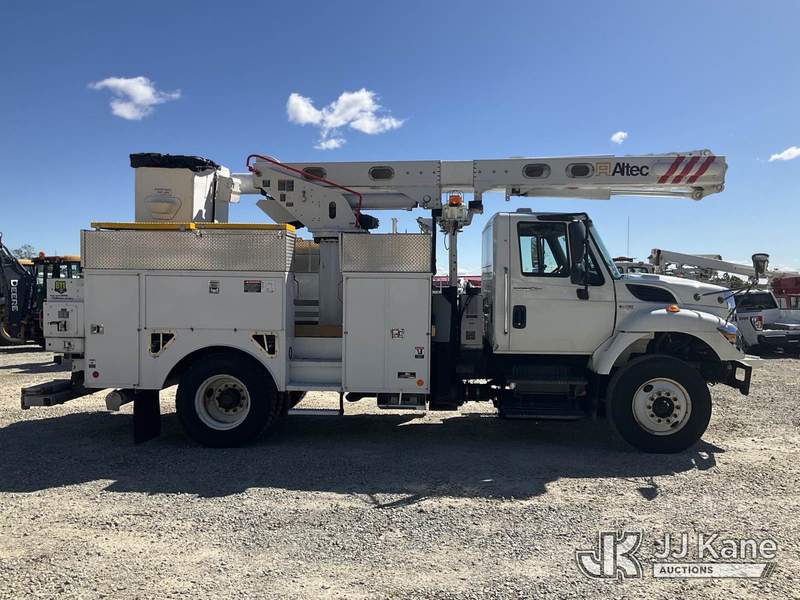Altec L45P, 50 ft, Over-Center Bucket Truck s/n 0414DR0177, with single-man bucket & 2 hyd outriggers, center mounted on 2014 International 7400 Utility Truck, MaxxForce 7.6L Auto, 4X2, diesel, A/C, (56,781 miles) (Runs & Moves) (PTO Not Engaging, Red Tagged From Seller, Upper Condition Unknown) (Reads 4,486 hours) This is a Titled Item NOTE: This unit is being sold AS IS/WHERE IS via Timed Auction and is located in Shrewsbury, MA. Inspection & preview days for this unit are the 2 business days prior to the first day of items closing for this auction, item is located at 11 Fortune Blvd Shrewsbury, MA 01545 and hours of operations are 8a-4p. For pre-sale questions, please contact Rob Gifford @ (508) 864-4126. (Manuals provided in cab) (Buyer is responsible for removal. Assistance by consignor or JJ Kane Auctioneers is not assured.)