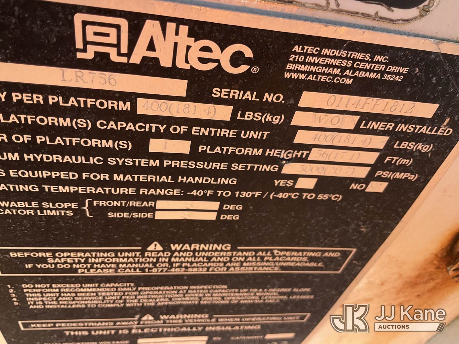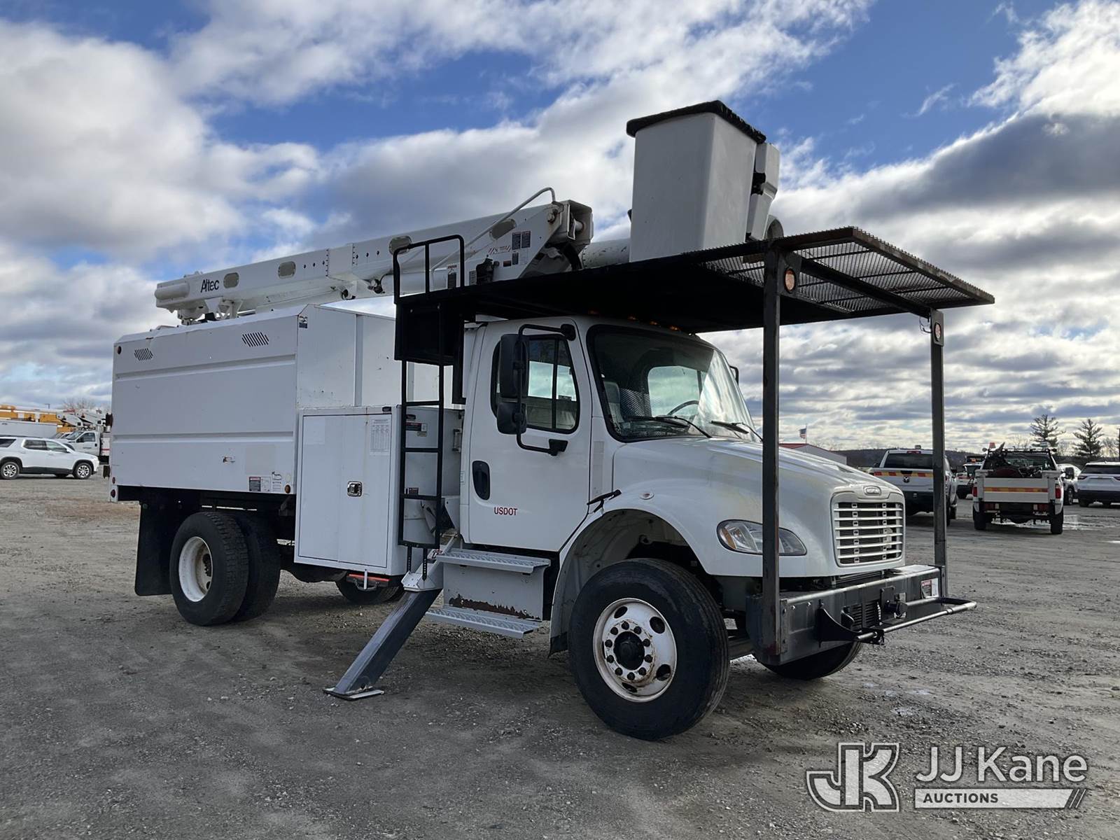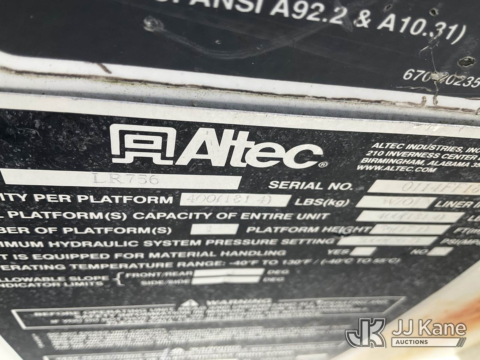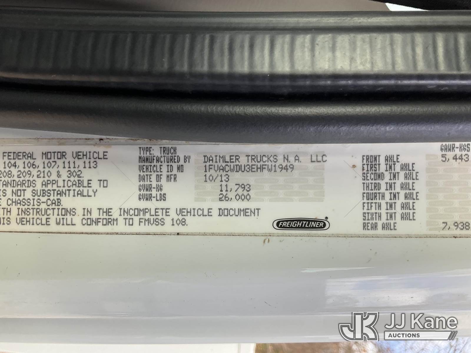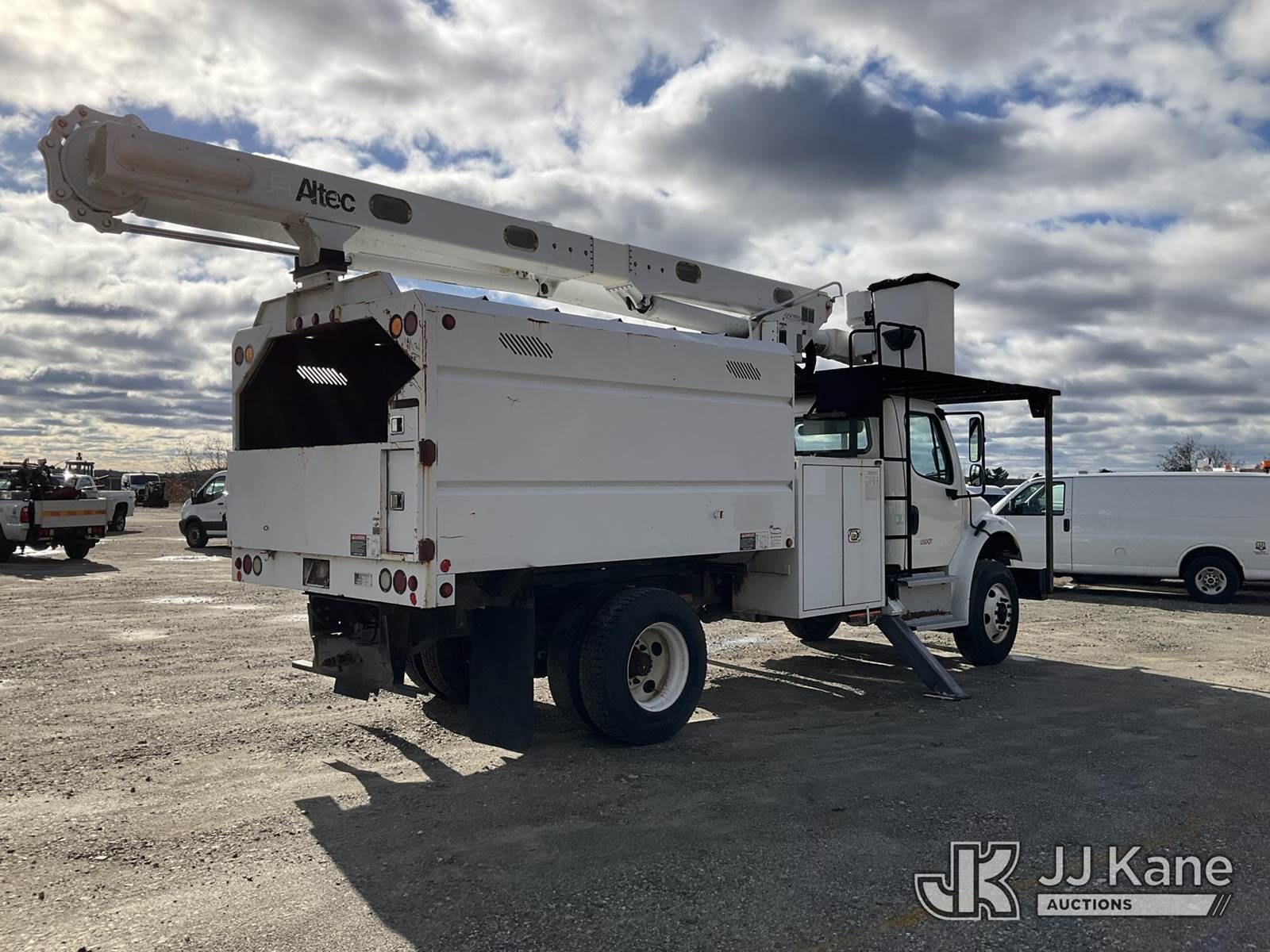 Altec LR756, 61 ft, Over-Center Bucket Truck s/n 0114FF1812, mounted behind cab on 2014 Freightliner M2 106 Chipper Dump Truck, Cummins 6.7L 6-spd, 4X2, diesel, with 26,000 LBS GVWR, (70,718 miles) (Runs, Moves & Outriggers Operate) (Selector Lever Seized, Upper Condition Unknown, Check Engine Light On) (Reads 9,069 hours) This is a Titled Item NOTE: This unit is being sold AS IS/WHERE IS via Timed Auction and is located in Shrewsbury, MA. Inspection & preview days for this unit are the 2 business days prior to the first day of items closing for this auction, item is located at 11 Fortune Blvd Shrewsbury, MA 01545 and hours of operations are 8a-4p. (Manuals provided in cab) (Buyer is responsible for removal. Assistance by consignor or JJ Kane Auctioneers is not assured.)