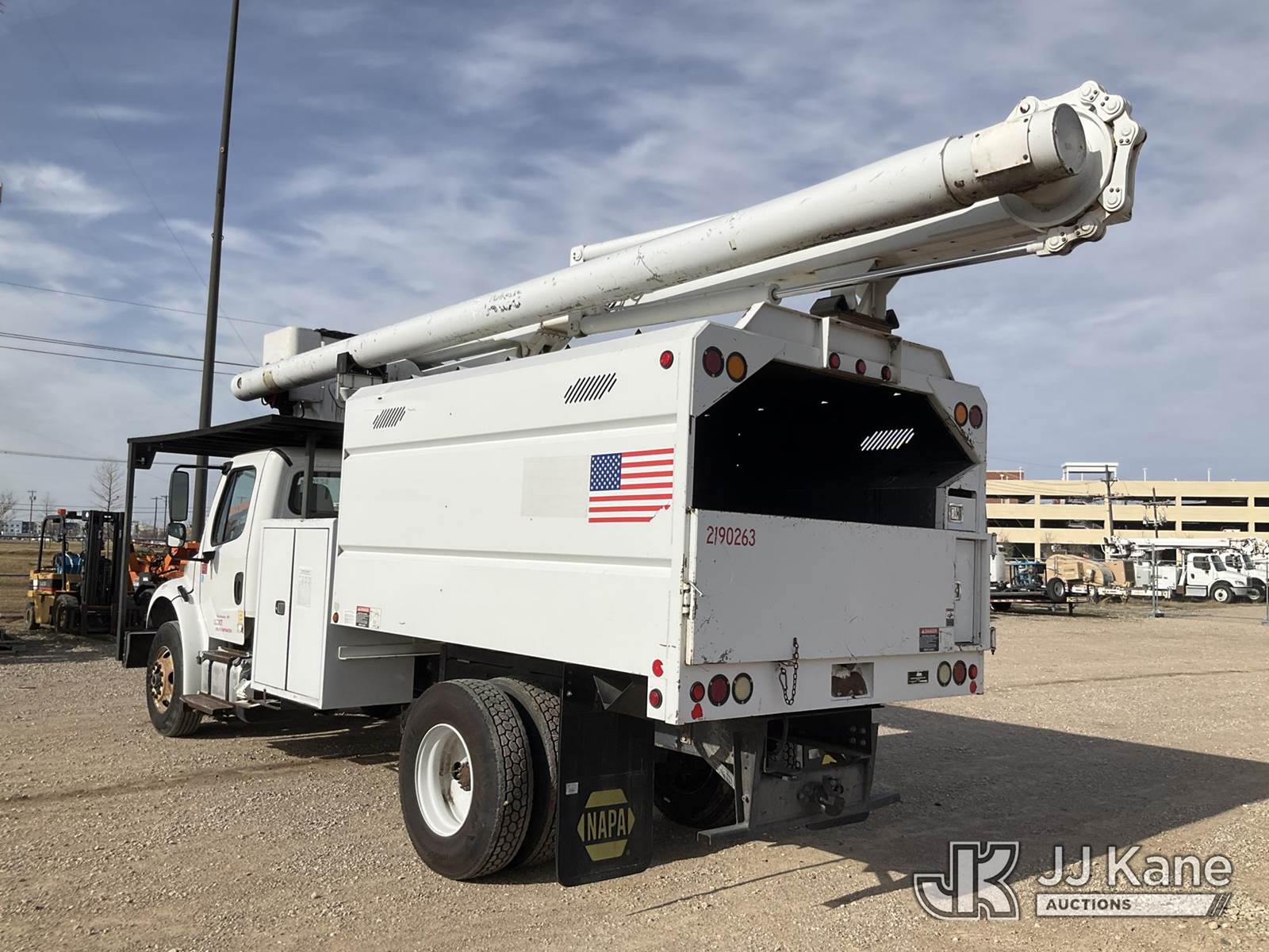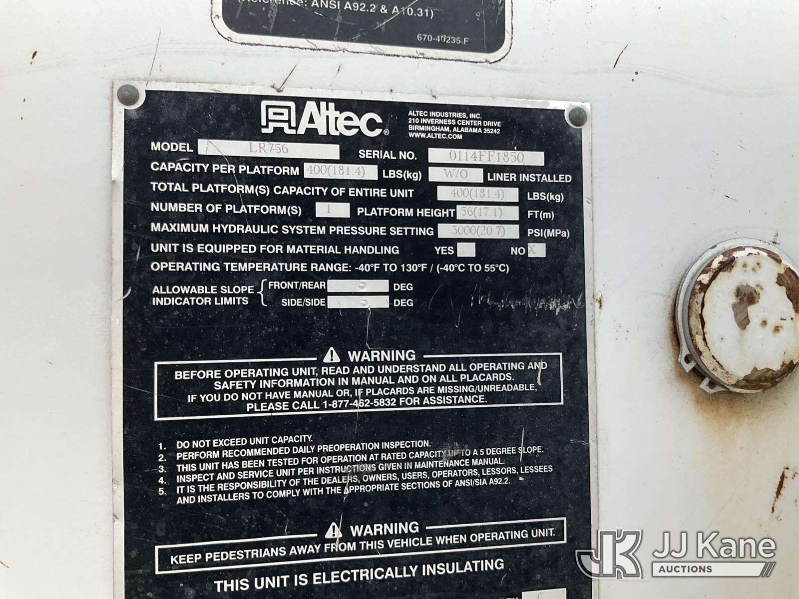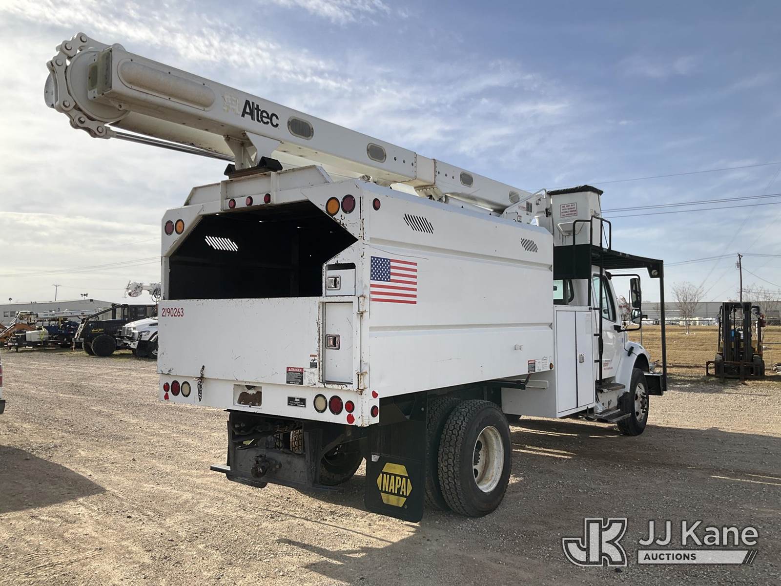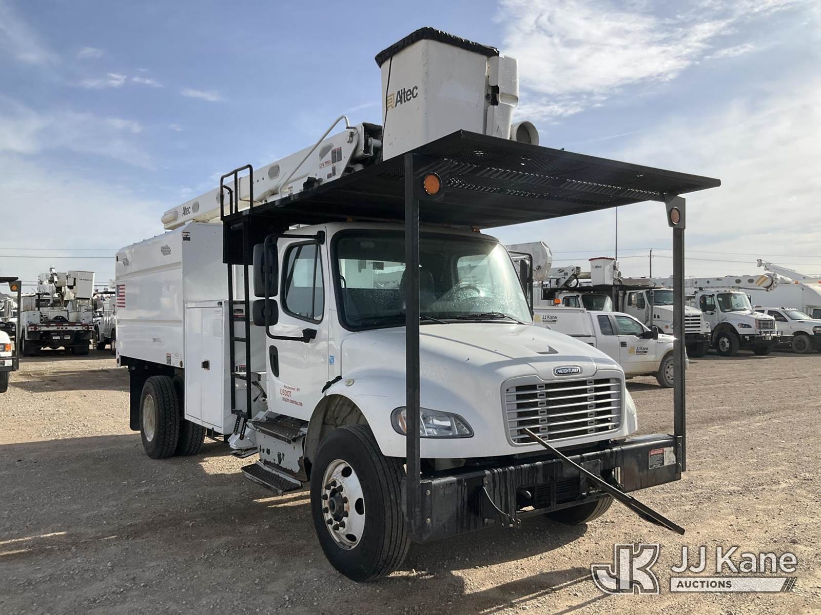 ALTEC LR756, 61 ft, Over-Center Bucket Truck s/n 0114FF1850, with single-man bucket & 2 hyd outriggers, mounted behind cab on 2014 Freightliner M2 106 Chipper Dump Truck, 6.7L L6 DIESEL 4X2, 6-spd, A/C, (81,504 miles) (Runs & Moves, Jump To Start, Selector Lever Jammed, Upper Condition Unknown, The manufacturer has notified JJ Kane that this equipment is subject to an open recall. CSN 611 Upper Boom CYlinder Inspection CSN 612 Trailer Relay Module Circuit Breaker Change CSN 672 LRV/LR7 Leveling Yoke Inspection The equipment should not be operated until this is addressed. Buyer is responsible for reviewing the recall notice and contacting the manufacturer to schedule the recommended corrective actions. Associated costs may be covered by the manufacturer in some cases.) This is a Titled Item NOTE: This unit is being sold AS IS/WHERE IS via Timed Auction and is located in Waxahachie, TX. Inspection & preview days for this unit are the 2 business days prior to the first day of items closing for this auction, item is located at 999 Solon Rd Waxahachie, TX 75165 and hours of operations are 8a-4p. For pre-sale questions, please contact Alex Bayless @ (469) 550-4938. (Manuals provided in cab) (Buyer is responsible for removal. Assistance by consignor or JJ Kane Auctions is not assured.)
