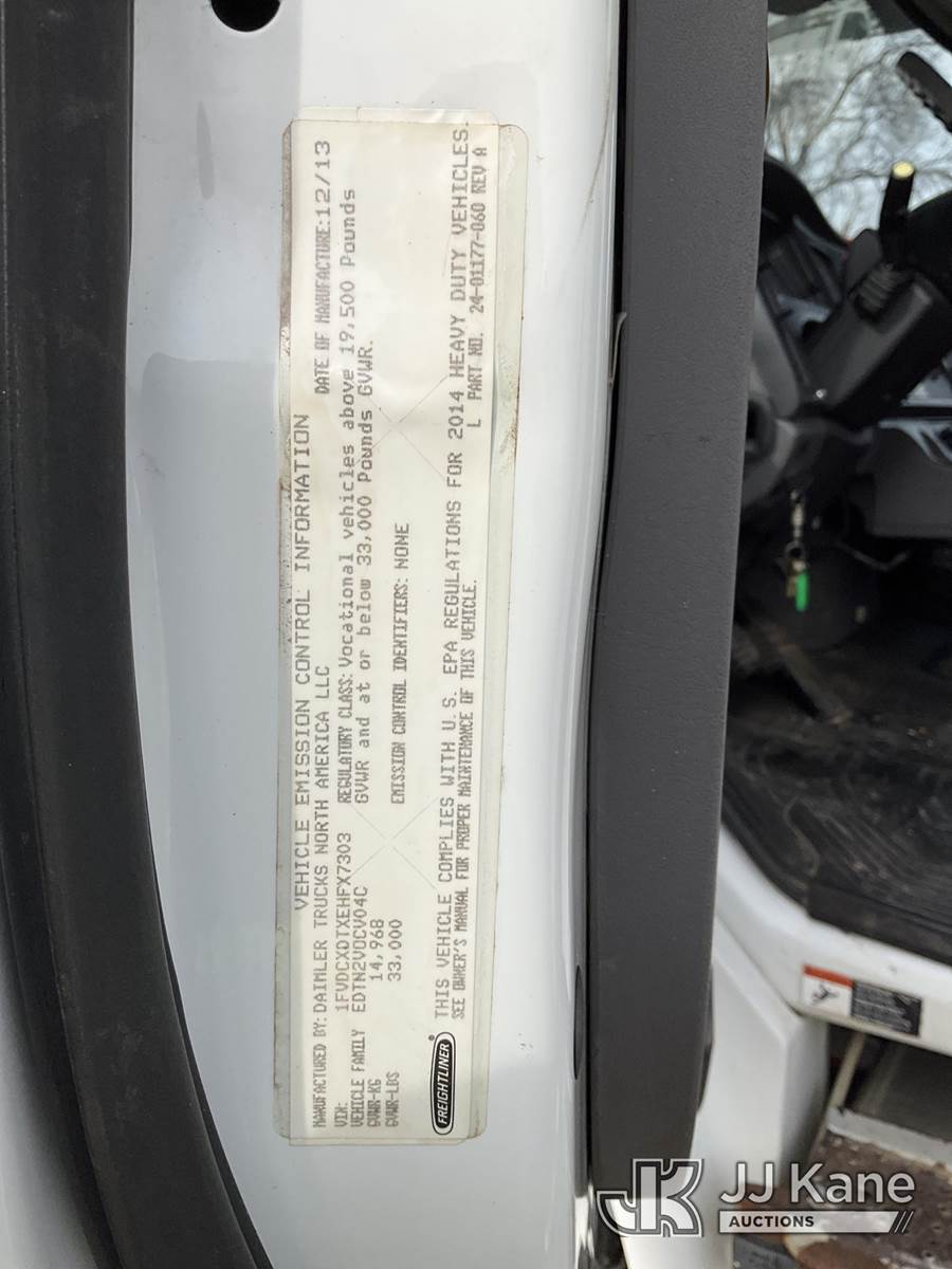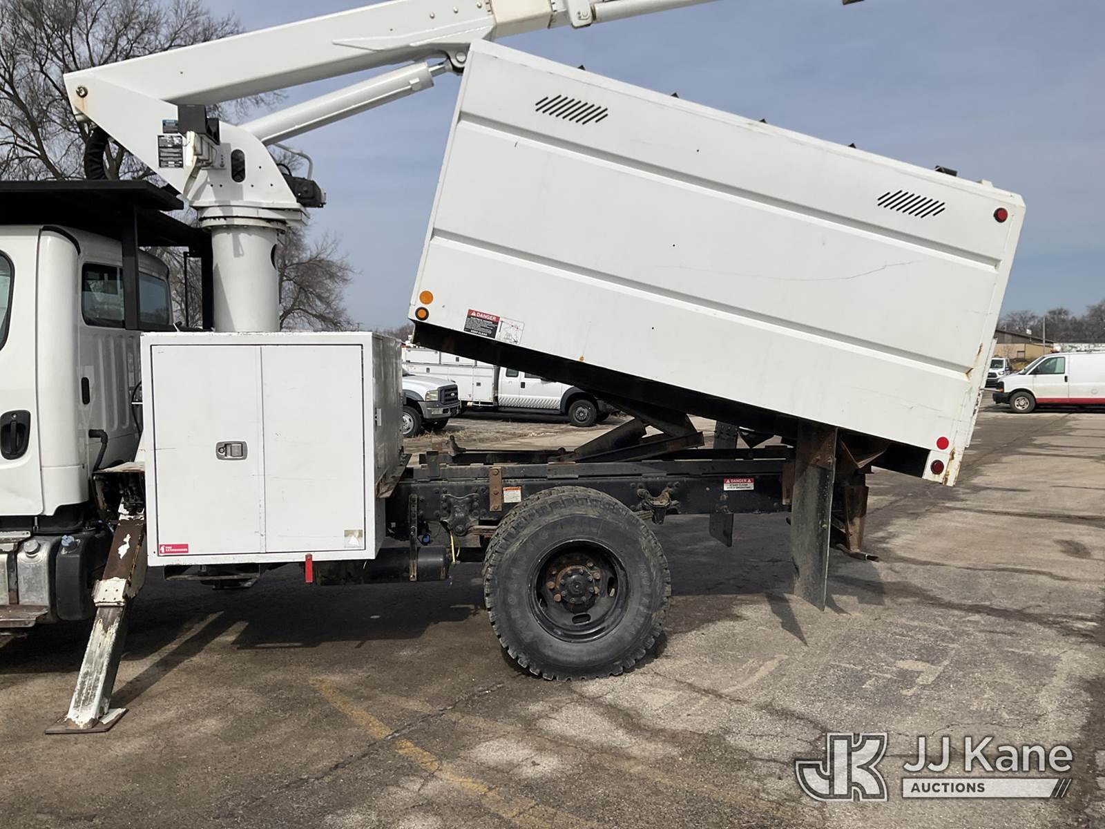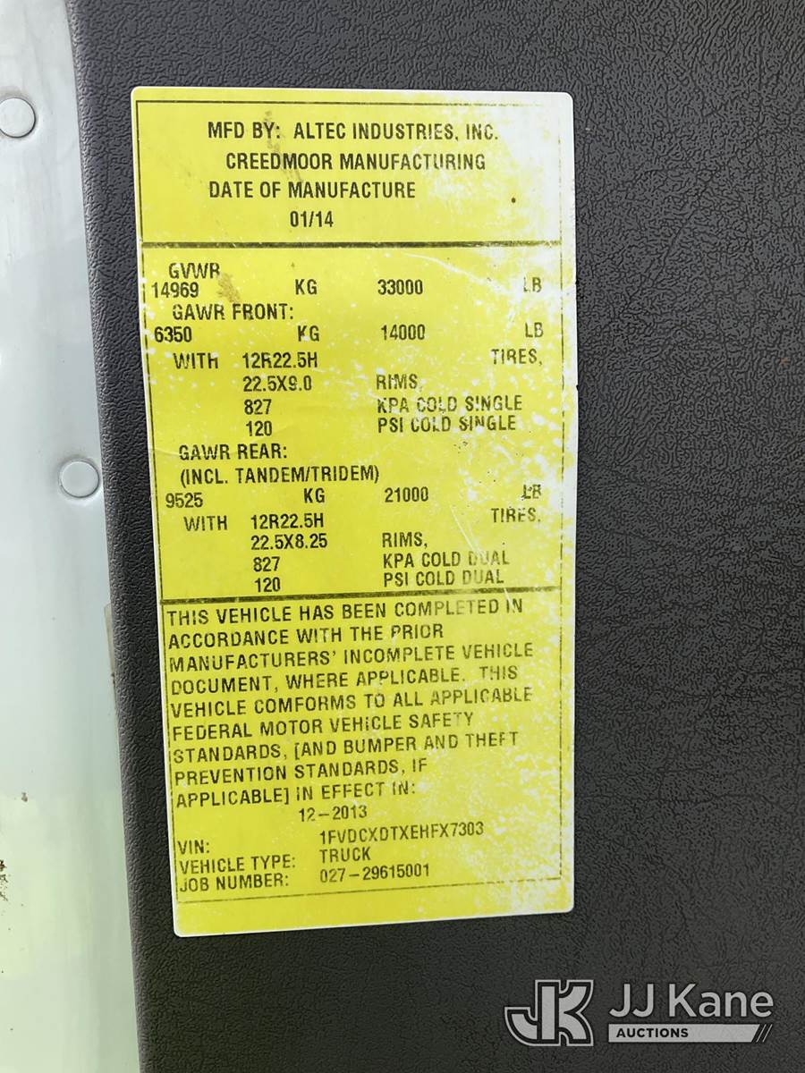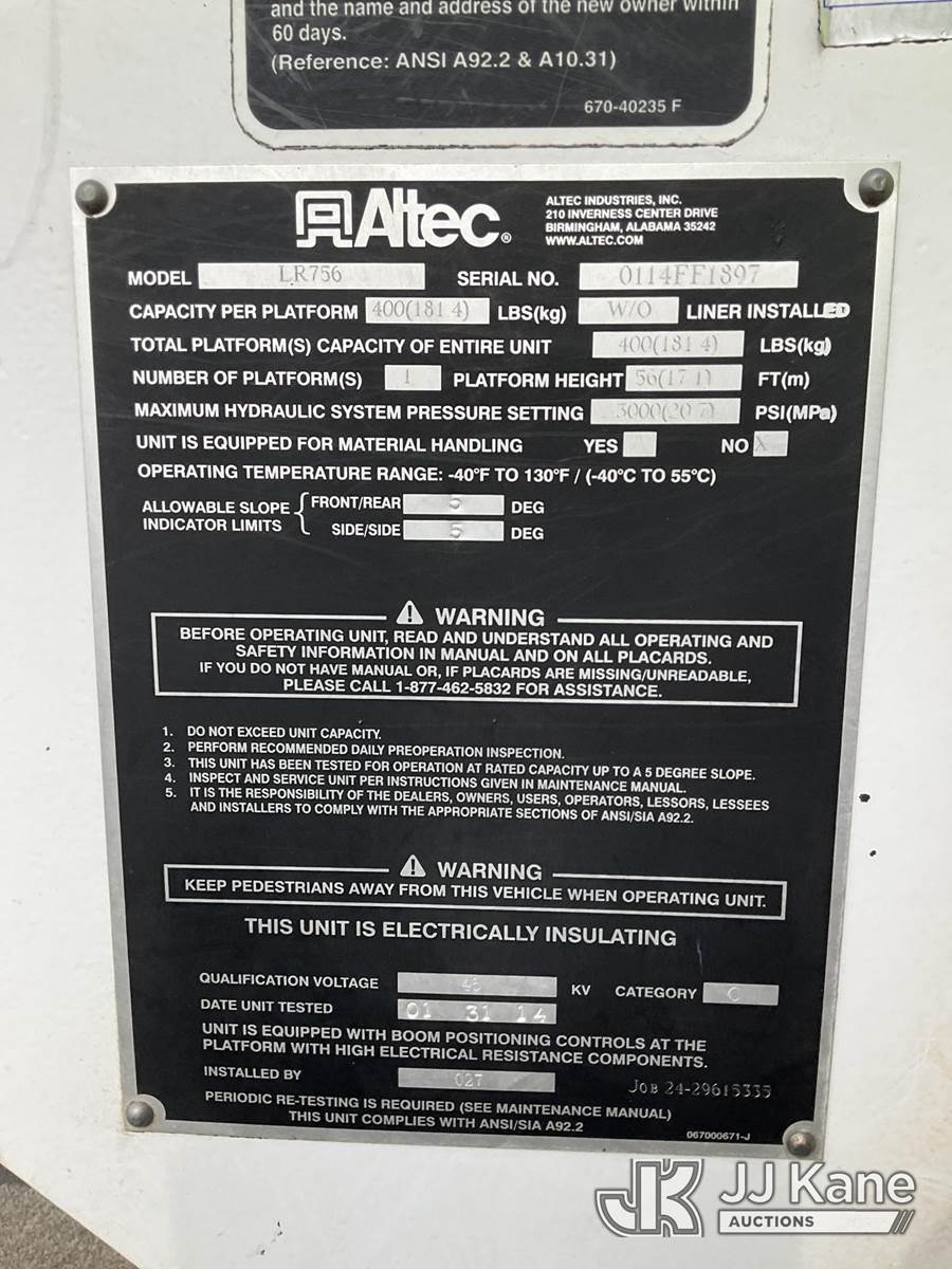 Altec LR756, 61 ft, Over-Center Bucket Truck s/n 0114FF1897, with Single-Man Bucket, mounted behind cab on 2014 Freightliner M2 106 Dump Chipper Truck, 6.7L L6 DIESEL 4X4, 6-spd manual, A/C, (75,236 miles) (Runs, Moves & Upper/Dump Operate) (ANS Light On The manufacturer has notified JJ Kane that this equipment is subject to an open recall. CSN 612 Trailer Relay Module Circuit Breaker Change CSN 672 LRV/LR7 Leveling Yoke Inspection The equipment should not be operated until this is addressed. Buyer is responsible for reviewing the recall notice and contacting the manufacturer to schedule the recommended corrective actions. Associated costs may be covered by the manufacturer in some cases.) (Reads 17,249 hours) This is a Titled Item NOTE: This unit is being sold AS IS/WHERE IS via Timed Auction and is located in South Beloit, IL. Inspection & preview days for this unit are the 2 business days prior to the first day of items closing for this auction, item is located at 14354 Dearborn Ave South Beloit, IL and hours of operations are 8a-4p. For pre-sale questions, please contact Derek Eklund at (608) 904-0618 or (derek.eklund@jjkane.com). (Manuals provided in cab) (Buyer is responsible for removal. Assistance by consignor or JJ Kane Auctions is not assured.)