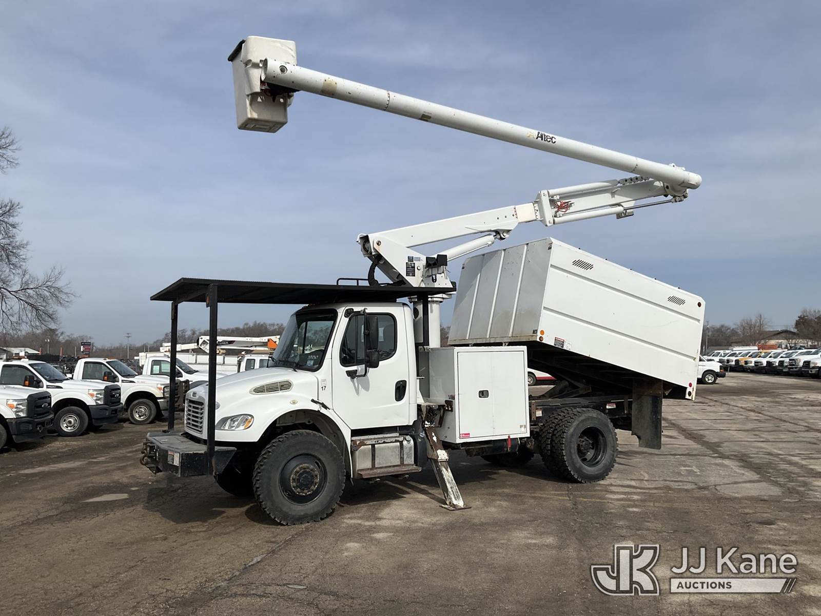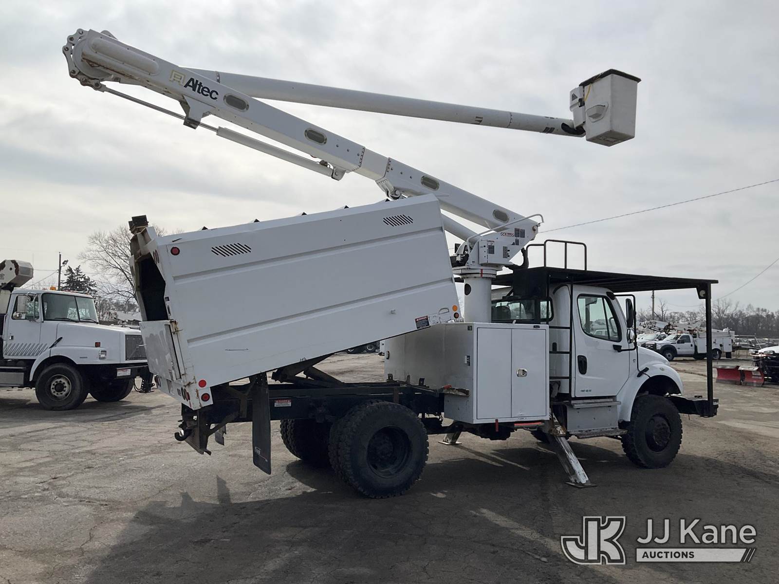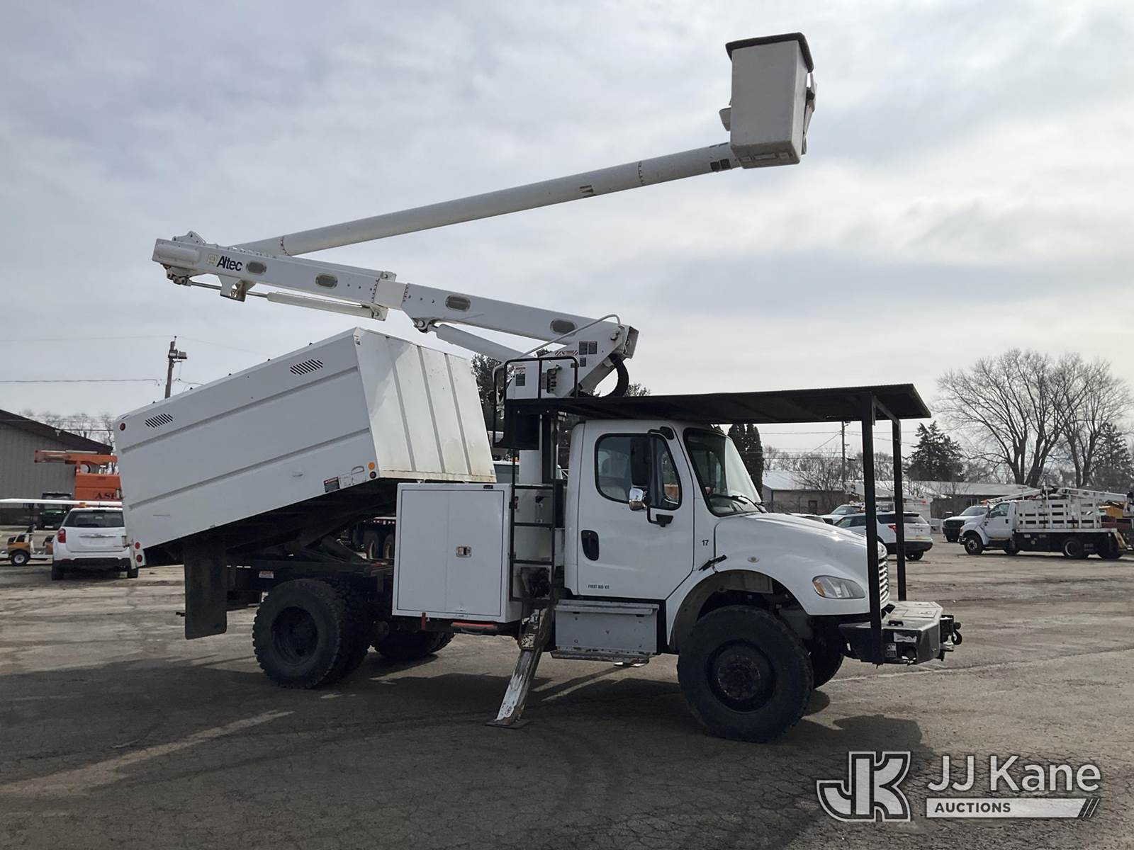 Altec LR756, 61 ft, Over-Center Bucket Truck s/n 0114FF1897, with Single-Man Bucket, mounted behind cab on 2014 Freightliner M2 106 Dump Chipper Truck, 6.7L L6 DIESEL 4X4, 6-spd manual, A/C, (75,236 miles) (Runs, Moves & Upper/Dump Operate) (ANS Light On The manufacturer has notified JJ Kane that this equipment is subject to an open recall. CSN 612 Trailer Relay Module Circuit Breaker Change CSN 672 LRV/LR7 Leveling Yoke Inspection The equipment should not be operated until this is addressed. Buyer is responsible for reviewing the recall notice and contacting the manufacturer to schedule the recommended corrective actions. Associated costs may be covered by the manufacturer in some cases.) (Reads 17,249 hours) This is a Titled Item NOTE: This unit is being sold AS IS/WHERE IS via Timed Auction and is located in South Beloit, IL. Inspection & preview days for this unit are the 2 business days prior to the first day of items closing for this auction, item is located at 14354 Dearborn Ave South Beloit, IL and hours of operations are 8a-4p. For pre-sale questions, please contact Derek Eklund at (608) 904-0618 or (derek.eklund@jjkane.com). (Manuals provided in cab) (Buyer is responsible for removal. Assistance by consignor or JJ Kane Auctions is not assured.)