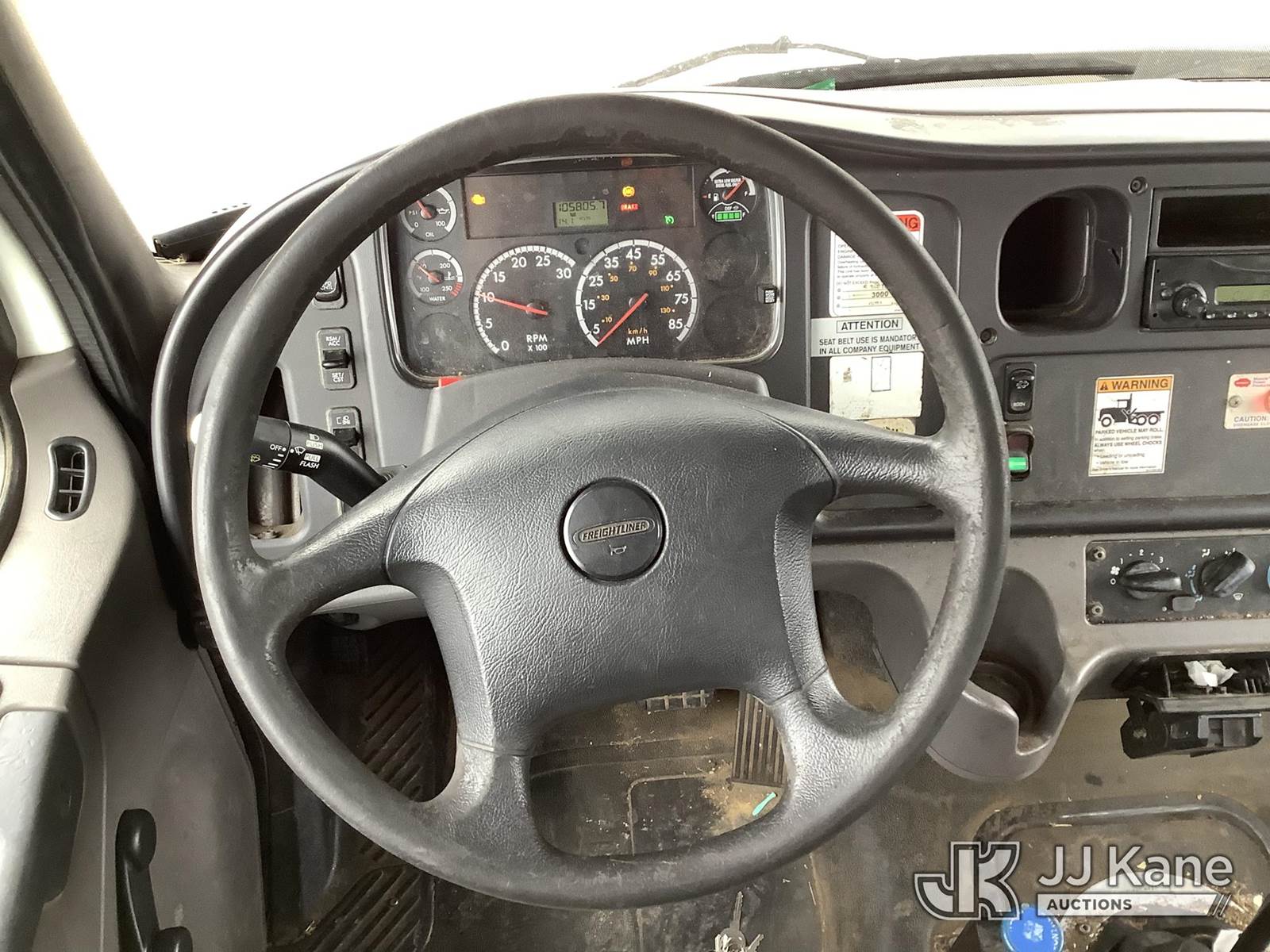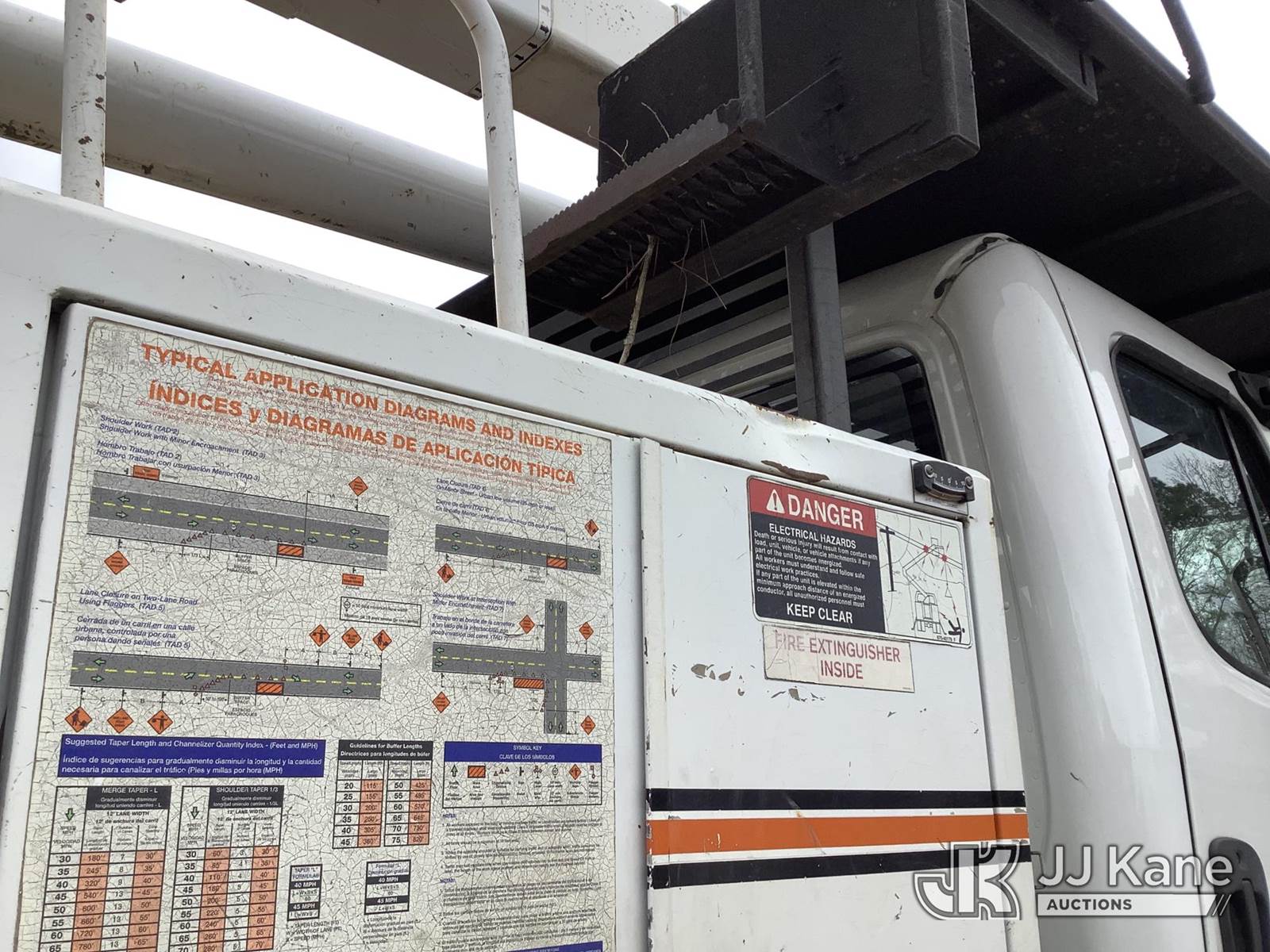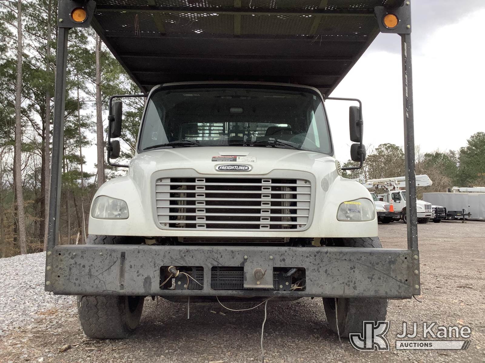 Altec LR758RM, 63 ft, Over-Center Bucket Truck s/n 0414FF2199, with single-man bucket & 4 hyd outriggers, rear mounted on 2014 Freightliner M2 106 Flatbed Truck, 6.7L L6 diesel, 6-spd, 4X2, (105,805 miles) (Runs & Moves) (Key Broken Off In Ignition, Upper Not Operating, Condition Unknown, Check Engine Light On, ABS Light On, PTO Engages, Bad Selector Switch) This is a Titled Item NOTE: This unit is being sold AS IS/WHERE IS via Timed Auction and is located in Graysville, AL. Inspection & preview days for this unit are by appointment only; please contact us at contact@jjkane.com or 84-Go-JJKane for more details. Alabama Auctioneer Michael Whitebread - License # 5592 (Missing manuals, See Auction Company for Manufacturers Information to obtain manuals) (Buyer is responsible for removal. Assistance by consignor or JJ Kane Auctions is not assured.)
