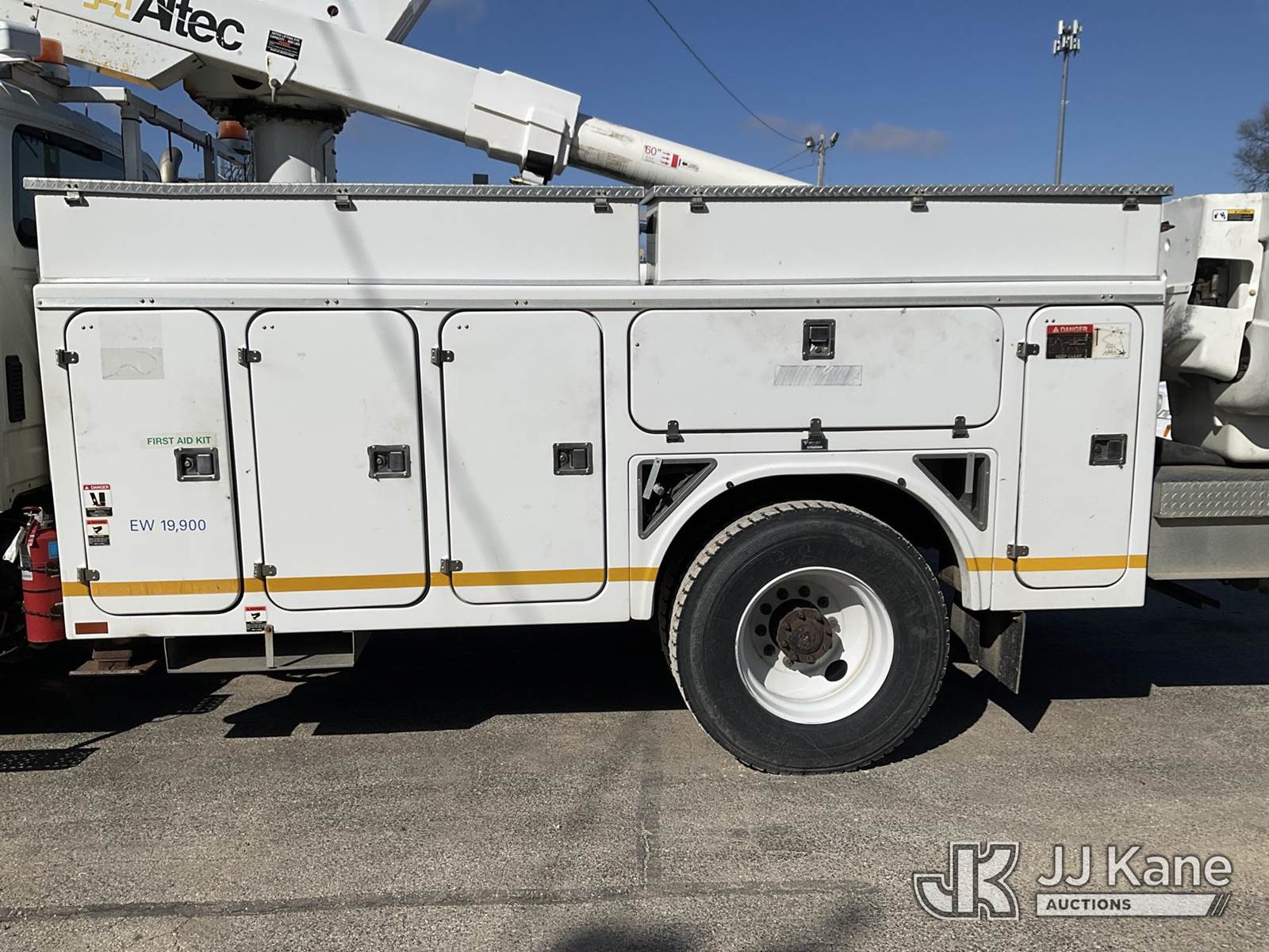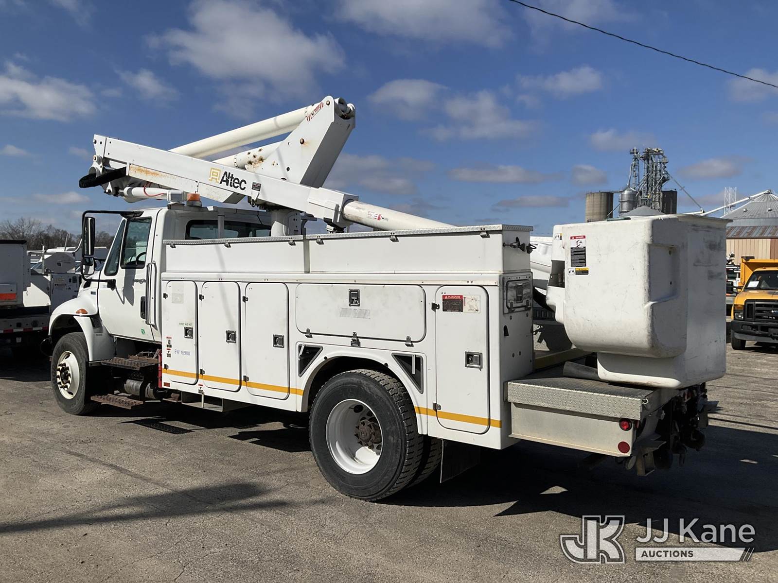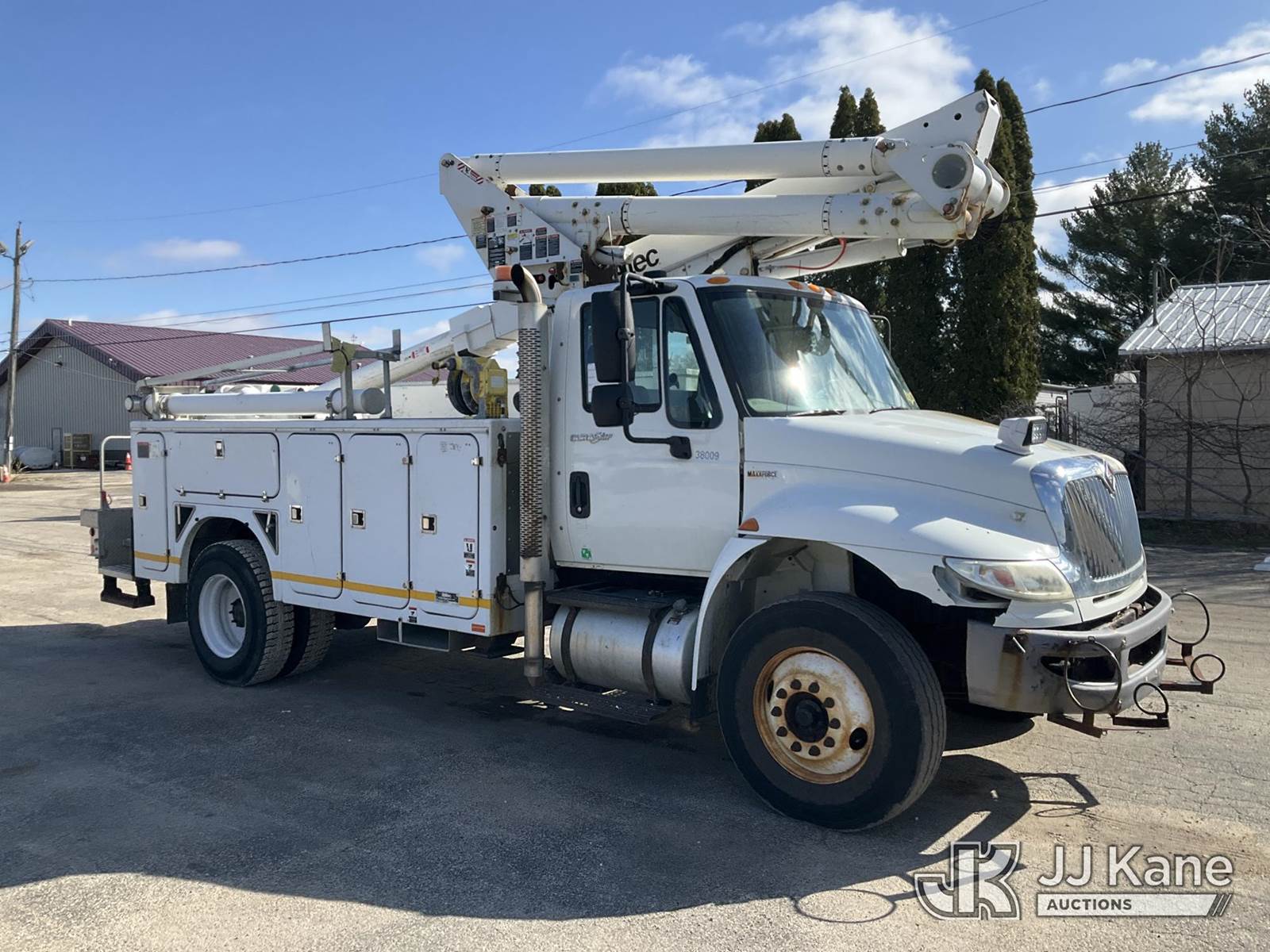 Altec TA45M, 49 ft, Articulating & Telescopic Material Handling Bucket Truck s/n 0913CY0419, with single-man bucket, mounted behind cab on 2014 International DuraStar 4300 Utility Truck, 7.6L diesel, 4X2, Auto, A/C, (239,741 miles) (Not Running, Condition Unknown) (The manufacturer has notified JJ Kane that this equipment is subject to an open recall. CSN 643 TA Winch Brake Inspection The equipment should not be operated until this is addressed. Buyer is responsible for reviewing the recall notice and contacting the manufacturer to schedule the recommended corrective actions. Associated costs may be covered by the manufacturer in some cases.) (Reads 11,289 hours) This is a Titled Item NOTE: This unit is being sold AS IS/WHERE IS via Timed Auction and is located in South Beloit, IL. Inspection & preview days for this unit are the 2 business days prior to the first day of items closing for this auction, item is located at 14354 Dearborn Ave South Beloit, IL and hours of operations are 8a-4p. For pre-sale questions, please contact Derek Eklund at (608) 904-0618 or (derek.eklund@jjkane.com). (Manuals provided in cab) (Buyer is responsible for removal. Assistance by consignor or JJ Kane Auctions is not assured.)