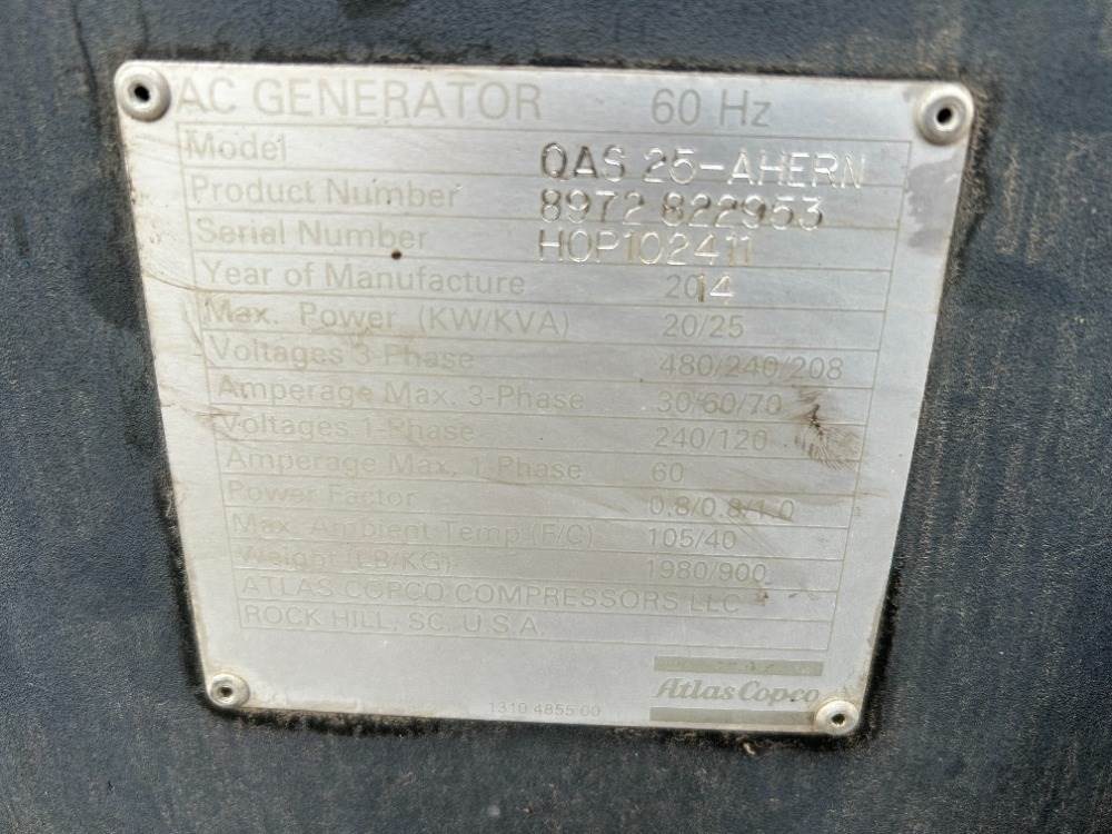 2014 ATLAS COPCO QAS25 GENERATOR