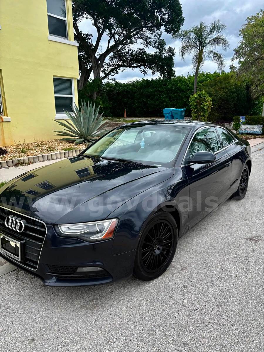 2014 Audi A5 COUPE 2-DR, 2.0L L4 DOHC 16V TURBO.Air Conditioning; Power Windows; Power Locks; Power Steering; Tilt Wheel; AM/FM CD/MP3; Satellite; AM/FM CD/DVD; Sentry Key; Keyless Entry; Alarm; Dual Front Air Bag; Active Belts; All Wheel ABS Vehicle starts and runs: YES Drives Forward and Reverse: : YES FWD/RWD/AWD: RWD Transmission Type: Automatic Fuel Type: Gas Engine Condition: Runs - YES Transmission Condition: Runs - YES Exterior Minor Damage: None Exterior Major Damage: None Tire Condition: Good Interior Minor Damage: None Interior Major Damage: None AC: YES Heat: YES Power: Steering, Windows, Door Locks, Seats, Radio, Speakers as is Assets are Sold “As Is”. Inspections are encouraged. If shipping, buyer agrees to pay for transportation. Sale is final once asset is removed.