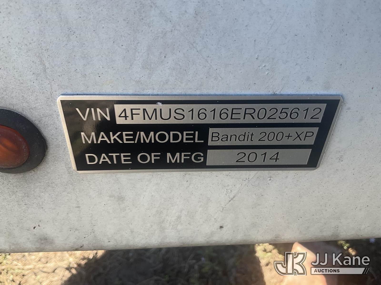 2014 Bandit 200+XP Chipper (12in Disc), diesel, trailer mtd. (Moves) (Not Running, Operating Condition Unknown) (No Key, Paint Damage) (FL Residents Purchasing Titled Items - tax, title & registration fees will be collected at the maximum rate of $400.00 under 25,999 and $800.00 for Over 26,000 and $250.00 trailers - Proof of insurance is mandatory; Out of State Residents Purchasing Title Items - tax will be collected based upon your state rate.) This is a Titled Item NOTE: This unit is being sold AS IS/WHERE IS via Timed Auction and is located in Thonotosassa, FL. Inspection & preview days for this unit are the 2 business days prior to the first day of items closing for this auction, item is located at 11720 N US 301 Thonotosassa, Fl 33592 and hours of operations are 8a-4p. For pre-sale questions, please contact Office Staff @ (813) 986-2485. (Buyer is responsible for removal. Assistance by consignor or JJ Kane Auctions is not assured.)