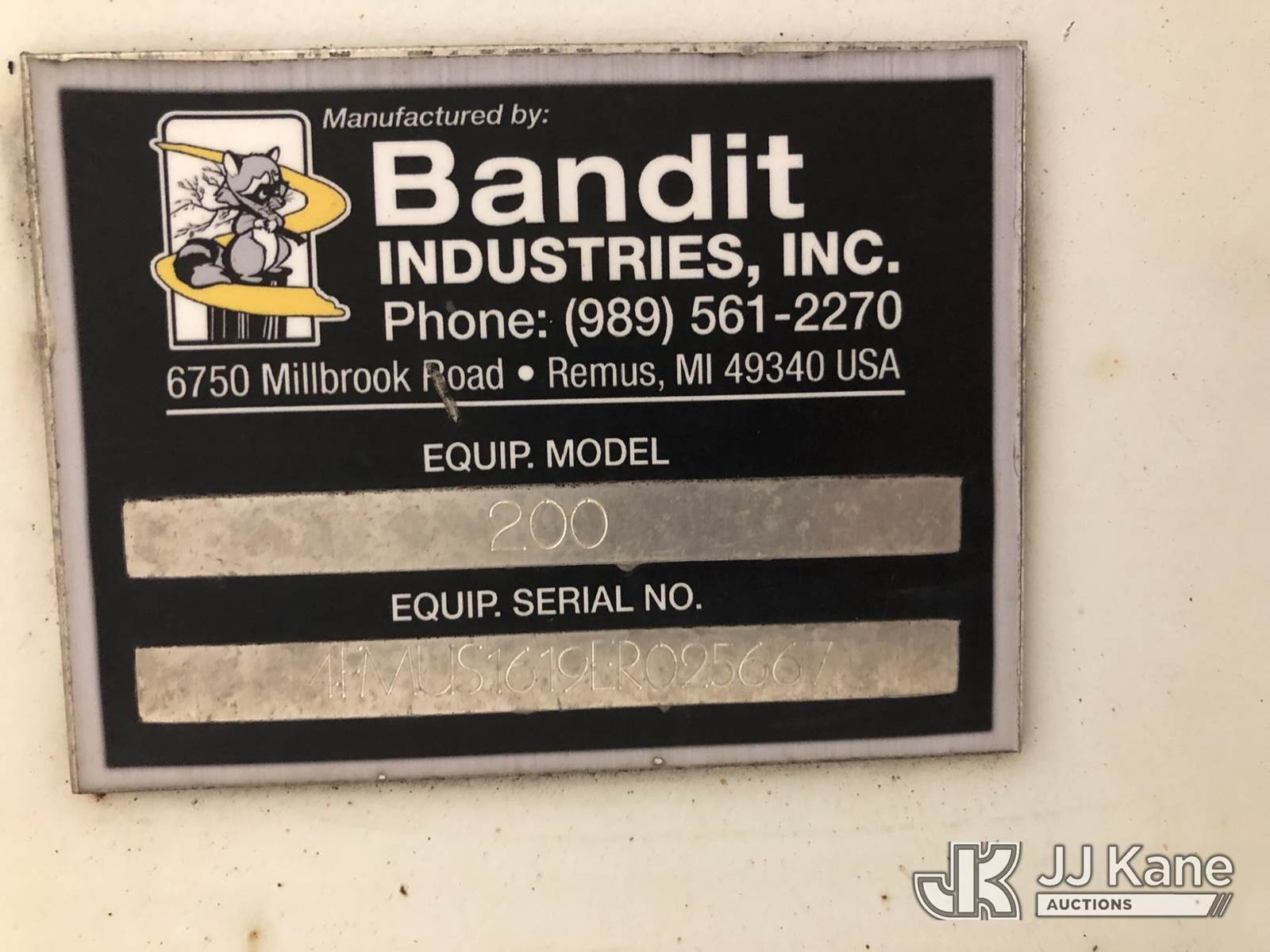 2014 Bandit Industries 200XP Portable Chipper (12in Disc), s/n 4FMUS1619ER025667, 4-cyl, diesel, trailer mtd (No Title) (Runs, Operational Condition Unknown, No Plug) (Removal is by Appointment Only, Buyer MUST make a appointment prior to picking up, Buyer/Transporter Must have PAID IN FULL RELEASE. No onsite assistance available, Please Come prepared.) (Reads 1,659 hours) NOTE: This unit is being sold AS IS/WHERE IS via Timed Auction and is located in Hagerstown, MD. Inspection & preview days for this unit are by appointment only; please contact us at contact@jjkane.com or 84-Go-JJKane for more details. For pre-sale questions, please contact the on-site office @ (301) 895-7777 or Kevin.Waggoner@JJKane.com. (Buyer is responsible for removal. Assistance by consignor or JJ Kane Auctions is not assured.)