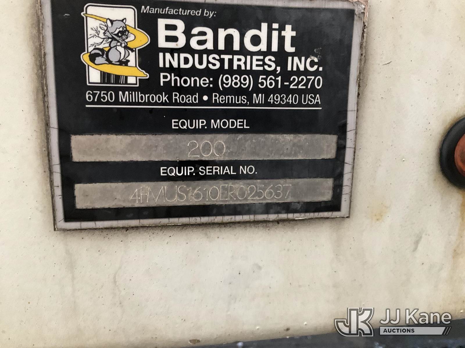 2014 Bandit Industries 200XP Portable Chipper (12in Disc), s/n 4FMUS1610ER025637, 4-cyl, Diesel, trailer mtd (No Title) (Runs, Operational Condition Unknown, Engine Noise, No Plug) (Removal is by Appointment Only, Buyer MUST make a appointment prior to picking up, Buyer/Transporter Must have PAID IN FULL RELEASE. No onsite assistance available, Please Come prepared.) (Reads 1,356 hours) NOTE: This unit is being sold AS IS/WHERE IS via Timed Auction and is located in Hagerstown, MD. Inspection & preview days for this unit are by appointment only; please contact us at contact@jjkane.com or 84-Go-JJKane for more details. For pre-sale questions, please contact the on-site office @ (301) 895-7777 or Kevin.Waggoner@JJKane.com. (Buyer is responsible for removal. Assistance by consignor or JJ Kane Auctions is not assured.)