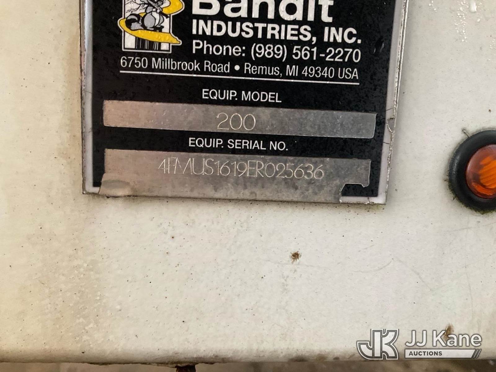 2014 Bandit Industries 200XP Portable Chipper (12in Disc), s/n 4FMUS1619ER025636, 4-cyl, diesel, trailer mtd (No Title) (Runs, Operational Condition Unknown, No Plug) (Removal is by Appointment Only, Buyer MUST make a appointment prior to picking up, Buyer/Transporter Must have PAID IN FULL RELEASE. No onsite assistance available, Please Come prepared.) (Reads 1,314 hours) NOTE: This unit is being sold AS IS/WHERE IS via Timed Auction and is located in Hagerstown, MD. Inspection & preview days for this unit are by appointment only; please contact us at contact@jjkane.com or 84-Go-JJKane for more details. For pre-sale questions, please contact the on-site office @ (301) 895-7777 or Kevin.Waggoner@JJKane.com. (Buyer is responsible for removal. Assistance by consignor or JJ Kane Auctions is not assured.)