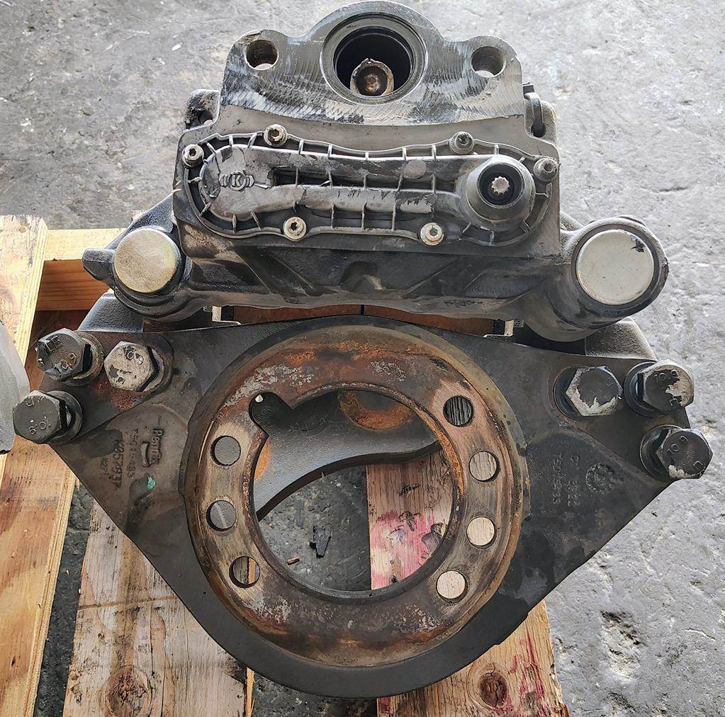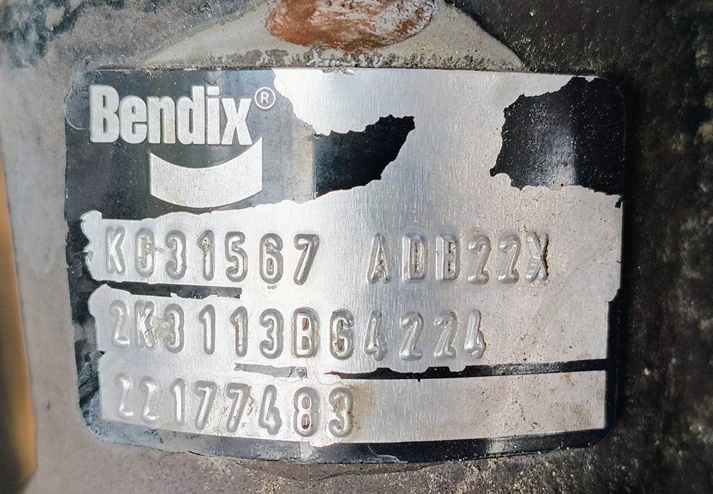 Bendix ADB22X Front Passenger Side Air Disc Brake w/ Torque Plate. P/N K031567, Casting # Z035247, Pad Carier Casting # Z005728, Torque Plate P/N K057937 (Replaced By K103257), Torque Plate Casting # T5015433.