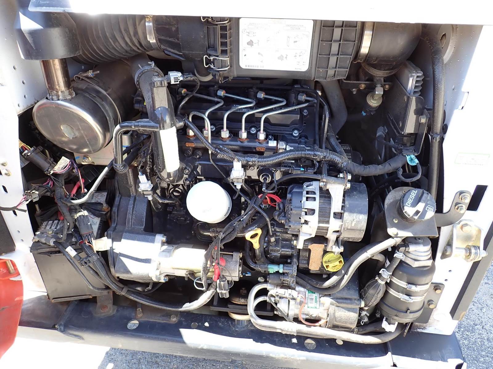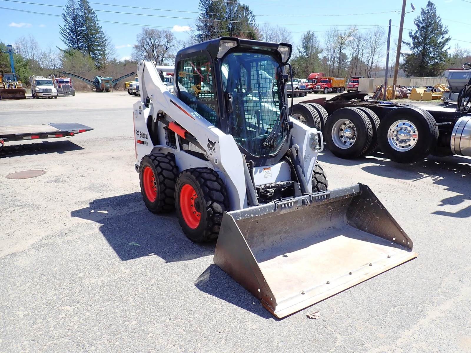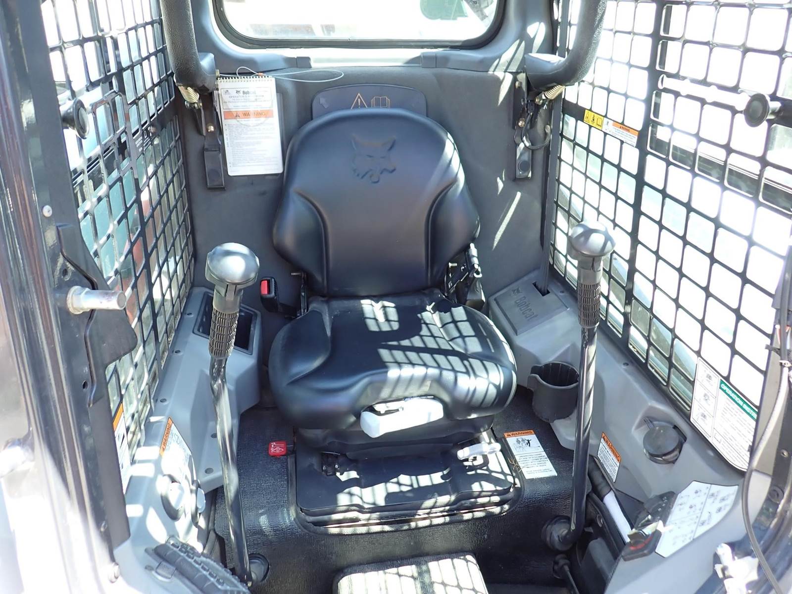 1 owner machine, 1950 lb lift, cab w/ a/c, hydraulic coupler, auxiliary hydraulics, 66" bucket, 4 cylinder Bobcat turbo, 61 hp, hand/foot controls, 6.4k lbs