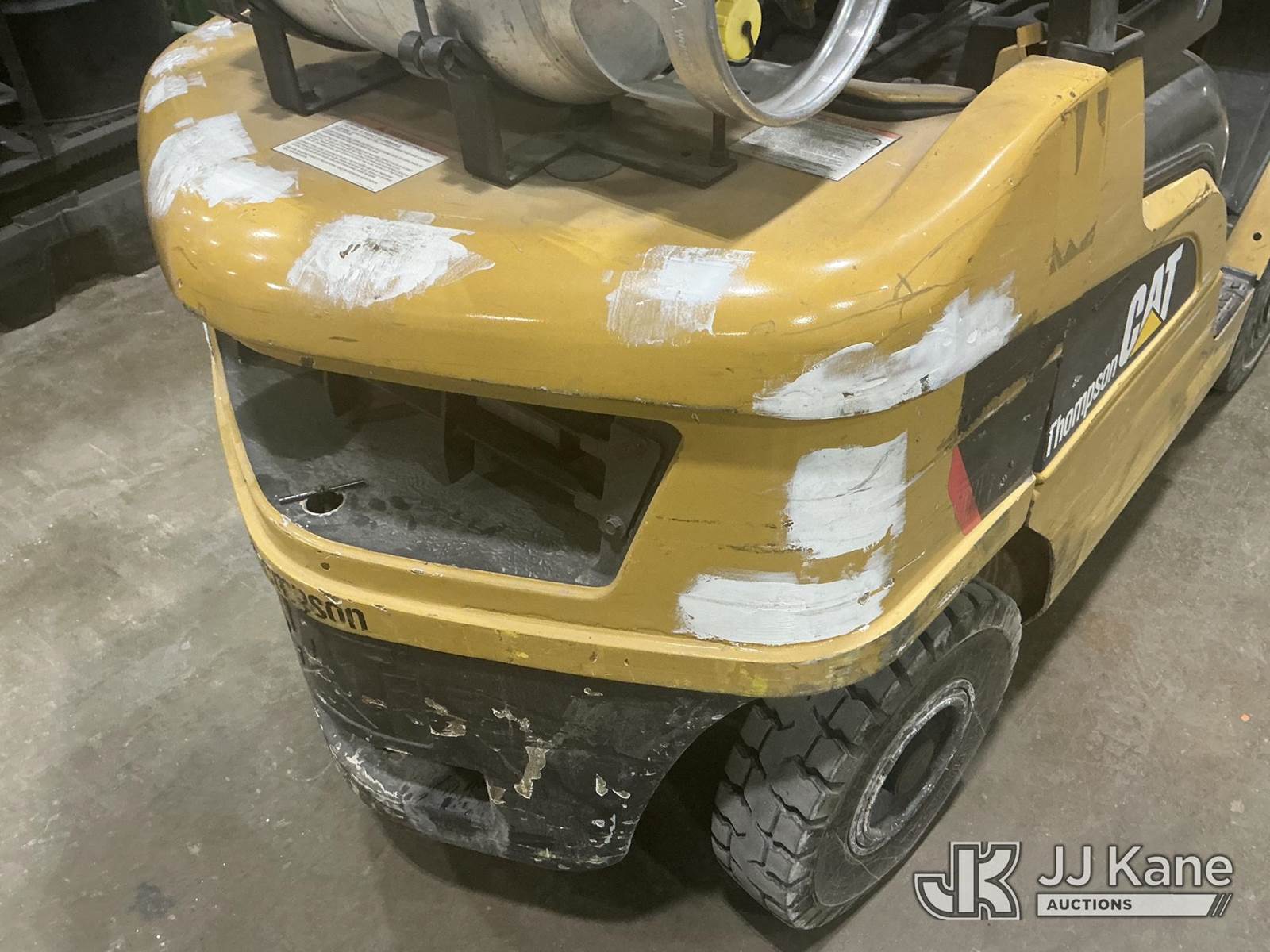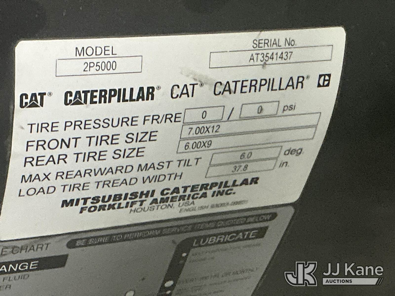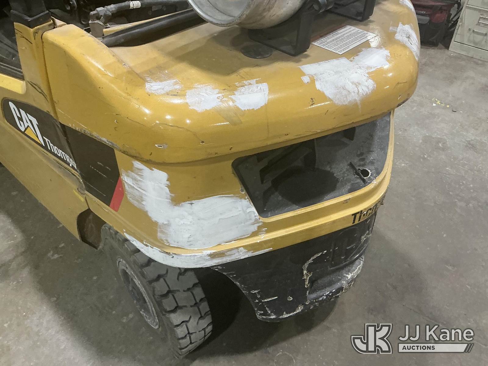 2014 Cat 2P5000 Solid Tired Forklift, s/n AT3541437, LPG, Shuttle, with 4,500 lb. lift capacity, 188 in. mast height, hyd side shift & ROPS, (Starts, Runs, Moves, Operates) (Roll Cage Is Bent And Viewable In Pictures) (LPG Not Included) (Reads 5,724 hours) NOTE: This unit is being sold AS IS/WHERE IS via Timed Auction and is located in Indianapolis, IN. For more information & removal arrangements please contact Andrew Fleck 317-491-5813 or Andrew.fleck@altec.com (Buyer is responsible for removal. Assistance by consignor or JJ Kane Auctions is not assured.)