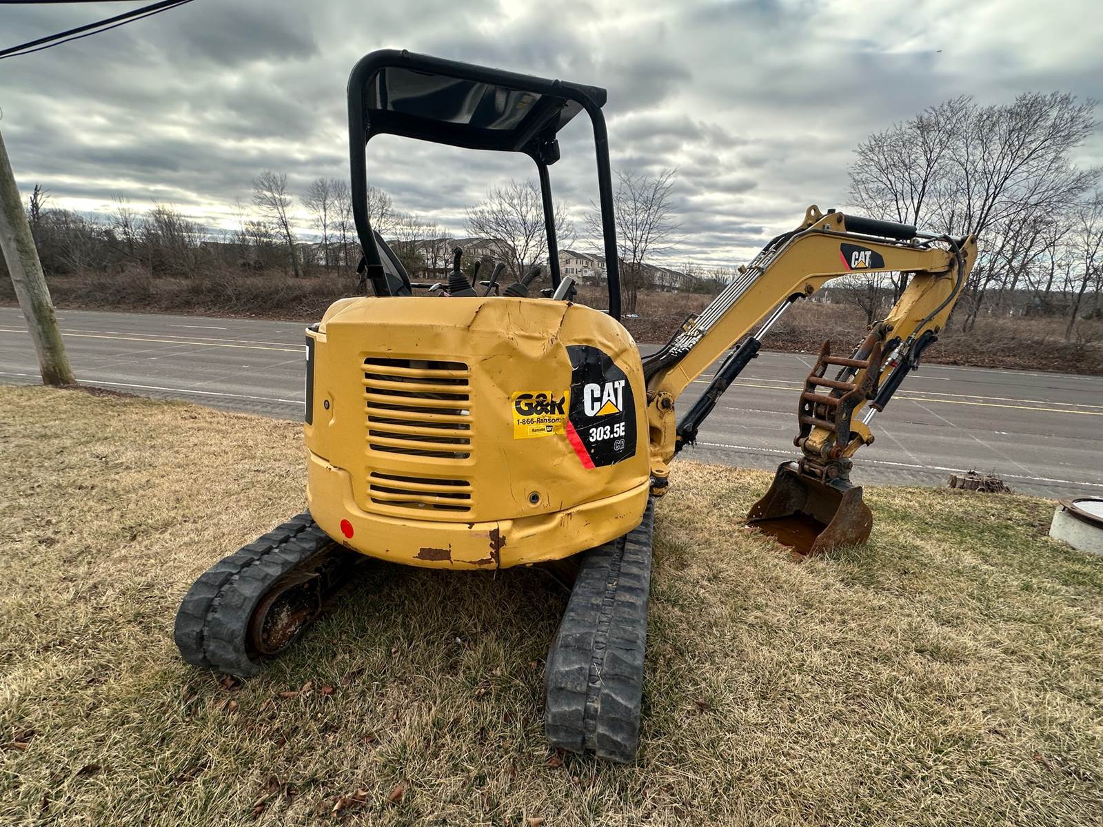 2014 CAT 303.5 Mini Excavator- 27 Horsepower CAT Diesel Engine, joystick controls, OPEN CAB, 5,200 Hours, HYDRAULIC THUMB, Push Blade, operating weight 9,329 lbs, Videos Available!!!!