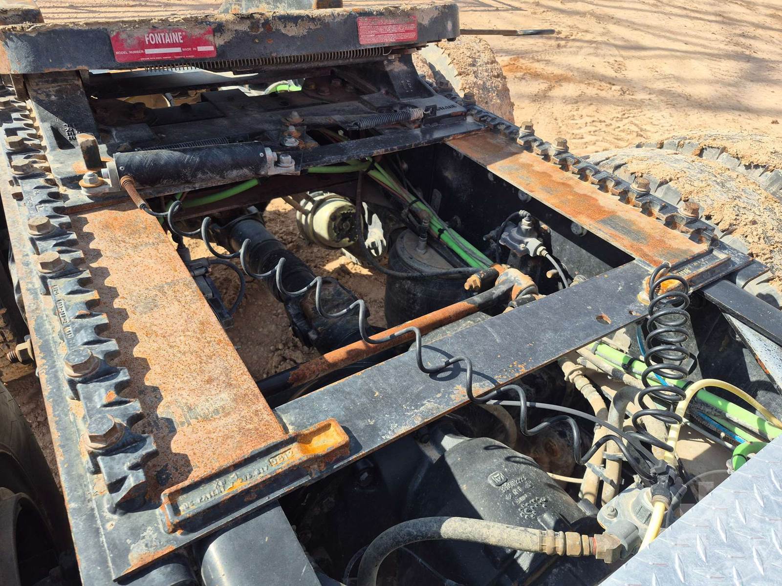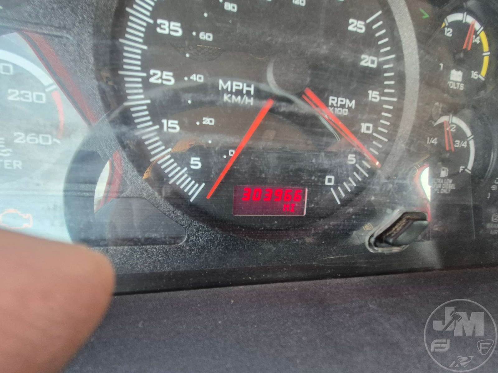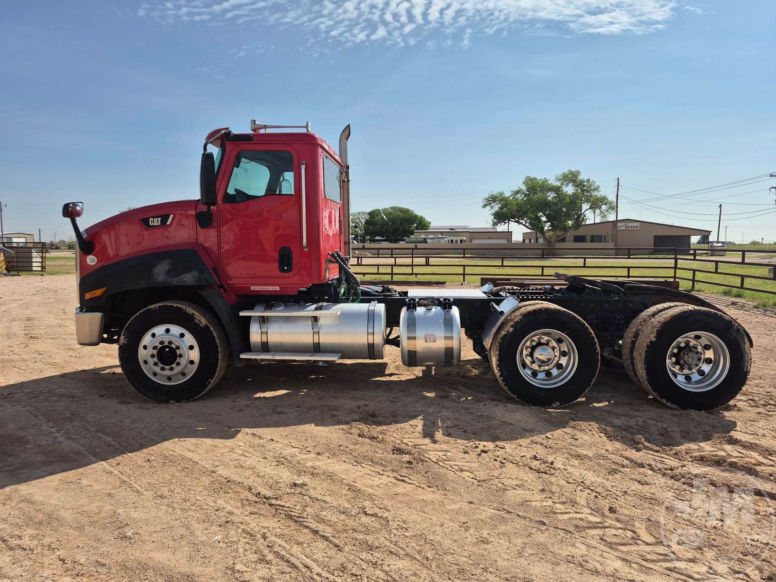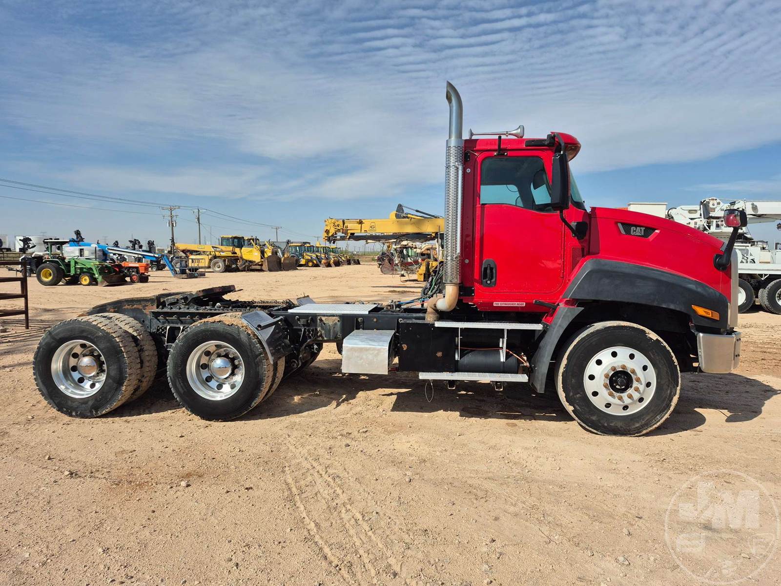TANDEM AXLE DAY CAB TRUCK TRACTOR, Â CATERPILLAR, CT13, EATON FULLER, 18 SPEED, AIR RIDE SUSPENSION, DRUM, 182 " WB, C/A: 122", AIR SLIDE FIFTH WHEEL, A/C, AIR DRIVERS SEAT, CRUISE CONTROL, POWER WINDOWS, POWER DOOR LOCKS, ENGINE BRAKE, DIFF LOCK, PTO, WET KIT, AIR RIDE CAB, ALUM DISC FRONT & OUTSIDE REAR WHEELS, 11R22.5 TIRES , 11R24.5 STEER, HOUR METER READS: 9399, ODOMETER READS: 303966