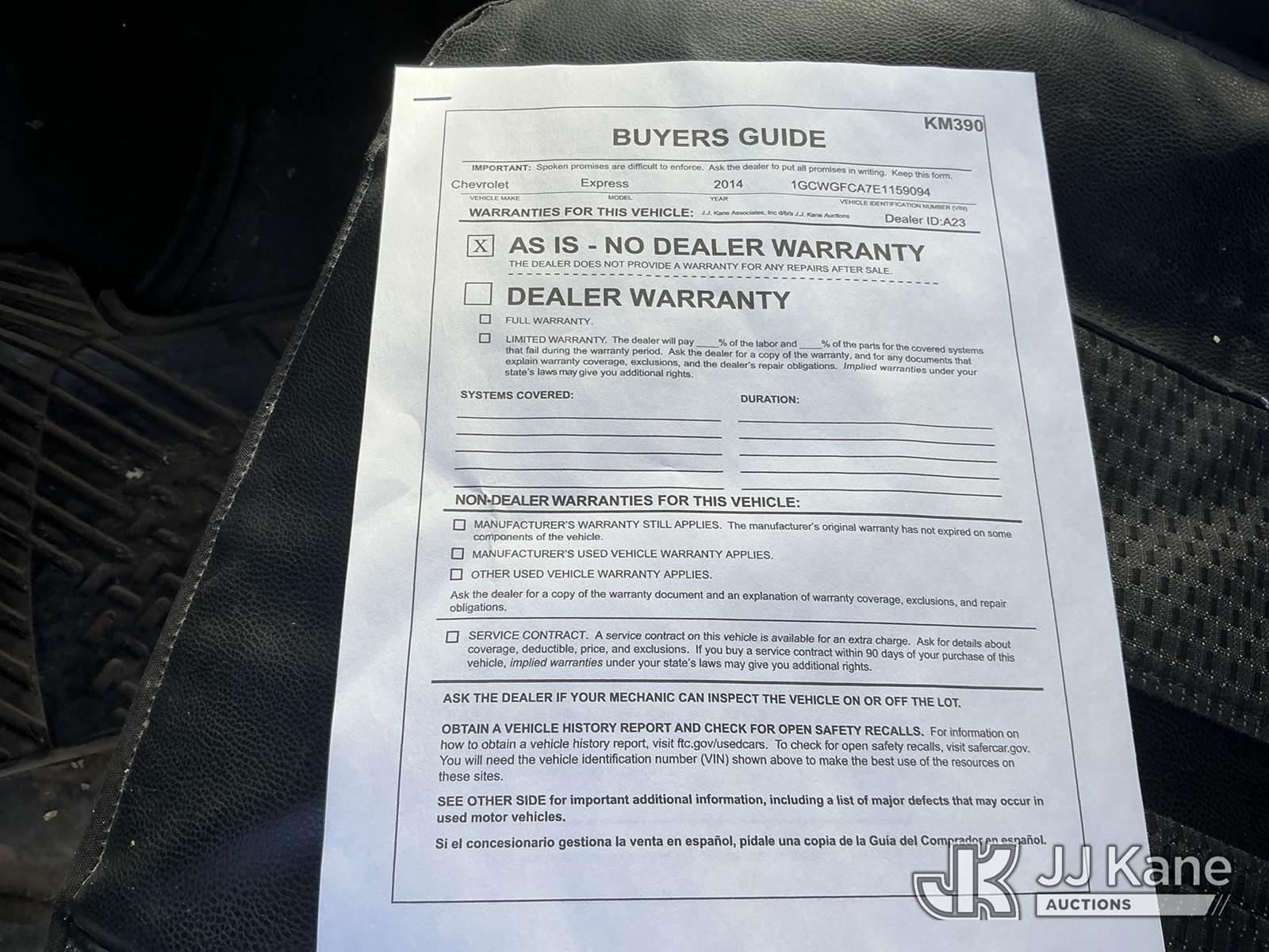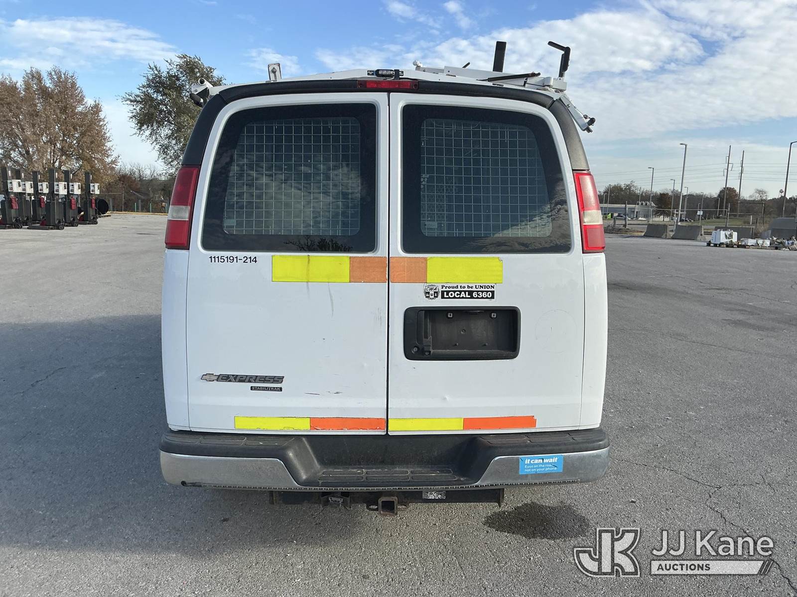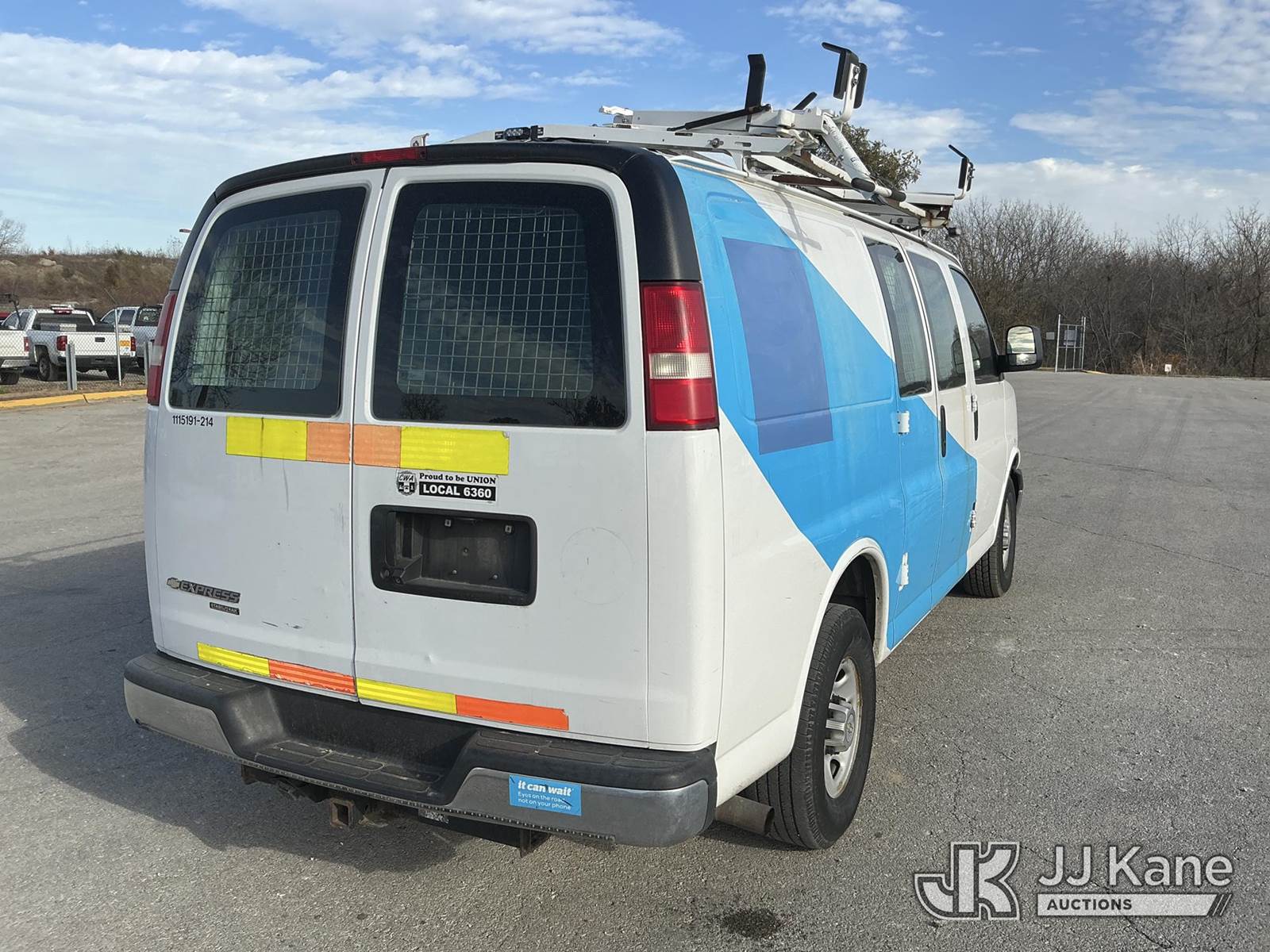 2014 Chevrolet Express 2500 Cargo Van, 8-cyl gas, 6-Speed Automatic, A/C, with Ladder Rack, Inverter , (153,107 miles) (Runs & Moves) (Dent On Hood) This is a Titled Item NOTE: This unit is being sold AS IS/WHERE IS via Timed Auction and is located in Kansas City, MO. Inspection & preview days for this unit are the 2 business days prior to the first day of items closing for this auction, item is located at 962 Tel Aviv Ave Kansas City, MO 64153 and hours of operations are 8a-4p. For pre-sale questions, please contact Ricky McPherson @ (816) 610-2250. (Buyer is responsible for removal. Assistance by consignor or JJ Kane Auctioneers is not assured.)
