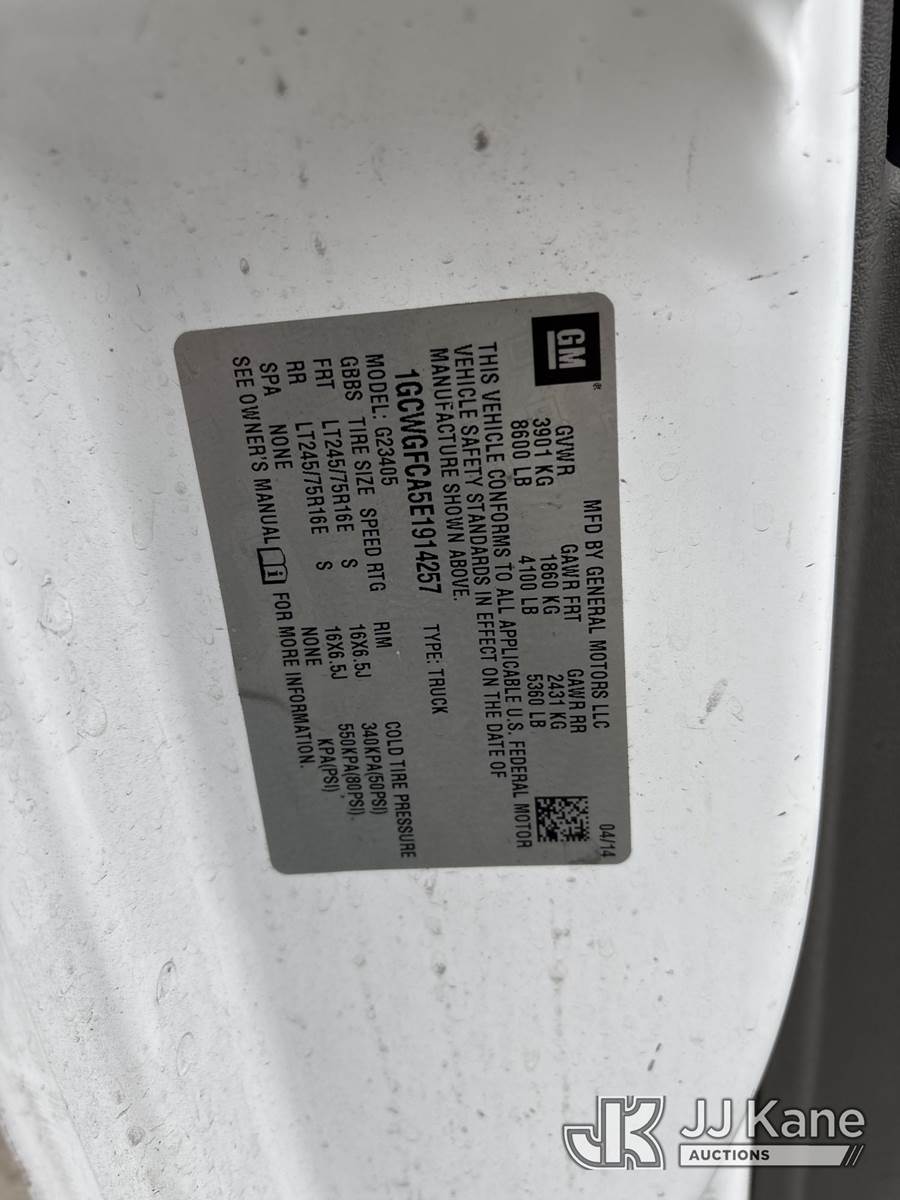 2014 Chevrolet Express 2500 Cargo Van, 4.8L V8 OHV 16V Gas 6-Speed Automatic, RWD, A/C, (43,890 miles) (Runs & Moves ) This is a Titled Item NOTE: This unit is being sold AS IS/WHERE IS via Timed Auction and is located in Dixon, CA. Inspection & preview days for this unit are the 2 business days prior to the first day of items closing for this auction, item is located at 8668 Sparling Ln Dixon, CA 95620 and hours of operations are 8a-4p. For pre-sale questions, please contact JJ Kane Staff at (707) 678-8060 (dixon@jjkane.com). Dealer License Number 45696. (Buyer is responsible for removal. Assistance by consignor or JJ Kane Auctions is not assured.)