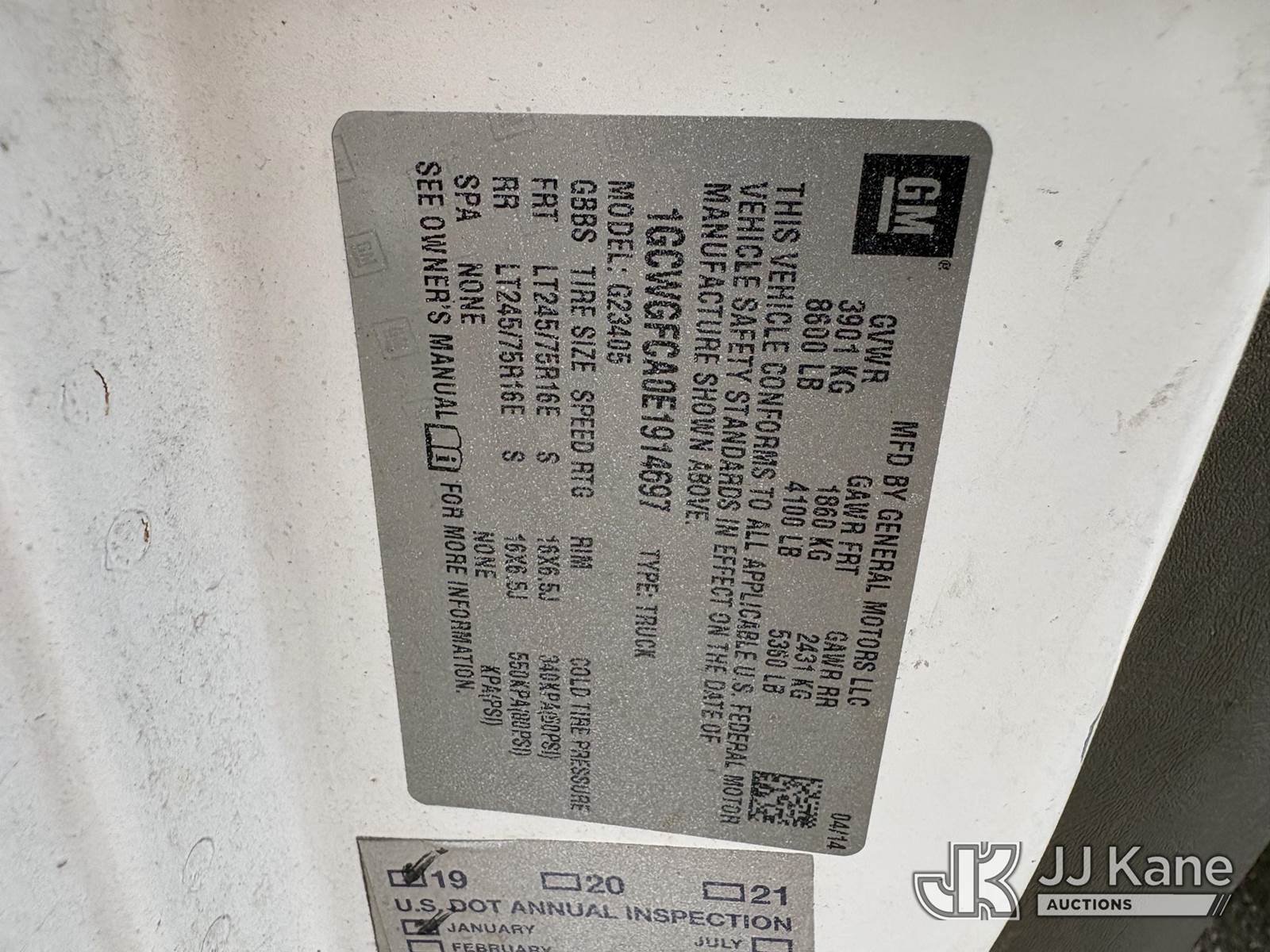 2014 Chevrolet Express 2500 Cargo Van, 8-cyl gas, 6-Speed Automatic, A/C, (167,120 miles) (Runs & Moves) (Paint Damage) (Reads 6,623 hours) This is a Titled Item NOTE: This unit is being sold AS IS/WHERE IS via Timed Auction and is located in Hawk Point, MO. Inspection & preview days for this unit are the 2 business days prior to the first day of items closing for this auction, item is located at 25 State Highway A Hawk Point, MO 63349 and hours of operations are 8a-4p. For pre-sale questions, please contact Adam Stanek at (636) 295-1594. (Buyer is responsible for removal. Assistance by consignor or JJ Kane Auctions is not assured.)
