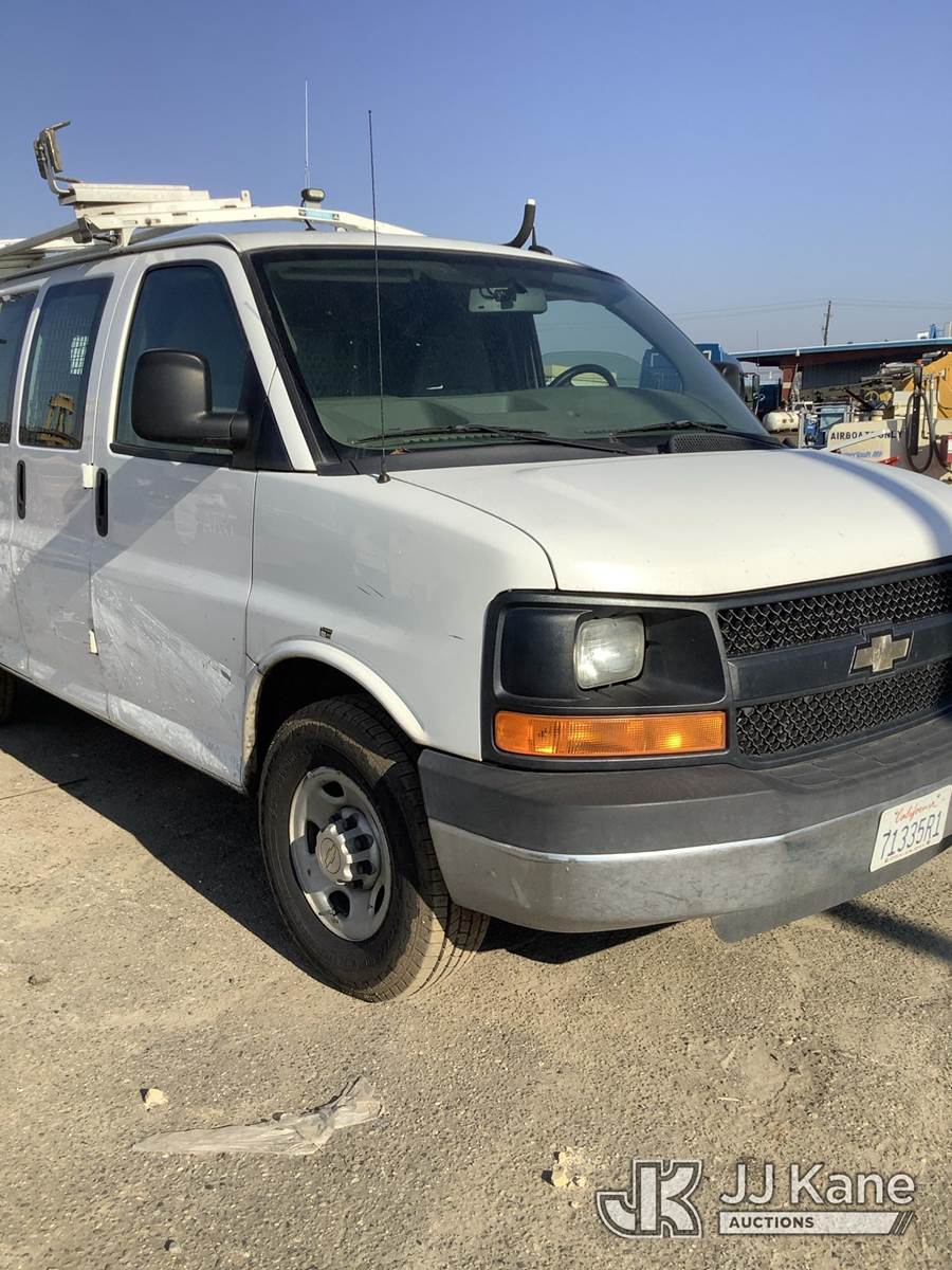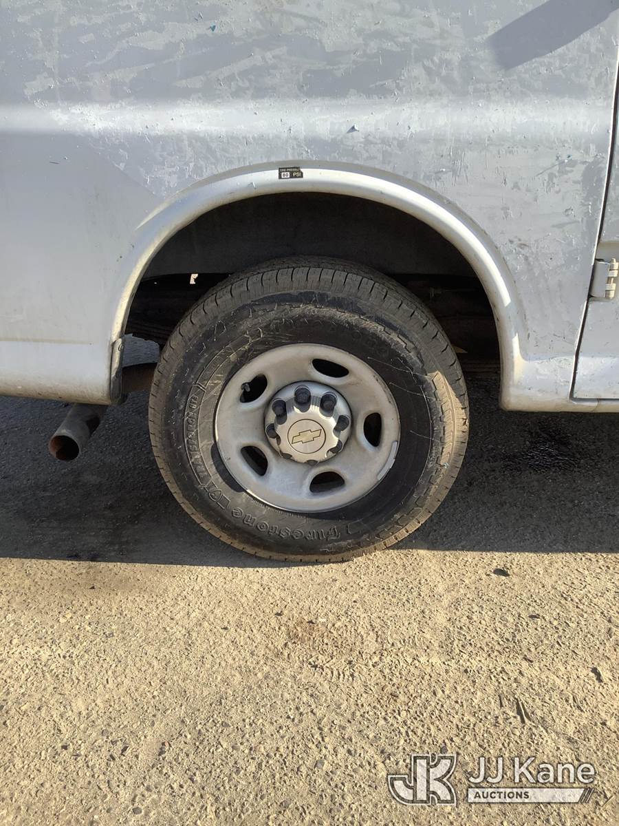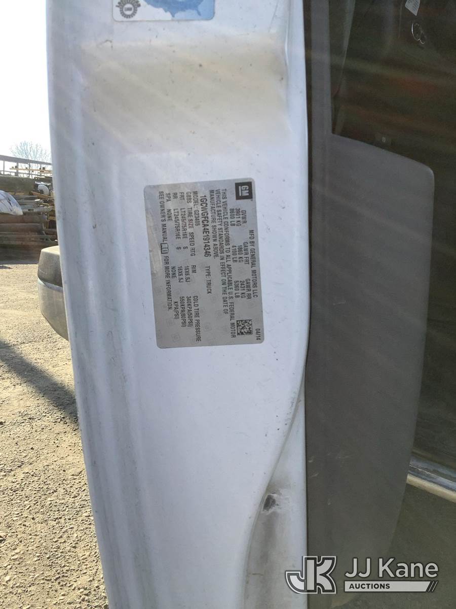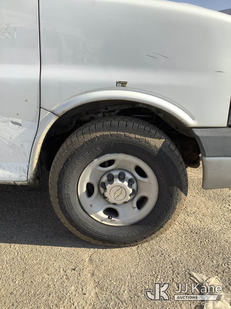 2014 Chevrolet Express 2500 Cargo Van, 8-cyl gas, 6-Speed Automatic, A/C, (141,432 miles) AT&T UNIT: LEAVE UNIT IN 99GRAVES_C-HOLDING, SALES SUPPORT WILL ASSIGN THE CORRECT SALE. ALL AT&T DECALS AND BRANDING MUST BE REMOVED FROM UNITS. THIS INCLUDES LOGS, AT&T GLOBES, WRAPS, TRADMARKED BRANDING, ETC. ALL TRASH AND LOOSE MATERIAL LEFT ON THE UNIT IS TO BE CLEANED OUT. IF EXCESSIVE TRASH AND LOOSE MATERIAL EXIST, THE CUSTOMER CAN BE CHARGED FOR CLEANING. OPEN ALL COMPARTMENTS AND CARGO AREAS FOR ADDITIONAL VALUABLE EQUIPMENT. IF ADDITIONAL EQUIPMENT EXIXTS, ADD INFORMATION AND PICTURES TO AIM. BUCKET TRUCKS, DIGGER DERRICKS, AND CABLE PLACERS REQUIRE ANSI INSPECTIONS. SALES SUPPORT ORDERS ANSI INSPECTIONS WHEN UNIT IS ON SITE. DO NOT ACTIVATE UNTIL ANSI INSPECTION IS COMPLETE AND ATTACHED TO THE LOT. CONTACT CLAY GRAVES OR ZACK CASTO WITH ALL AT&T PROCESSING QUESTIONS. (Runs & Moves) (No Body Damage) This is a Titled Item NOTE: This unit is being sold AS IS/WHERE IS via Timed Auction and is located in Fresno, CA. Inspection & preview days for this unit are by appointment only; please contact us at contact@jjkane.com or 84-Go-JJKane for more details. For pre-sale questions, please contact Cesar Lua @ (707) 914-6375. (Buyer is responsible for removal. Assistance by consignor or JJ Kane Auctions is not assured.)