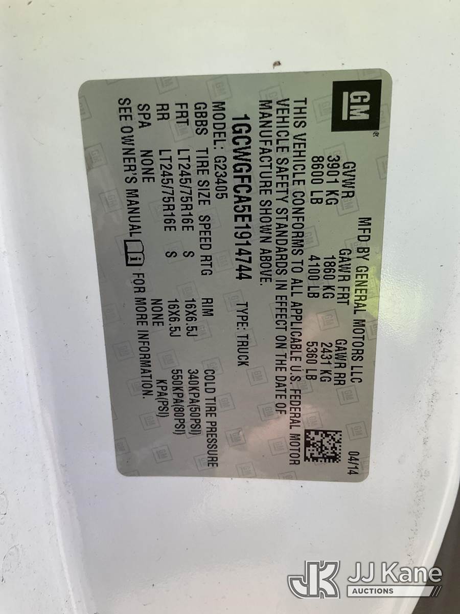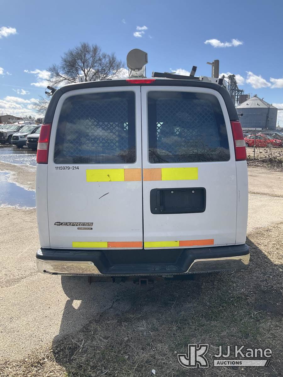 2014 Chevrolet Express 2500 Cargo Van, 8-cyl gas, 6-Speed Automatic, A/C, (95,806 miles) (Runs & Moves) (Paint/Body/Rust Damage, Unable To Open Side Door-Handle Broken, Unable To Open Rear Left Door) (Reads 4,111 hours) This is a Titled Item NOTE: This unit is being sold AS IS/WHERE IS via Timed Auction and is located in South Beloit, IL. Inspection & preview days for this unit are the 2 business days prior to the first day of items closing for this auction, item is located at 14354 Dearborn Ave South Beloit, IL and hours of operations are 8a-4p. For pre-sale questions, please contact Derek Eklund at (608) 904-0618 or (derek.eklund@jjkane.com). (Buyer is responsible for removal. Assistance by consignor or JJ Kane Auctions is not assured.)