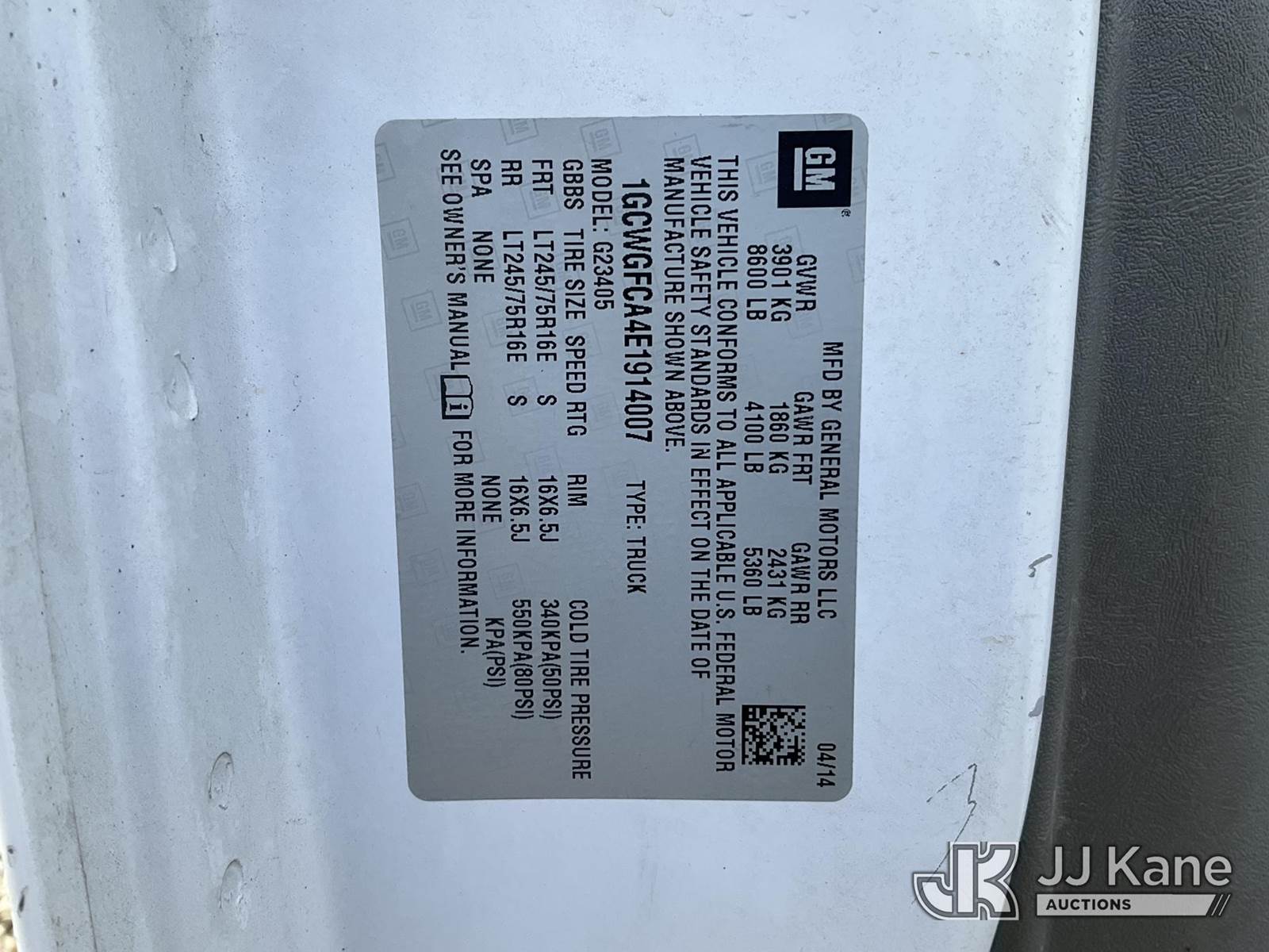 2014 Chevrolet Express G2500 Cargo Van, 4.8L V8 OHV 16V gas, 6-Speed Automatic, RWD, A/C, (145,346 miles) (Runs & Moves) (Rear Bumper Damaged, Body/Paint Damage) This is a Titled Item NOTE: This unit is being sold AS IS/WHERE IS via Timed Auction and is located in Robert, LA. Inspection & preview days for this unit are by appointment only; please contact us at contact@jjkane.com or 84-Go-JJKane for more details. License # LA AB-154 (Buyer is responsible for removal. Assistance by consignor or JJ Kane Auctions is not assured.)