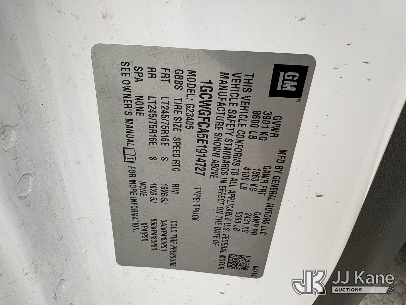 2014 Chevrolet Express G2500 Cargo Van, 4.8L V8 OHV 16V gas, 6-Speed Automatic, RWD, A/C, (147,876 miles) (Runs & Moves) (Paint Damage, Chipped Windshield) (Reads 4,919 hours) This is a Titled Item NOTE: This unit is being sold AS IS/WHERE IS via Timed Auction and is located in Hawk Point, MO. Inspection & preview days for this unit are the 2 business days prior to the first day of items closing for this auction, item is located at 25 State Highway A Hawk Point, MO 63349 and hours of operations are 8a-4p. For pre-sale questions, please contact Adam Stanek at (636) 295-1594. (Buyer is responsible for removal. Assistance by consignor or JJ Kane Auctions is not assured.)