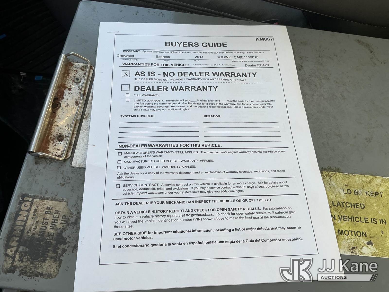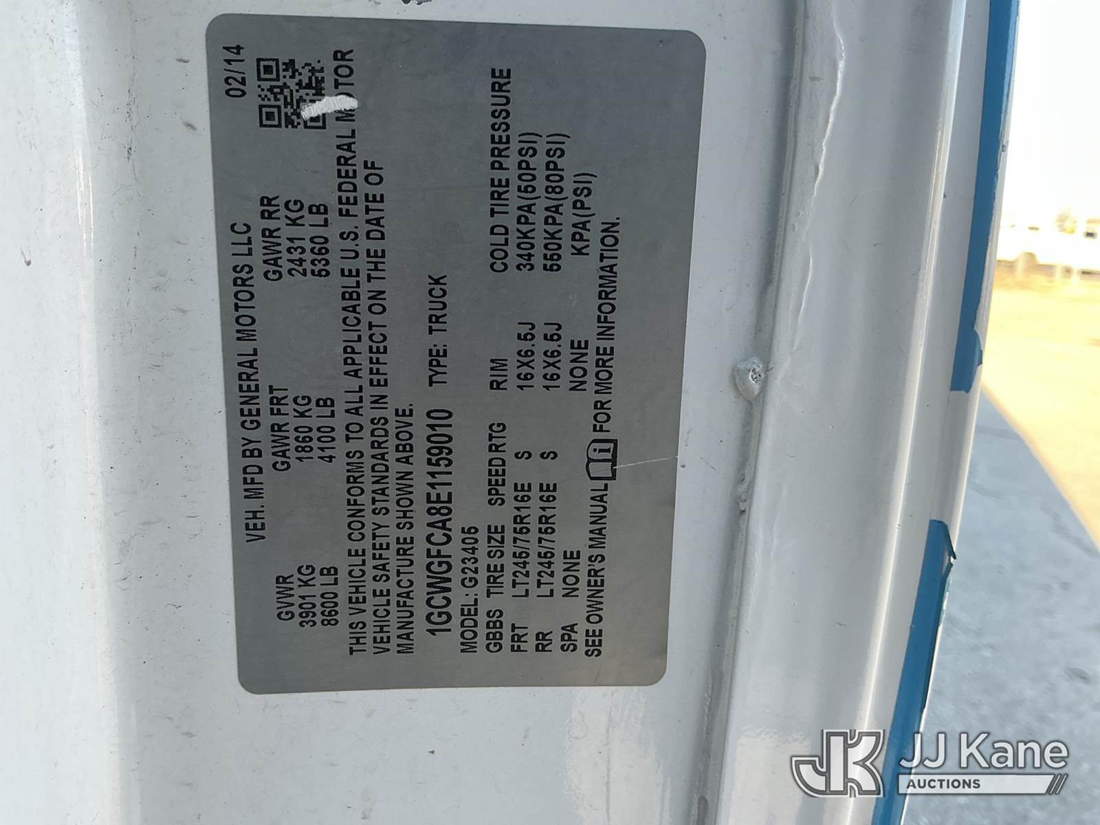 2014 Chevrolet Express G2500 Cargo Van, 4.8L V8 OHV 16V gas, RWD, 6-Speed Automatic, A/C, (151,904 miles) (Runs & Moves) (Jump To Start) This is a Titled Item NOTE: This unit is being sold AS IS/WHERE IS via Timed Auction and is located in Kansas City, MO. Inspection & preview days for this unit are the 2 business days prior to the first day of items closing for this auction, item is located at 962 Tel Aviv Ave Kansas City, MO 64153 and hours of operations are 8a-4p. For pre-sale questions, please contact Ricky McPherson @ (816) 610-2250. (Buyer is responsible for removal. Assistance by consignor or JJ Kane Auctions is not assured.)