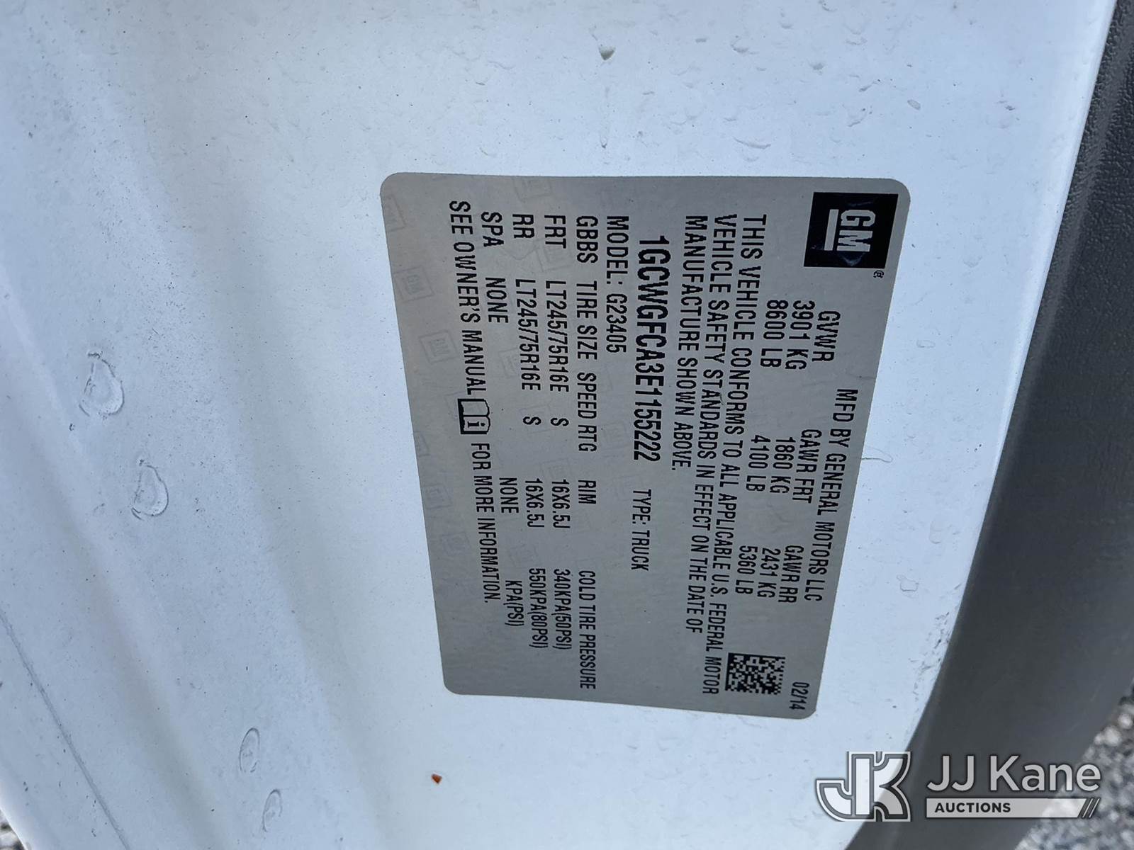 2014 Chevrolet Express G2500 Cargo Van, 4.8L V8 OHV 16V gas, RWD, 6-Speed Automatic, A/C, (118,820 miles) (Runs & Moves) (Body/Paint Damage) (Reads 4,249 hours) This is a Titled Item NOTE: This unit is being sold AS IS/WHERE IS via Timed Auction and is located in Fort Wayne, IN. Inspection & preview days for this unit are the 2 business days prior to the first day of items closing for this auction, item is located at 3020 Commercial Rd Fort Wayne, IN 46809 and hours of operations are 8a-4p. For pre-sale questions, please contact Eric Mcintosh @ (260) 205-2483 (Buyer is responsible for removal. Assistance by consignor or JJ Kane Auctions is not assured.)