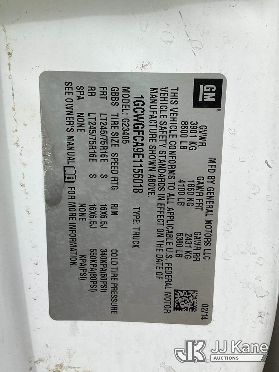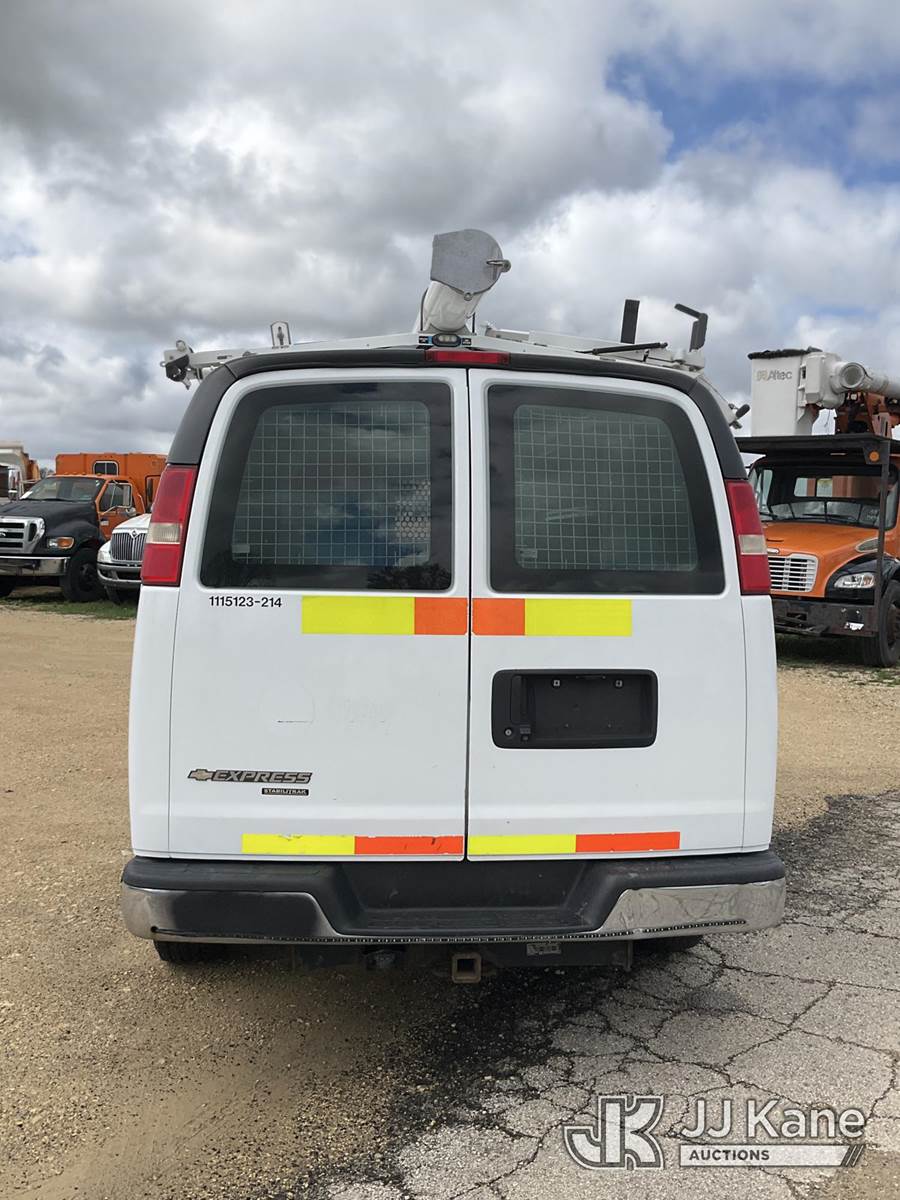 2014 Chevrolet Express G2500 Cargo Van, 4.8L V8 OHV 16V gas, RWD, 6-Speed Automatic, A/C, with ladder rack, (89,601 miles) (Runs & Moves) (Reads 4,682 hours) This is a Titled Item NOTE: This unit is being sold AS IS/WHERE IS via Timed Auction and is located in South Beloit, IL. Inspection & preview days for this unit are the 2 business days prior to the first day of items closing for this auction, item is located at 14354 Dearborn Ave South Beloit, IL and hours of operations are 8a-4p. For pre-sale questions, please contact Derek Eklund at (608) 904-0618 or (derek.eklund@jjkane.com). (Buyer is responsible for removal. Assistance by consignor or JJ Kane Auctions is not assured.)