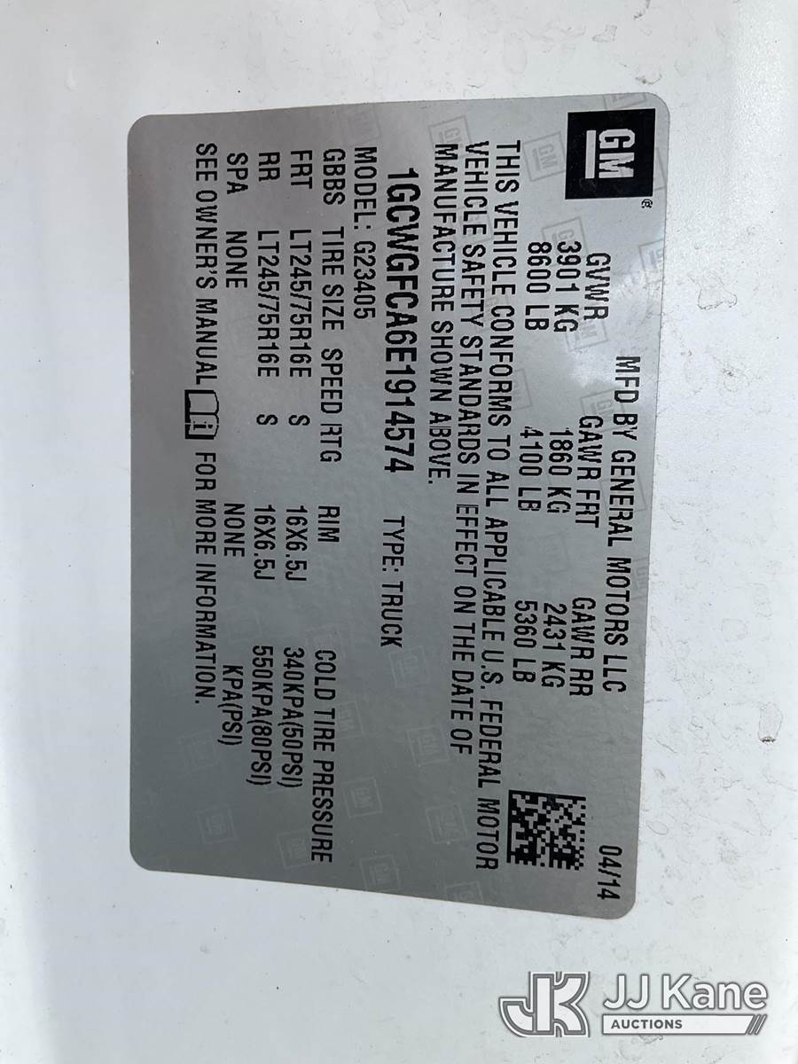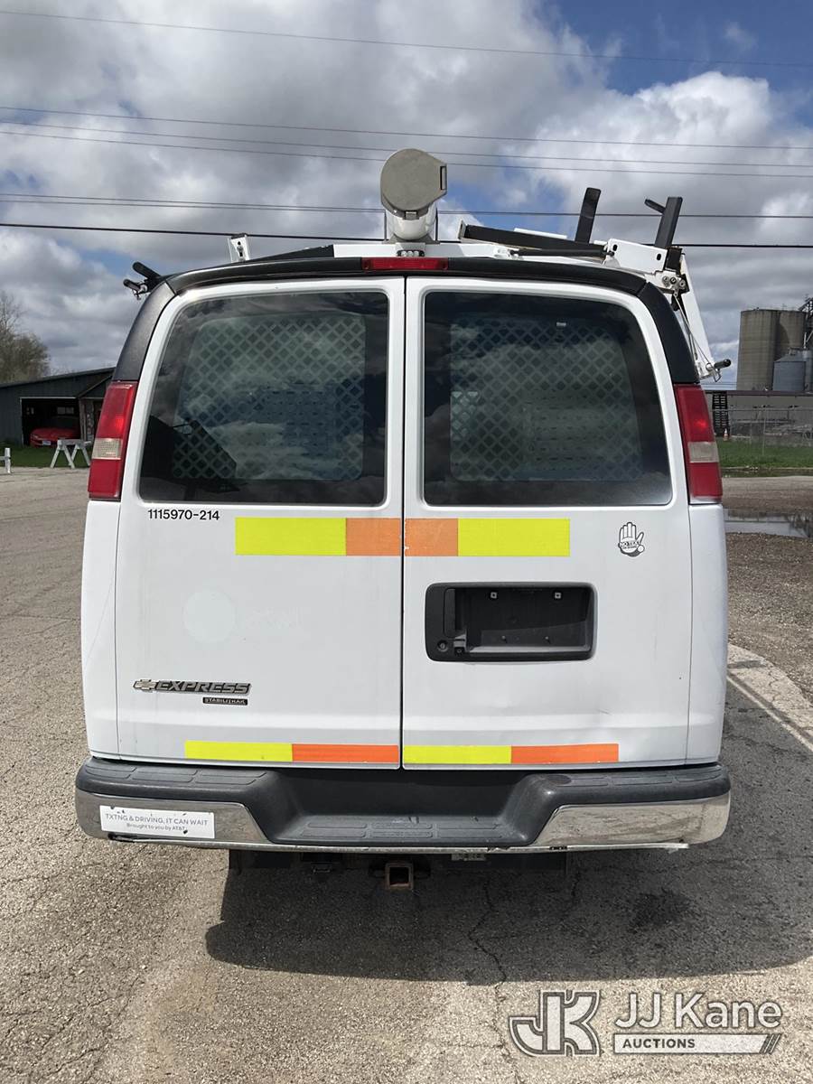 2014 Chevrolet Express G2500 Cargo Van, 4.8L V8 OHV 16V gas, RWD, 6-Speed Automatic, A/C, with ladder rack, (26,017 miles) (Runs & Moves) (Exterior Defects-See Photos) This is a Titled Item NOTE: This unit is being sold AS IS/WHERE IS via Timed Auction and is located in South Beloit, IL. Inspection & preview days for this unit are the 2 business days prior to the first day of items closing for this auction, item is located at 14354 Dearborn Ave South Beloit, IL and hours of operations are 8a-4p. For pre-sale questions, please contact Derek Eklund at (608) 904-0618 or (derek.eklund@jjkane.com). (Buyer is responsible for removal. Assistance by consignor or JJ Kane Auctions is not assured.)