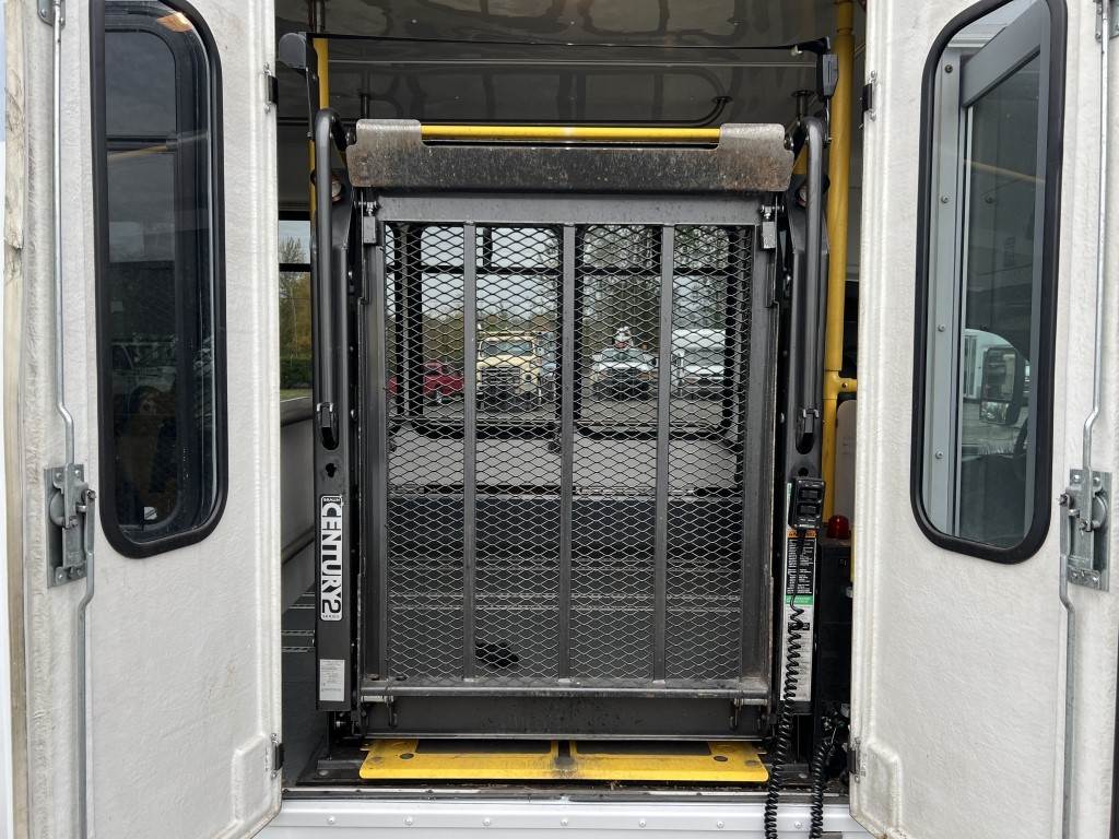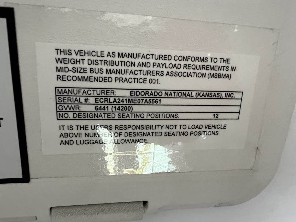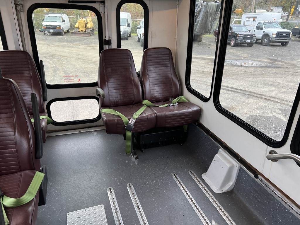Location: Washougal WA ***Government Surplus*** VIN: 1GB6G6BL9E1188135 Engine: Duramax 6.6L 8cyl Diesel Transmission: Automatic Eldorado National bus body, Century 2 wheelchair lift w/Intermotive intelligent lift interlock system, power/heated mirrors, cruise control, 16,583 engine hours, ceiling mounted A/C unit, A/C, AM/FM/CD, spring suspension, LT225/75R16 tires. Miles: 234,076