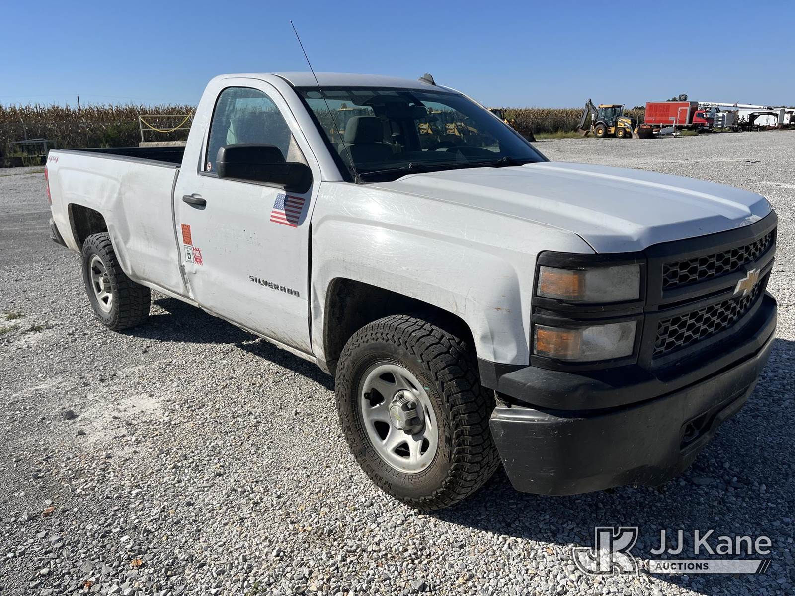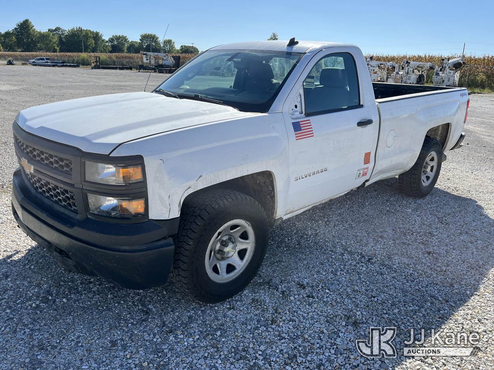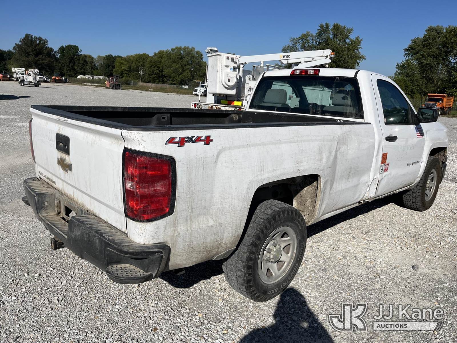 2014 Chevrolet Silverado 1500 4x4 Pickup Truck, 6-cyl gas, Auto, A/C, (195,206 miles) (Runs & Moves)(Check Engine Light On, Exhaust Leak, Body Damage, Paint & Rust Damage, Missing Driver Side Mirror) (Reads 10,926 hours) This is a Titled Item NOTE: This unit is being sold AS IS/WHERE IS via Timed Auction and is located in Hawk Point, MO. For more information & removal arrangements please contact Adam Stanek at 636-295-1594. (Buyer is responsible for removal. Assistance by consignor or JJ Kane Auctions is not assured.)