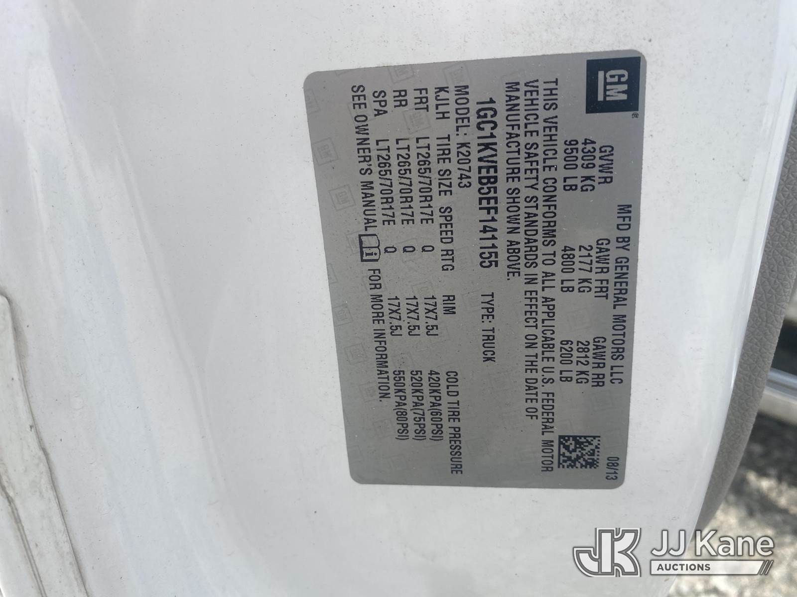 2014 Chevrolet Silverado 2500HD 4x4 Crew-Cab Pickup Truck, 8-cyl, Dual Fuel (CNG & Gas), Auto, A/C, (197,300 miles) (Runs & Moves) (Check Engine Light On, Body/Paint Damage) This is a Titled Item NOTE: This unit is being sold AS IS/WHERE IS via Timed Auction and is located in Villa Rica, GA. Inspection & preview days for this unit are the 2 business days prior to the first day of items closing for this auction, item is located at 100 Liberty Rd Villa Rica, GA 30180 and hours of operations are 8a-4p. For pre-sale questions, please contact Office Staff @ (470) 590-8453. (Buyer is responsible for removal. Assistance by consignor or JJ Kane Auctions is not assured.)