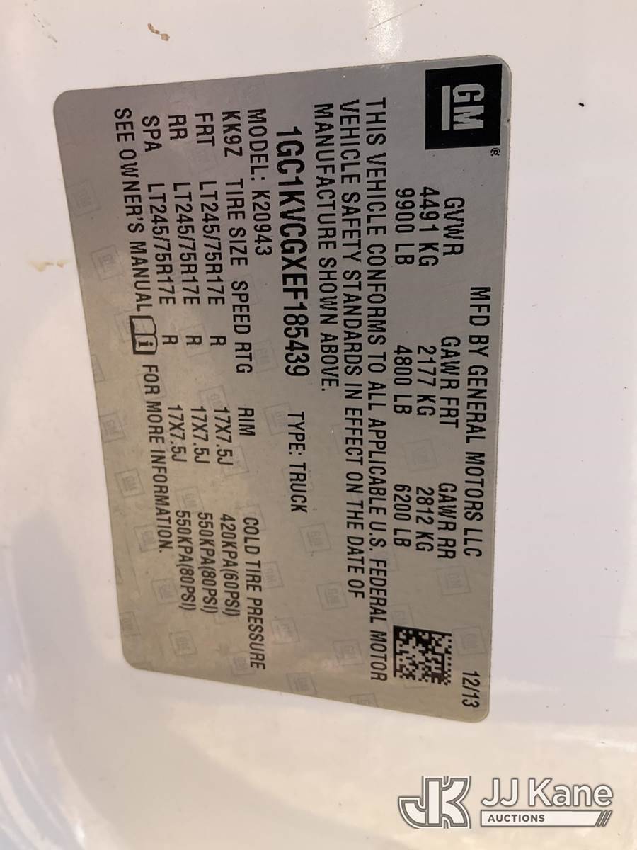 2014 Chevrolet Silverado 2500HD 4x4 Crew-Cab Pickup Truck, 6.0L V8 OHV 16V Gas, FFV, Auto, A/C, (151,177 miles) (Jump To Start, Runs & Moves, Engine Tick on Startup, Two Flat Tires, Missing Battery, Some Body Damage, Heavy Interior Wear, Peeling Paint) (Seller States: Bad Transmission) This is a Titled Item NOTE: This unit is being sold AS IS/WHERE IS via Timed Auction and is located in Byram, MS. Inspection & preview days for this unit are the 2 business days prior to the first day of items closing for this auction, item is located at 6033 I-55 S / W Frontage Rd Byram, MS 39272 and hours of operations are 8a-4p. Pre-sale questions, please contact @ (659) 278-7786 (Buyer is responsible for removal. Assistance by consignor or JJ Kane Auctions is not assured.)