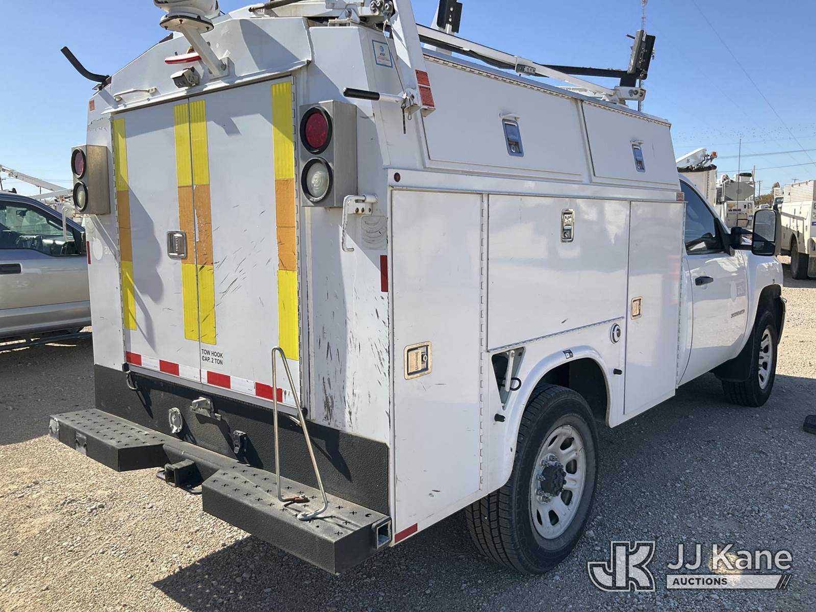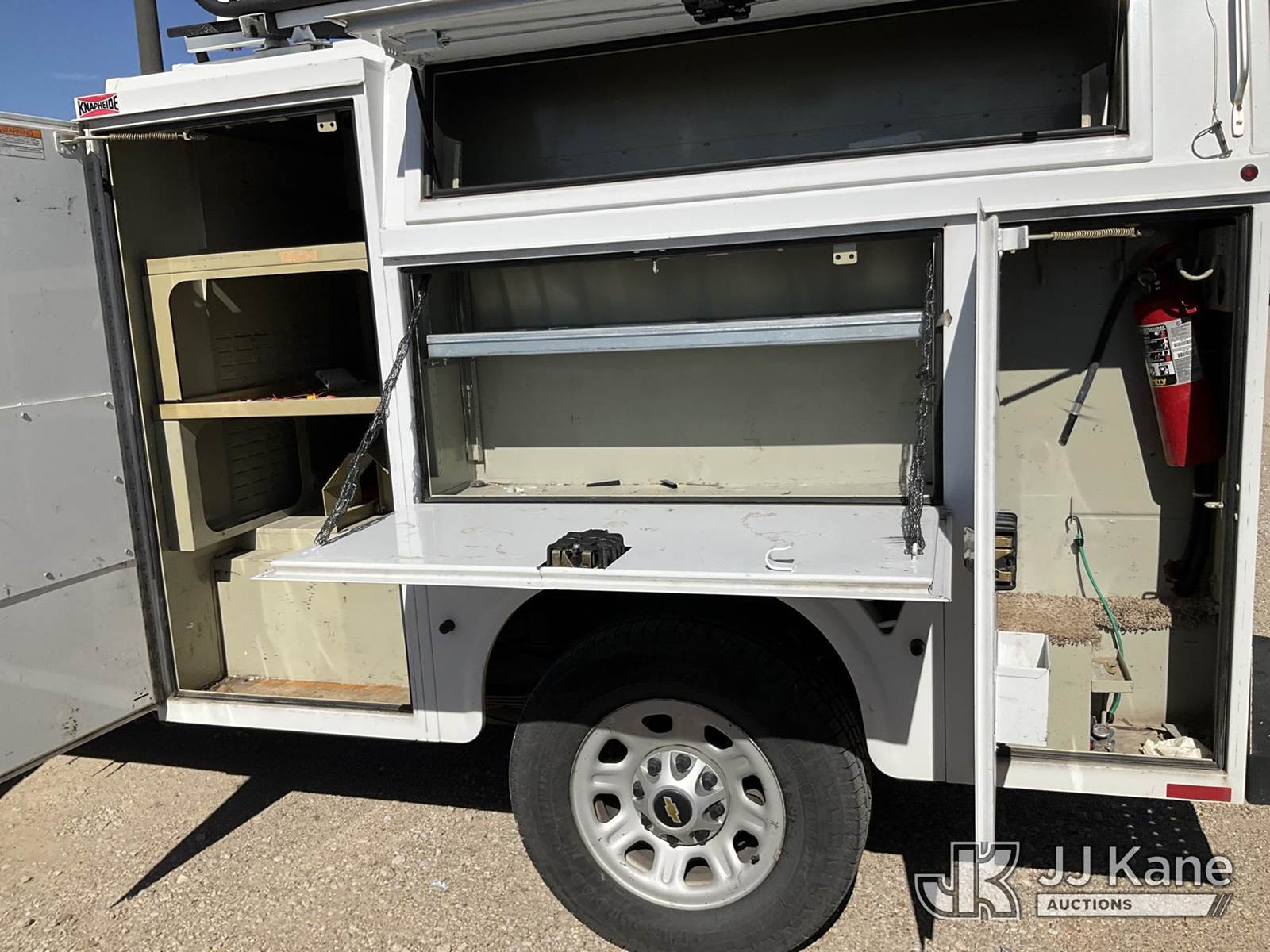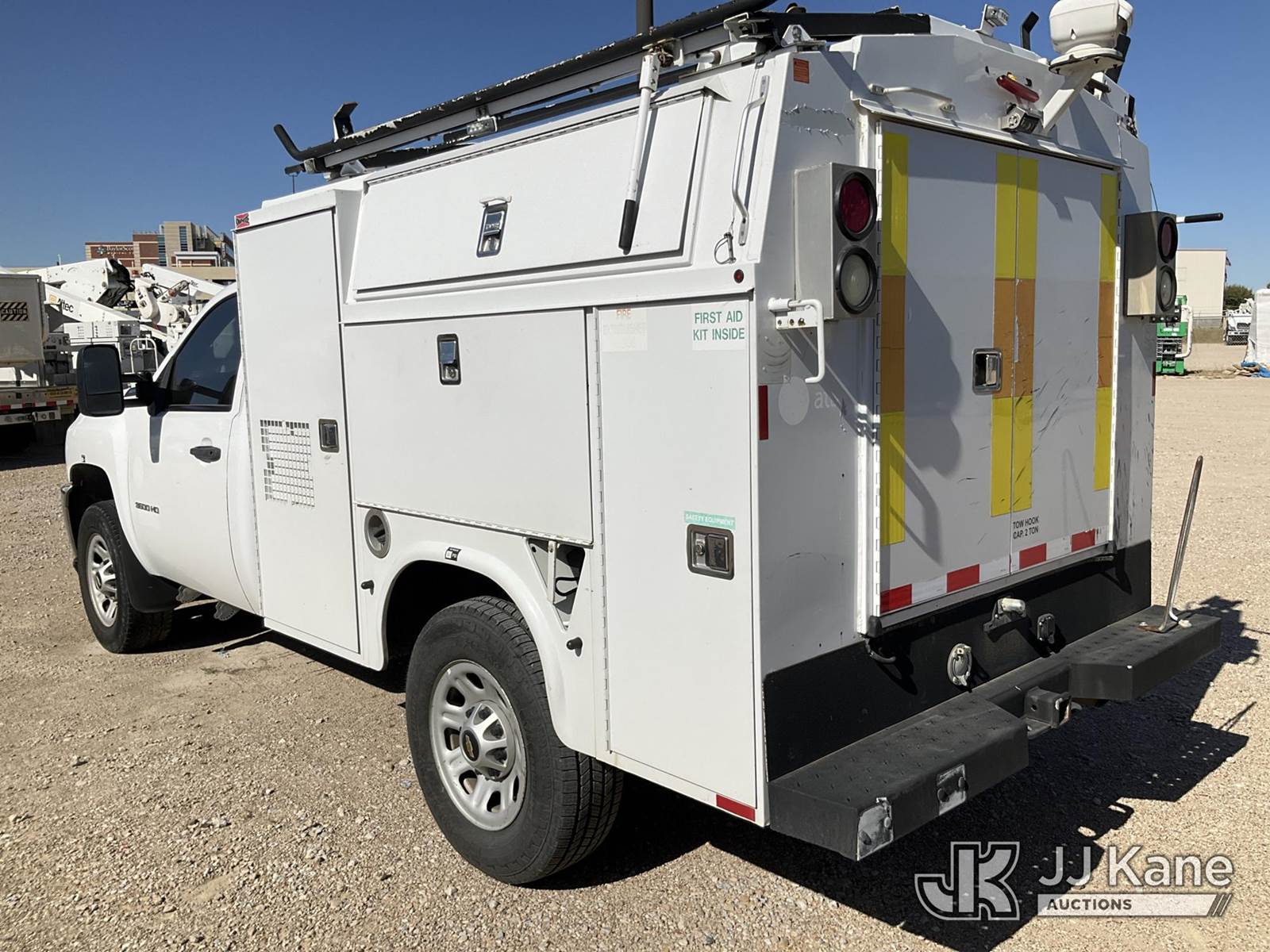 2014 Chevrolet Silverado 3500HD Enclosed Service Truck, 8-cyl, Auto, gas, A/C, with ladder rack, (177,365 miles) (Runs & Moves) (Jump To Start, Chipped Windshield,) This is a Titled Item NOTE: This unit is being sold AS IS/WHERE IS via Timed Auction and is located in Waxahachie, TX. (Buyer is responsible for removal. Assistance by consignor or JJ Kane Auctioneers is not assured.)