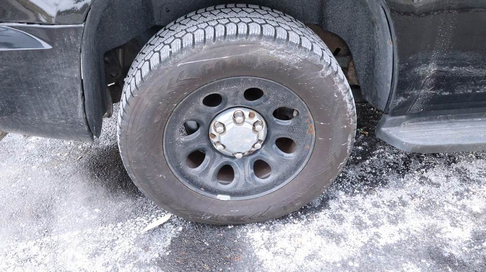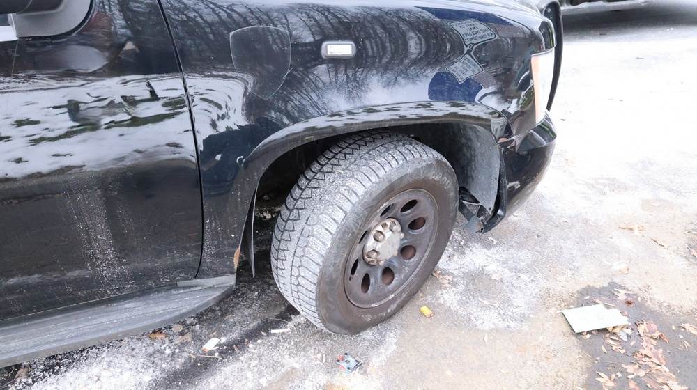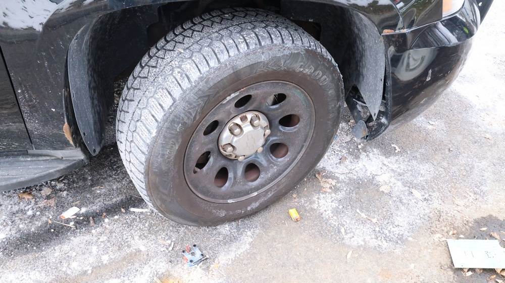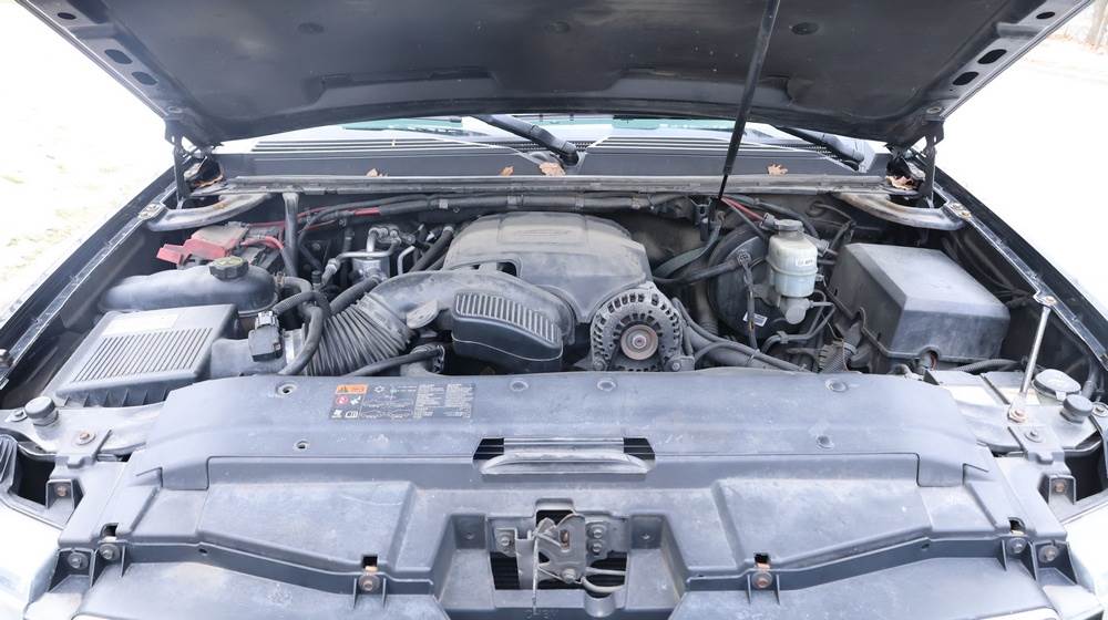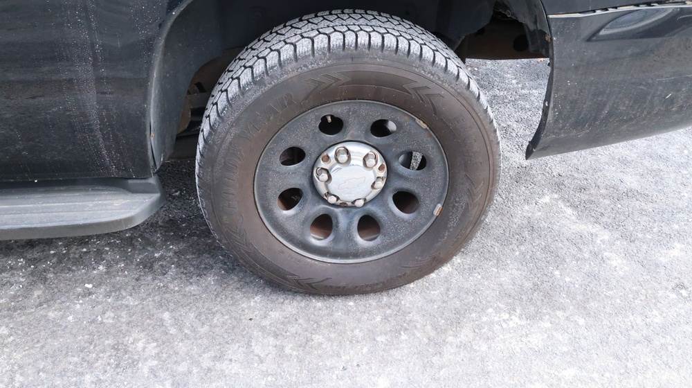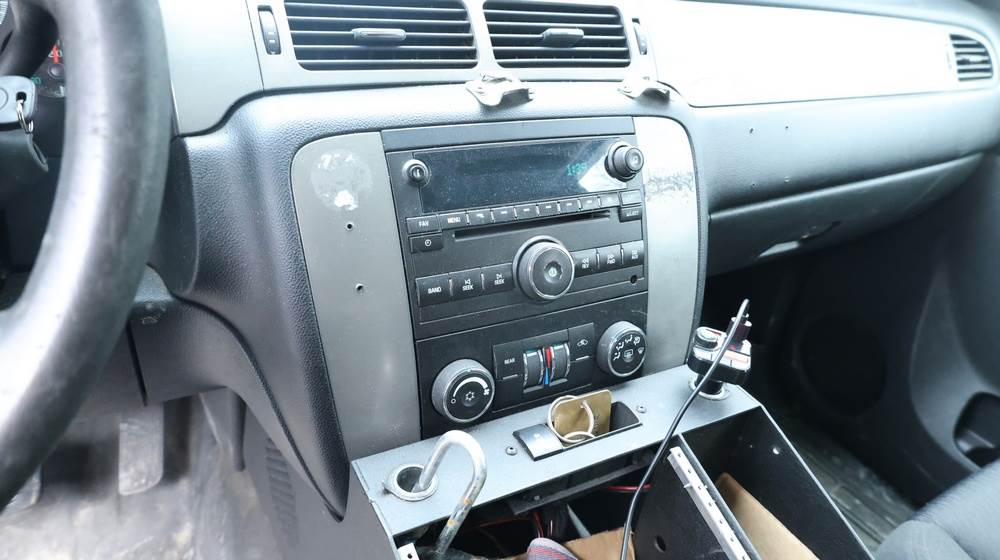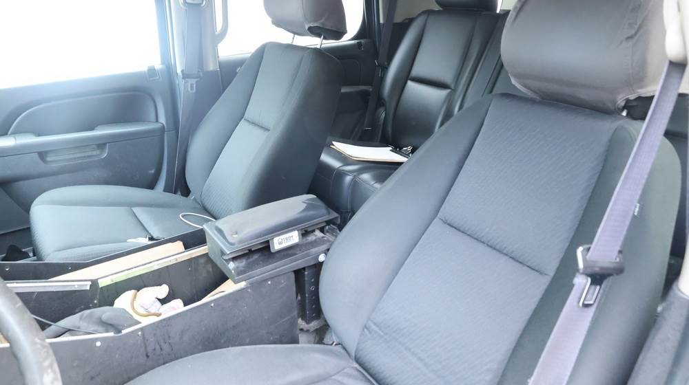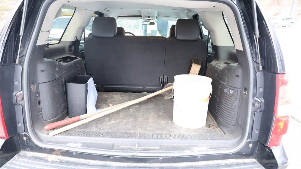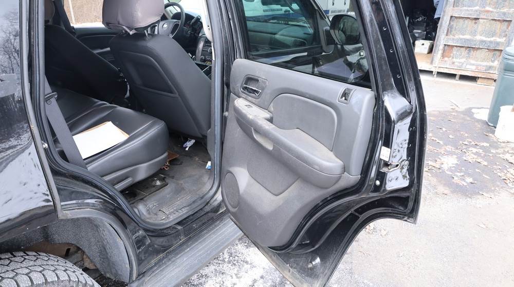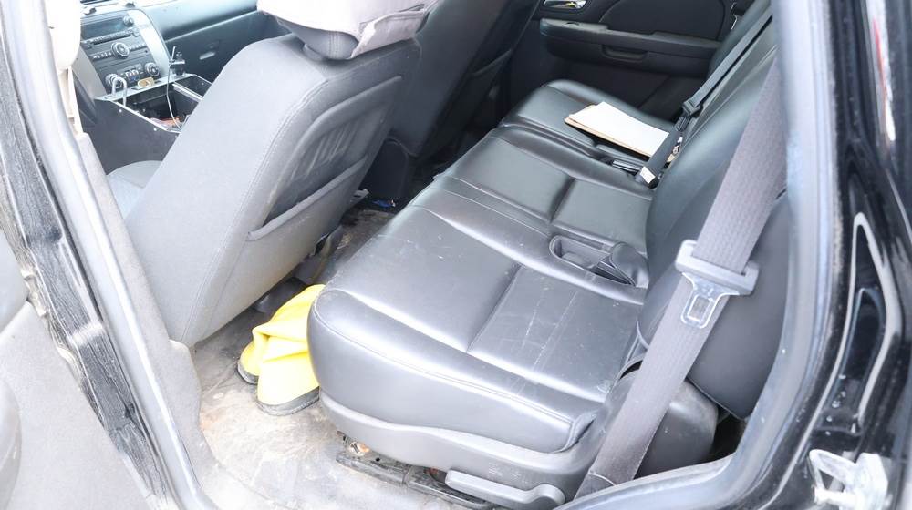 2014 Chevrolet Tahoe Police with a 5.3L V8 OHV FFV engine. VIN: 1GNLC2E01ER182407. Odometer reading: 140806. Body: Full-size four-door sport utility vehicle in police configuration. Equipped with a front push bumper, steel wheels, black exterior trim, and tinted rear windows. Interior features include cloth seating, center console equipment mount, factory Chevrolet radio, HVAC controls, floor-mounted automatic transmission selector, auxiliary wiring and mounts associated with police use, and analog gauge cluster. Seller reports: Rusty, runs and drives, title and key available. Must be towed.