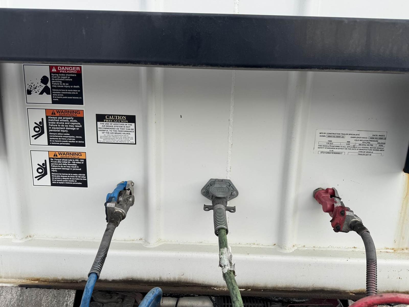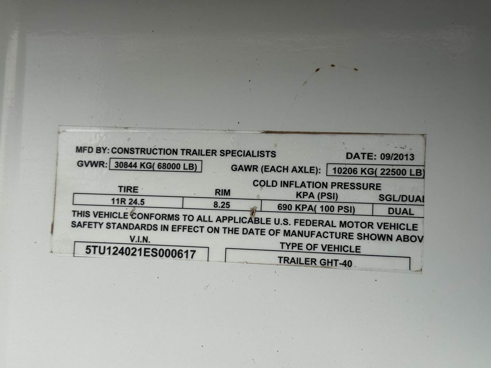2014 Construction Trailer Specialist 40 ft hopper trailer, double bin, manual doors, manual tarp~ no rips or tear, 9 ft 7 inch clearance ht, 8 ft wide, 68 inch sidewall length, 11r24.5 rubber, spring ride suspension. lights work- ONE OWNER! LIKE NEW! SHED KEPT!