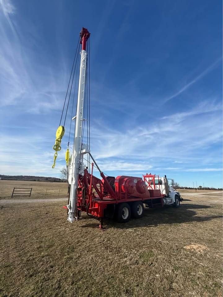 Overall good condition - 2014 Weins (Cooper) 250hp 42x10/38x38 Double drum Well Service Rig Serial #2176, 7/8” Tubing Line, 7500’ New 5/8�Sand Line, 10”x13”x65’ Telescoping Pole with Air Dogs. Hydraulic Twin Cylinder Raised & Hydraulic Winch Scoped with 3 Sheave Crown. Mounted on 2007 Model 378 Peterbilt Tandem Axle Truck (Pre-Emission). Caterpillar C11 Engine with 8LL Transmission. Engine Was completely rebuilt at MHC Kenworth in Tulsa Oklahoma on 10/04/2021, at 145,812 miles - Invoice #R00483700212336, total Cost was $26,341.19. 4 hydraulic Leveling jacks, Hydraulic Handling Winch, Air Operated Tong Retractors, Air Operated Catwalk, Single Sheave Blocks W/Rod Hook. This is an extremely nice rig that is field ready.