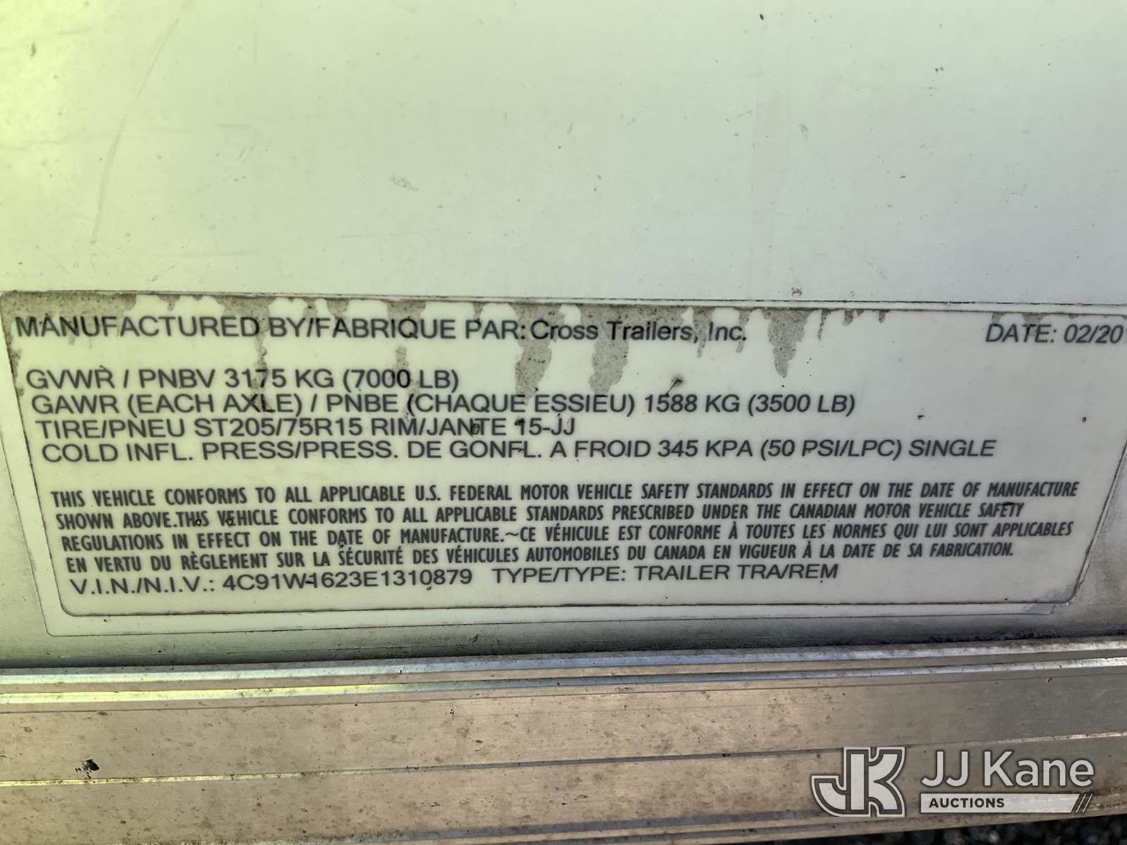 2014 Cross 7x16 T/A Enclosed Cargo Trailer, (Damaged, Rear Door Off (in body of trailer)) This is a Titled Item NOTE: This unit is being sold AS IS/WHERE IS via Timed Auction and is located in Plymouth Meeting, PA. Inspection & preview days for this unit are the 2 business days prior to the first day of items closing for this auction, item is located at 1402 Conshohocken Rd Plymouth Meeting, PA 19462 and hours of operations are 8a-4p. For pre-sale questions, please contact Bruce Thomas @ (267) 887-0392 or bruce.thomas.jr@jjkane.com. (Buyer is responsible for removal. Assistance by consignor or JJ Kane Auctioneers is not assured.)