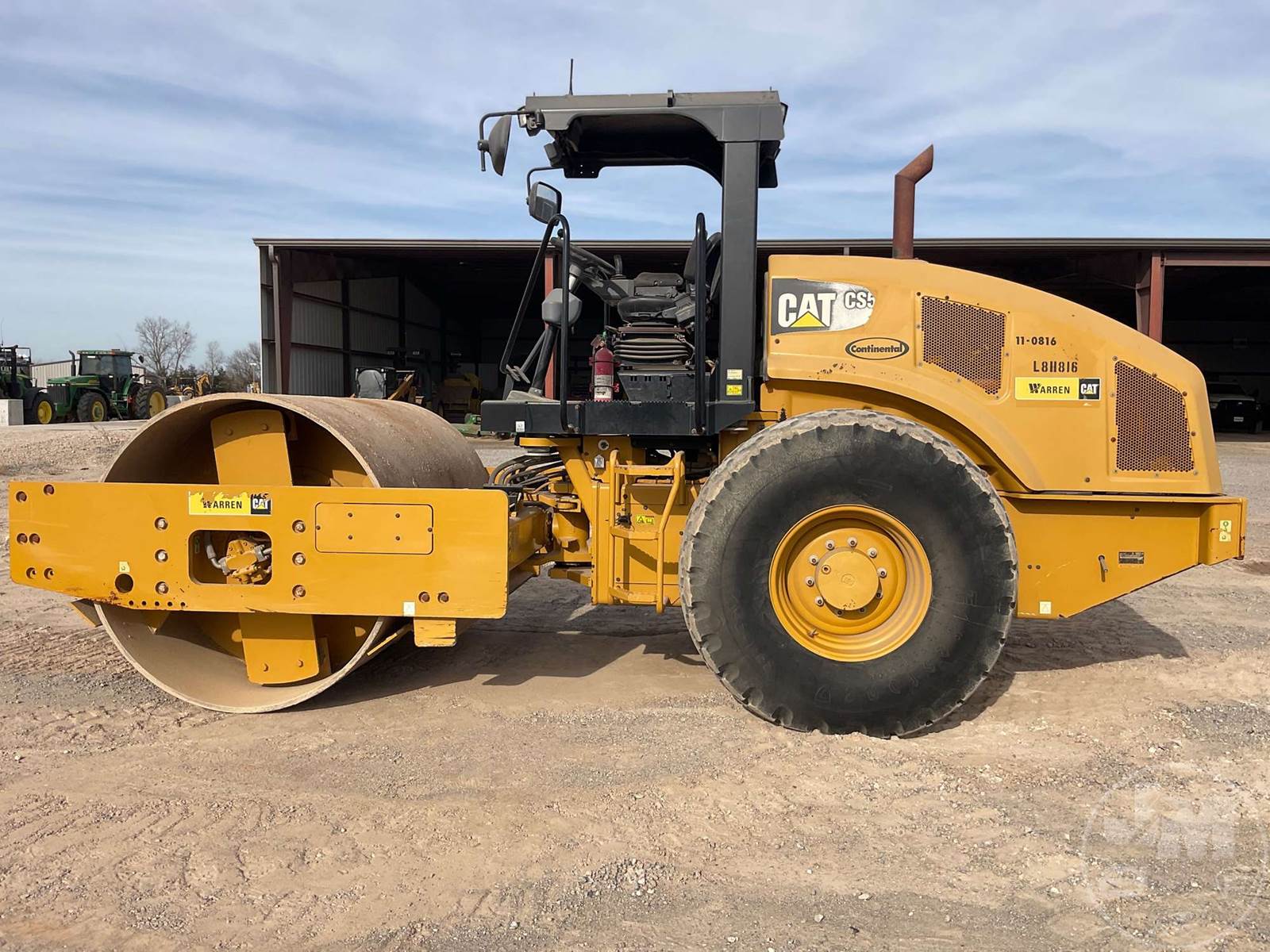 SINGLE DRUM VIBRATORY ROLLER, CANOPY, 84" SMOOTH DRUM, CATERPILLAR 4 CYL DIESEL, 157 HP, HOUR METER READS: 2536