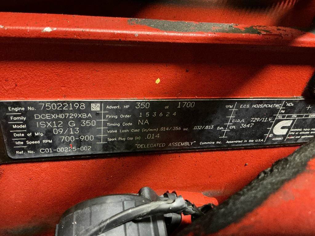 ISX12G, 350 HP, S/N 75022198, CPL-3647, CM2180, Running engine, signs of possible water contamination. 160,850 Odometer Miles 166,099.2 ECM Miles 7,993 Engine Hours
