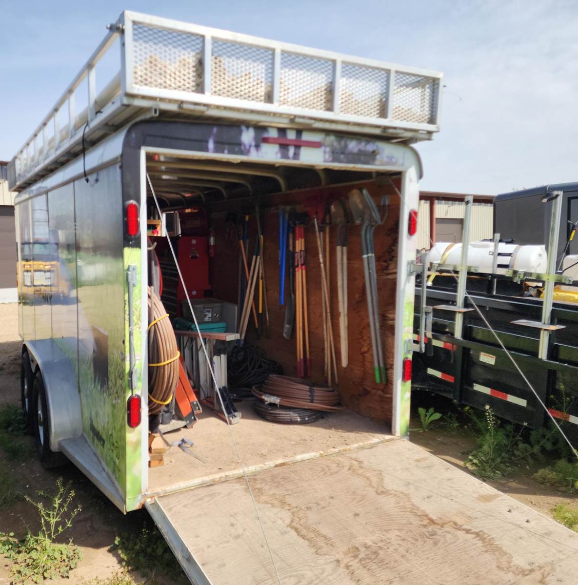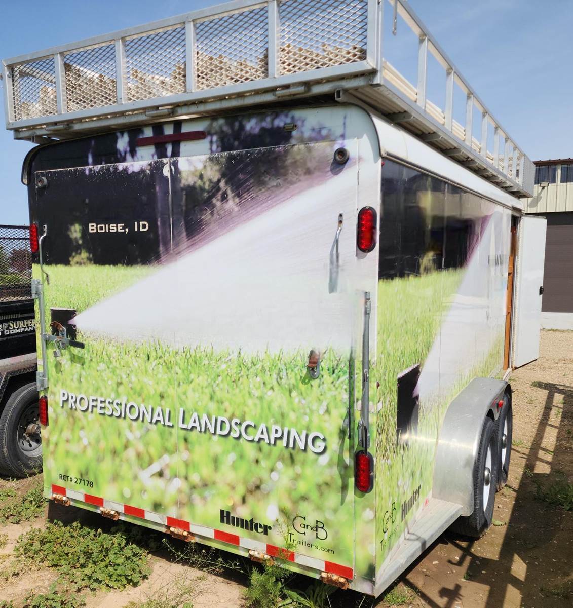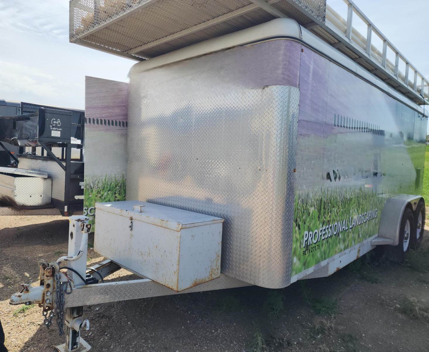 2014 C&B Quality Trailer 18-foot custom enclosed Landscaping trailer with 20’ roof top aluminum pipe rack. 4’-6” tongue with toolbox. 11’-6’ wheel base. Inside tool storage on the walls. Built in Storage racks for PVC fittings for landscaping. The fittings can be included for additional price. Craftsman toolbox, 9-drawers. Hand tools not included. 20 ft. top aluminum PVC pipe rack. Call for more information and pricing with the PVC parts.
