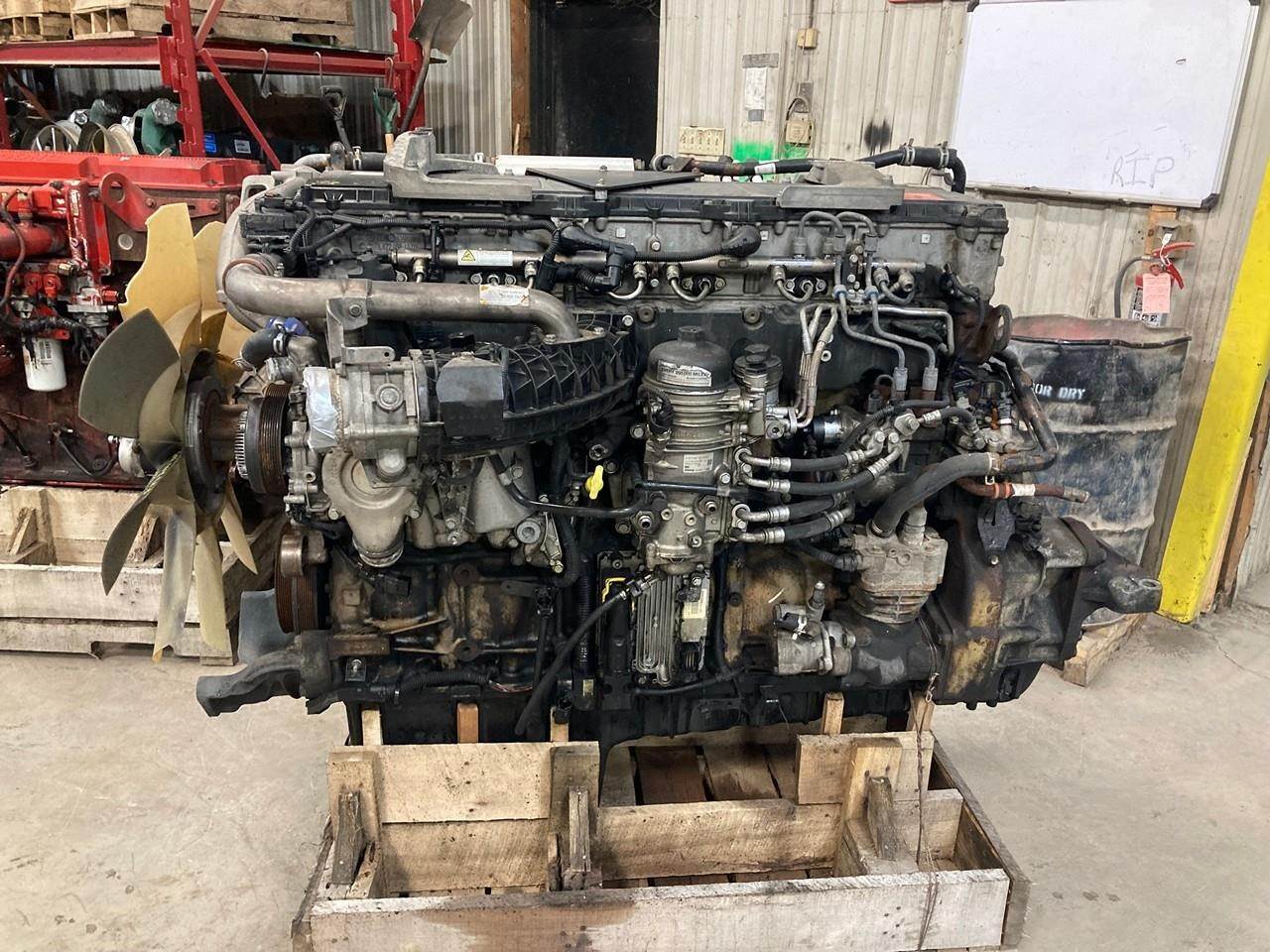 GOOD USED 2011 DETROIT DIESEL DD15 DIESEL TAKEOUT ENGINE FOR SALE AT ADELMAN'S IN OHIO. ALL COMPLETE AND RUN TESTED. ELECTRONIC WITH EGR,...