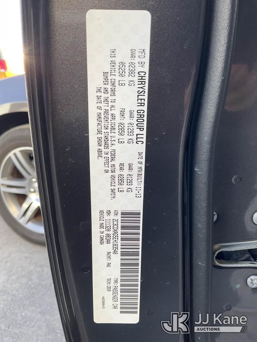 2014 Dodge Charger Police 4-Door Sedan, s/n 2C3CDXAG5EH183540, 3.6L V6 DOHC 24V RWD, GAS, 5-Speed Automatic, A/C, (62,189 miles) (Runs & Moves)(Vehicle previously used with a ‘cold plate’ or protected record registration. Due to the prior status, VIN may not yet appear in NMVTIS, which could affect DMV title/registration processing. Buyer acknowledges and accepts this) This is a Titled Item NOTE: This unit is being sold AS IS/WHERE IS via Timed Auction and is located in Jurupa Valley, CA. Inspection & preview days for this unit are the 2 business days prior to the first day of items closing for this auction, item is located at 4510 Muth Way Jurupa Valley, CA 92509 and hours of operations are 8a-4p. For pre-sale questions, please contact please contact Office Staff @ (310) 353-7140. Dealer License Number 45696. (Buyer is responsible for removal. Assistance by consignor or JJ Kane Auctions is not assured.)