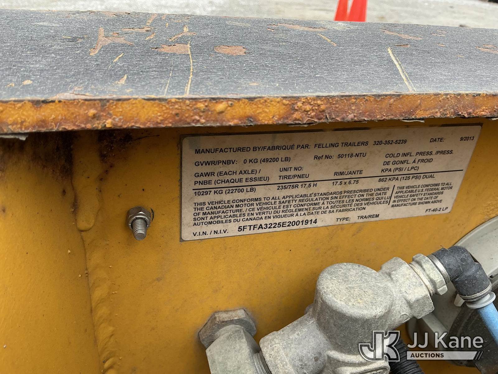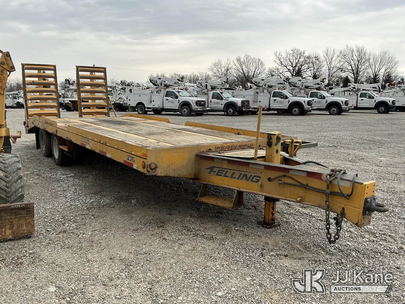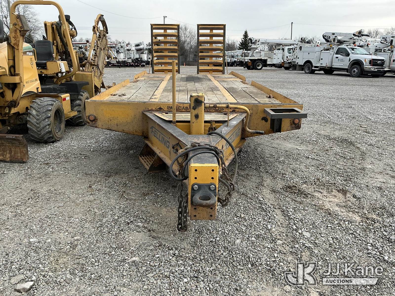 2014 Felling 5020 T/A Tagalong Equipment Trailer, with 20 ft. level deck over wheels, beavertail, ramps & airbrakes, This is a Titled Item NOTE: This unit is being sold AS IS/WHERE IS via Timed Auction and is located in Fort Wayne, IN. For more information & removal arrangements please contact Office Staff @ (260) 450-9822. Load out by appointment only, Buyer/Hauler must present copy of paid invoice upon arrival. Purchaser acknowledges ALL lots must be removed within (10) business days of Auction, or a storage fee may be incurred. For load out and pick up information, please reference the hauler sheet sent out after purchase. (Buyer is responsible for removal. Assistance by consignor or JJ Kane Auctioneers is not assured.)