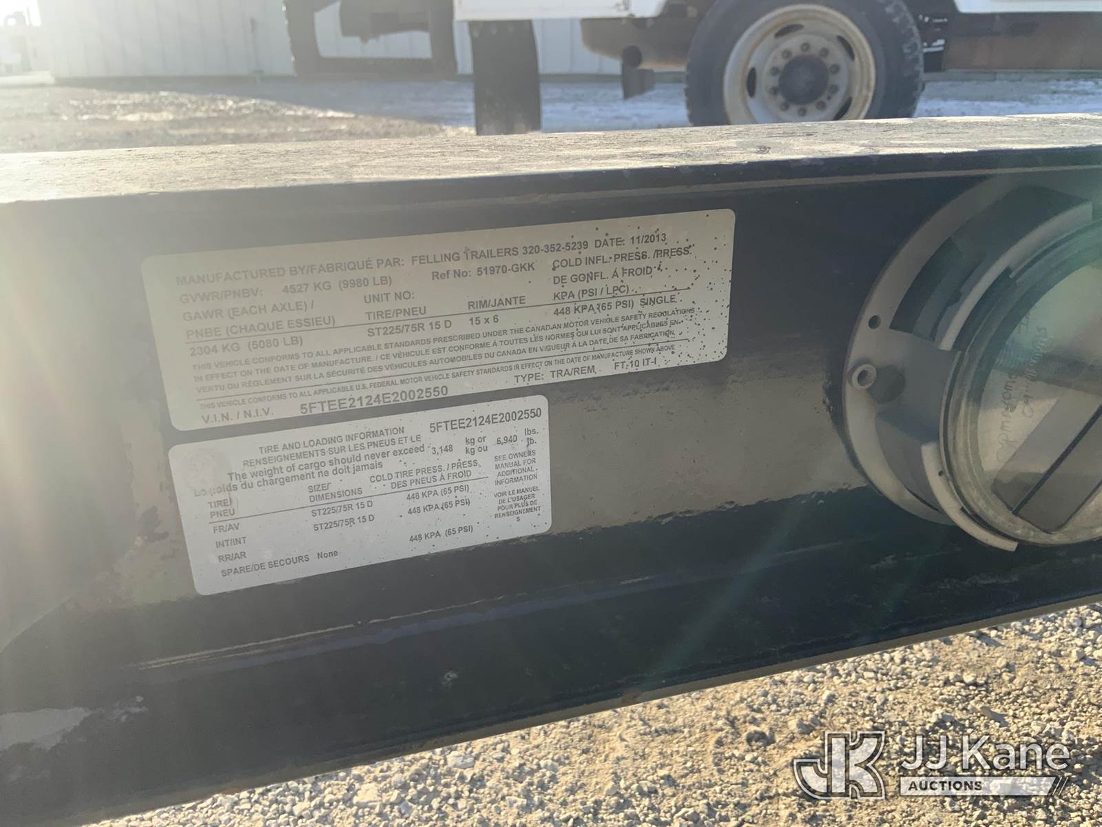 2014 Felling FT-10 T/A Equipment Trailer, s/n 5FTEE2124E2002550, with 15 ft. tilt deck between wheels & dovetail, This is a Titled Item NOTE: This unit is being sold AS IS/WHERE IS via Timed Auction and is located in Fort Wayne, IN. Inspection & preview days for this unit are the 2 business days prior to the first day of items closing for this auction, item is located at 3020 Commercial Rd Fort Wayne, IN 46809 and hours of operations are 8a-4p. For pre-sale questions, please contact Eric Mcintosh @ (260) 205-2483 (Buyer is responsible for removal. Assistance by consignor or JJ Kane Auctions is not assured.)